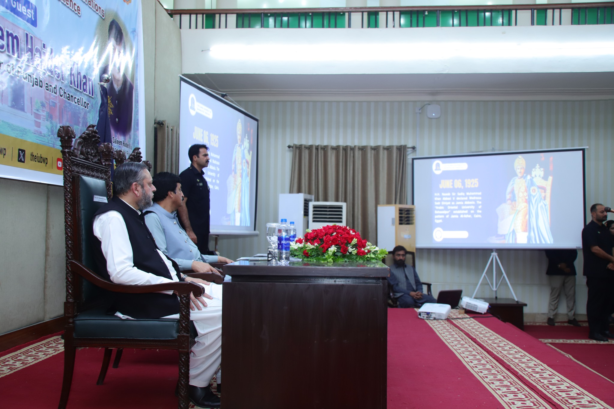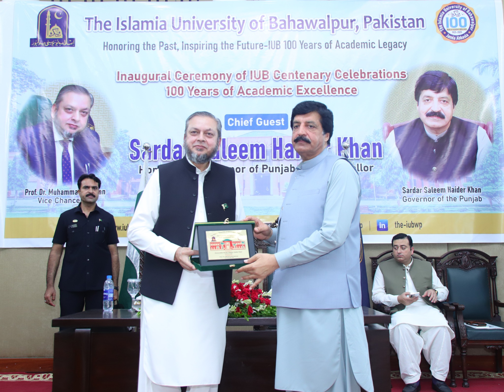 01 August 2025: Honourable Governor of Punjab and Chancellor Sardar Saleem Haider Khan visited the Islamia University of Bahawalpur and presided over the inaugural ceremony of IUB’s centenary celebrations. Vice Chancellor Prof. Dr. Muhammad Kamran thanked the Honourable Chancellor for his gracious presence and patronage of the faculty staff and students.