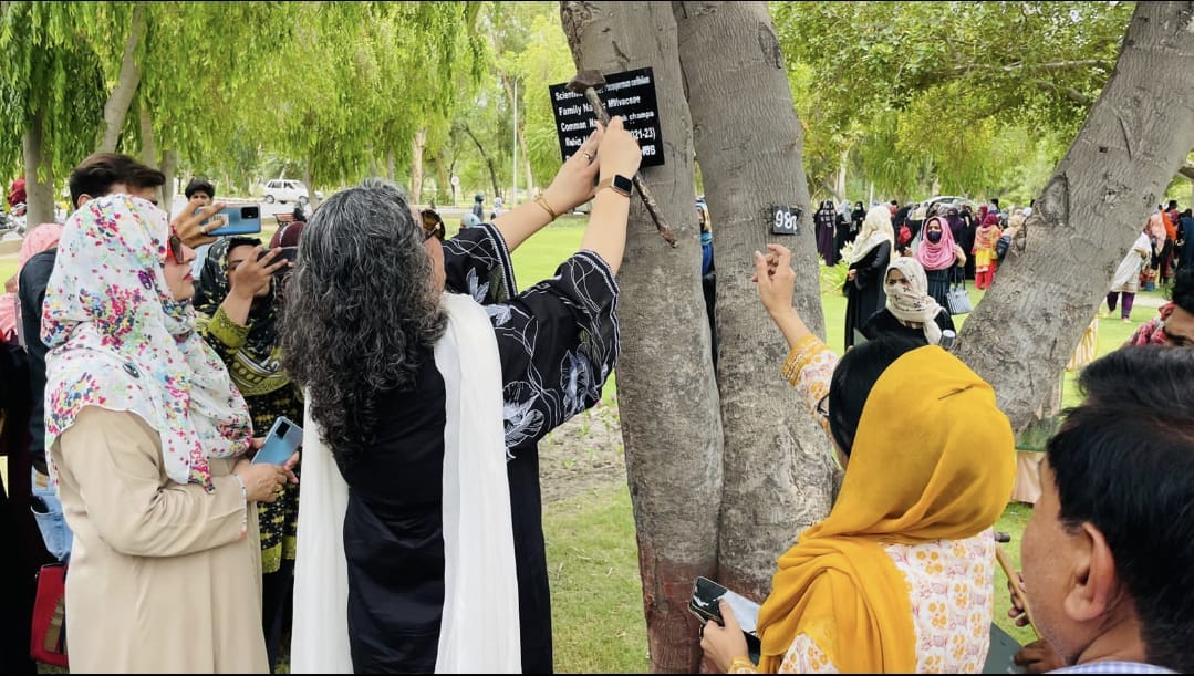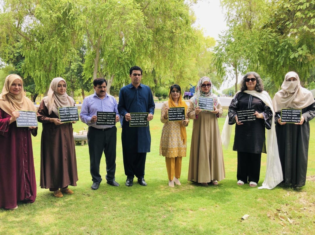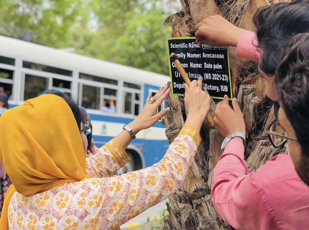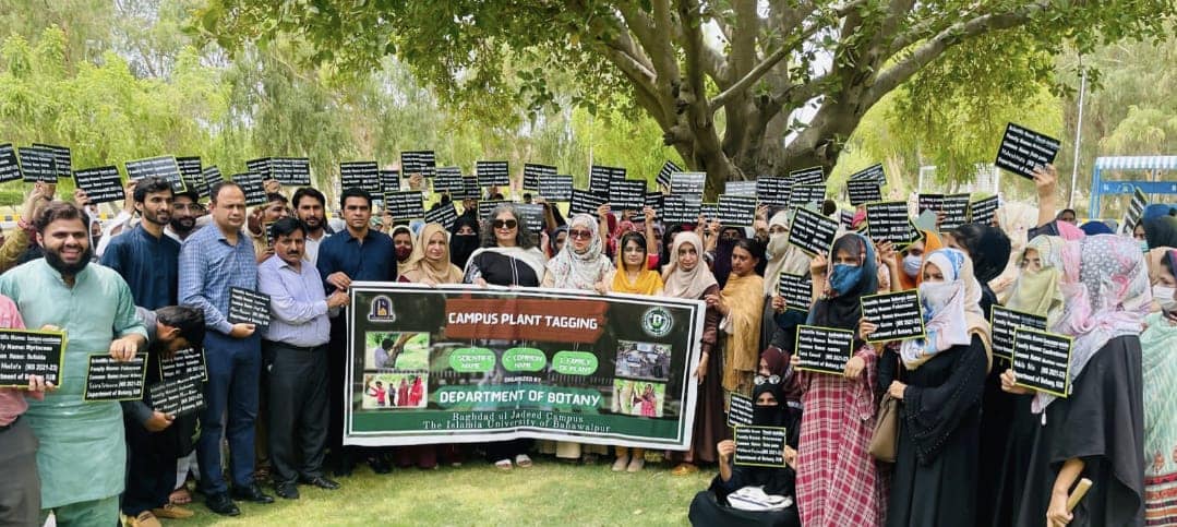 Dr. Nargis Naz (Chairperson, Department of Botany) took an initiative to identify and proper tagging of the flora of Baghdad-ul-Jadeed Campus, IUB. All the students of MS Botany (21-23) successfully organized this activity today under the supervision of Dr Nargis Naz and installed more than 200 tagging plates.