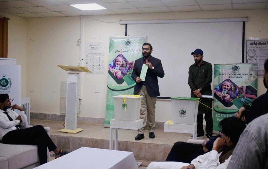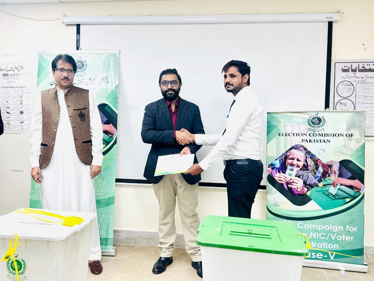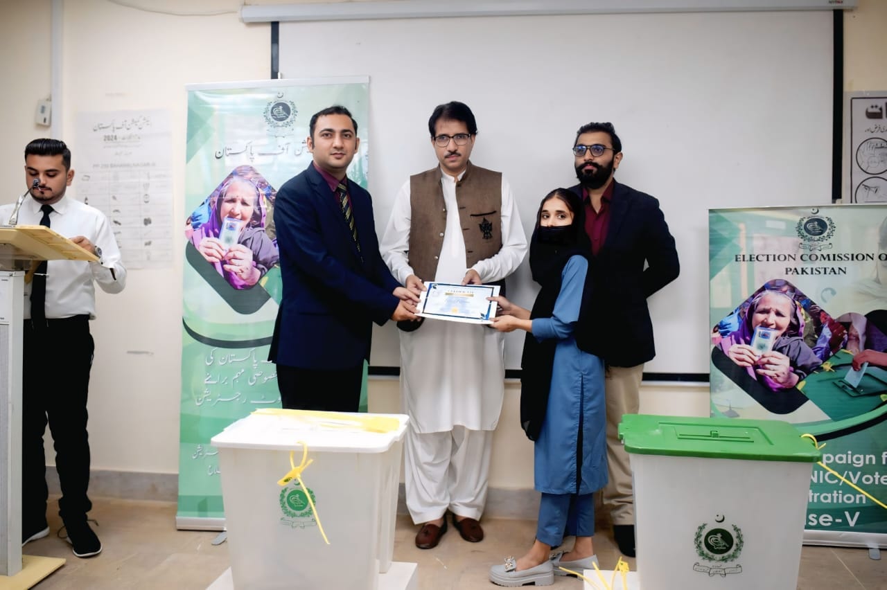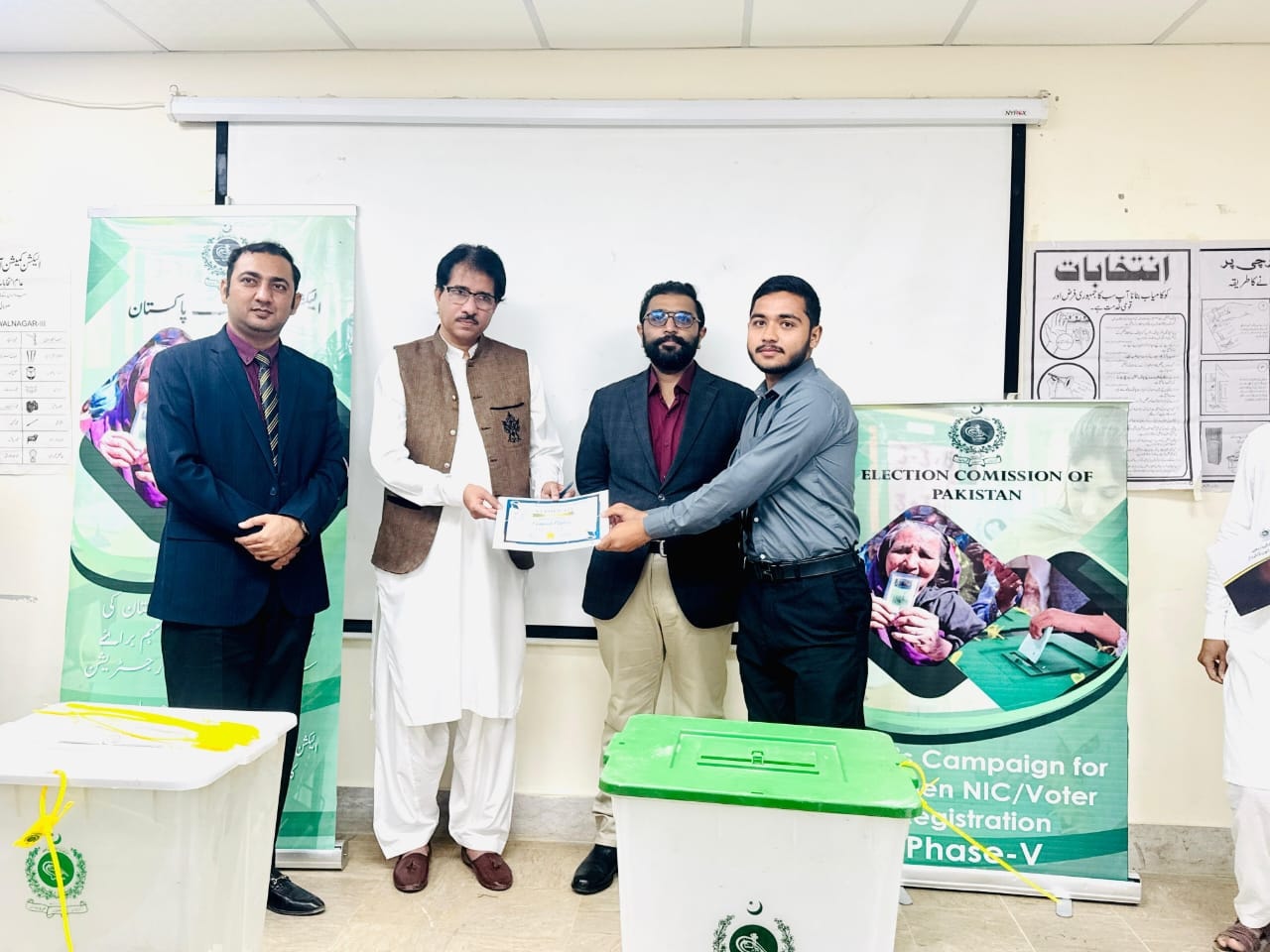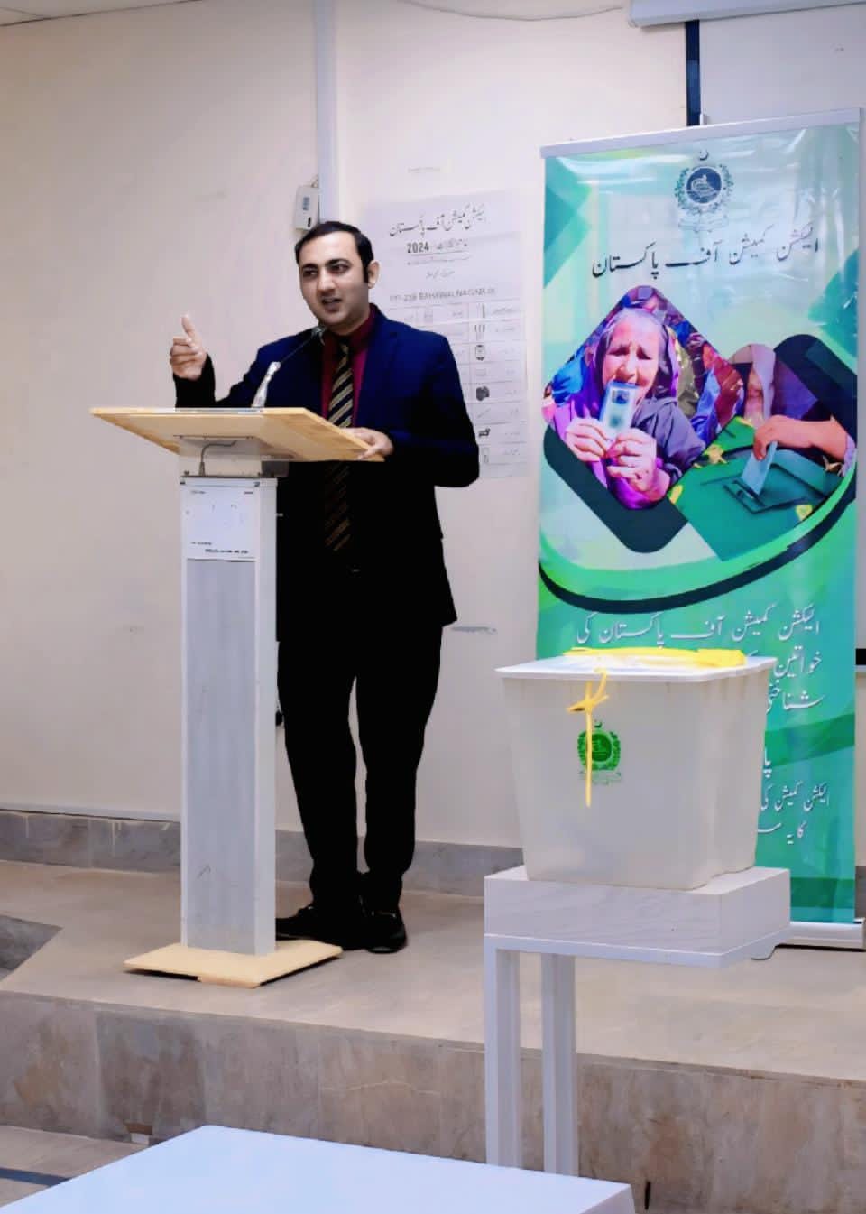 A training exercise and awareness seminar was organized at the Islamia University of Bahawalpur Bahawalnagar Campus in collaboration with the Directorate of Students Affairs and the Election Commission of Pakistan.