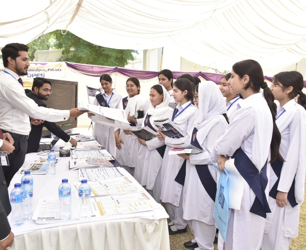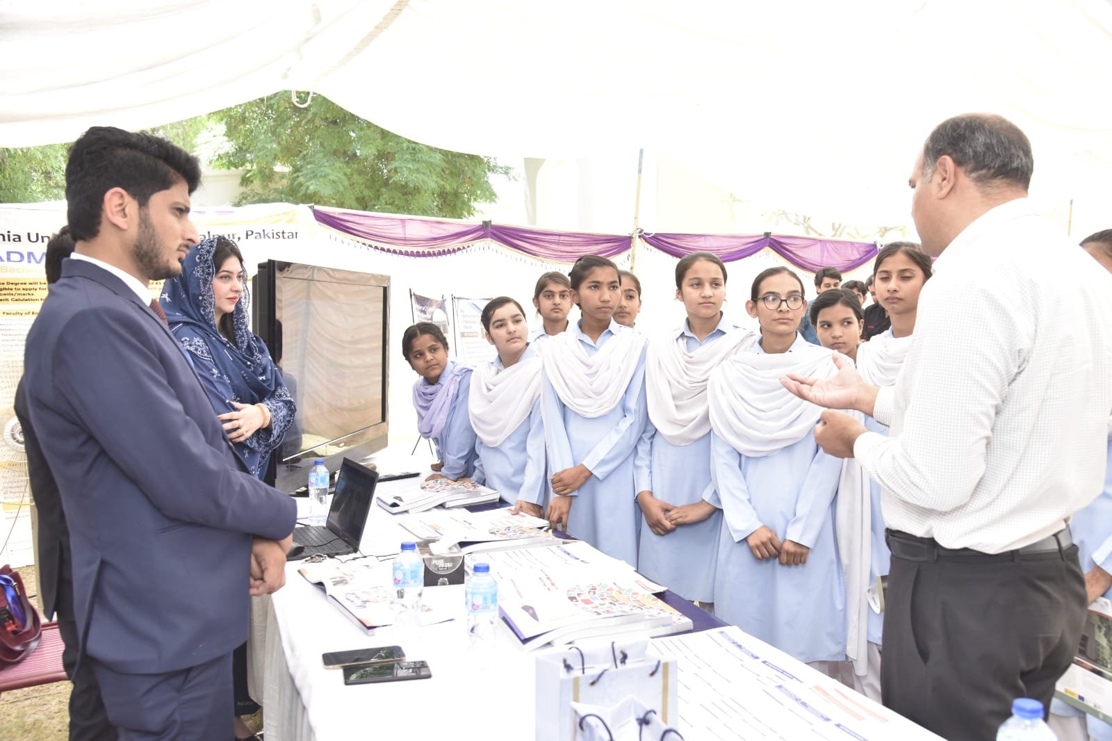 In connection with IUB's Fall Semester 2024 admission campaign, a seminar and exhibition were organized at Sadiq Public School Bahawalpur. Dean Faculty of Physical and Mathematical Sciences Prof. Dr. Saeed Ahmed Buzdar informed the teachers and students about the higher education opportunities especially the undergraduate programs.