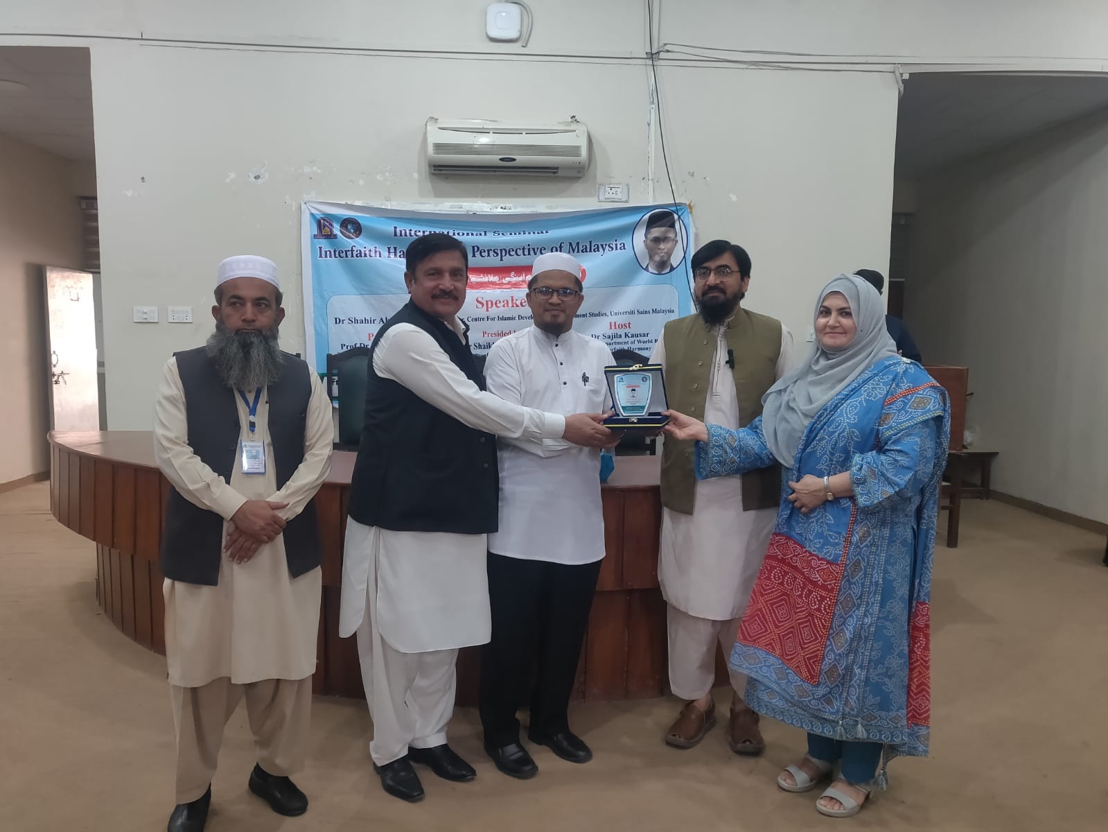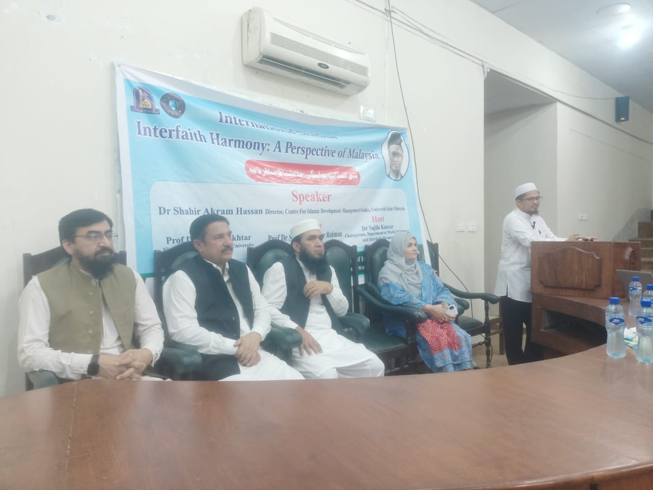 International Seminar on Interfaith Harmony: A Perspective of Malaysia at IUB. The seminar was held on 26 April 2024 at Syed Salman Nadvi Auditorium, Faculty of Islamic and Arabic Studies, Baghdad-ul-Jadeed Campus.