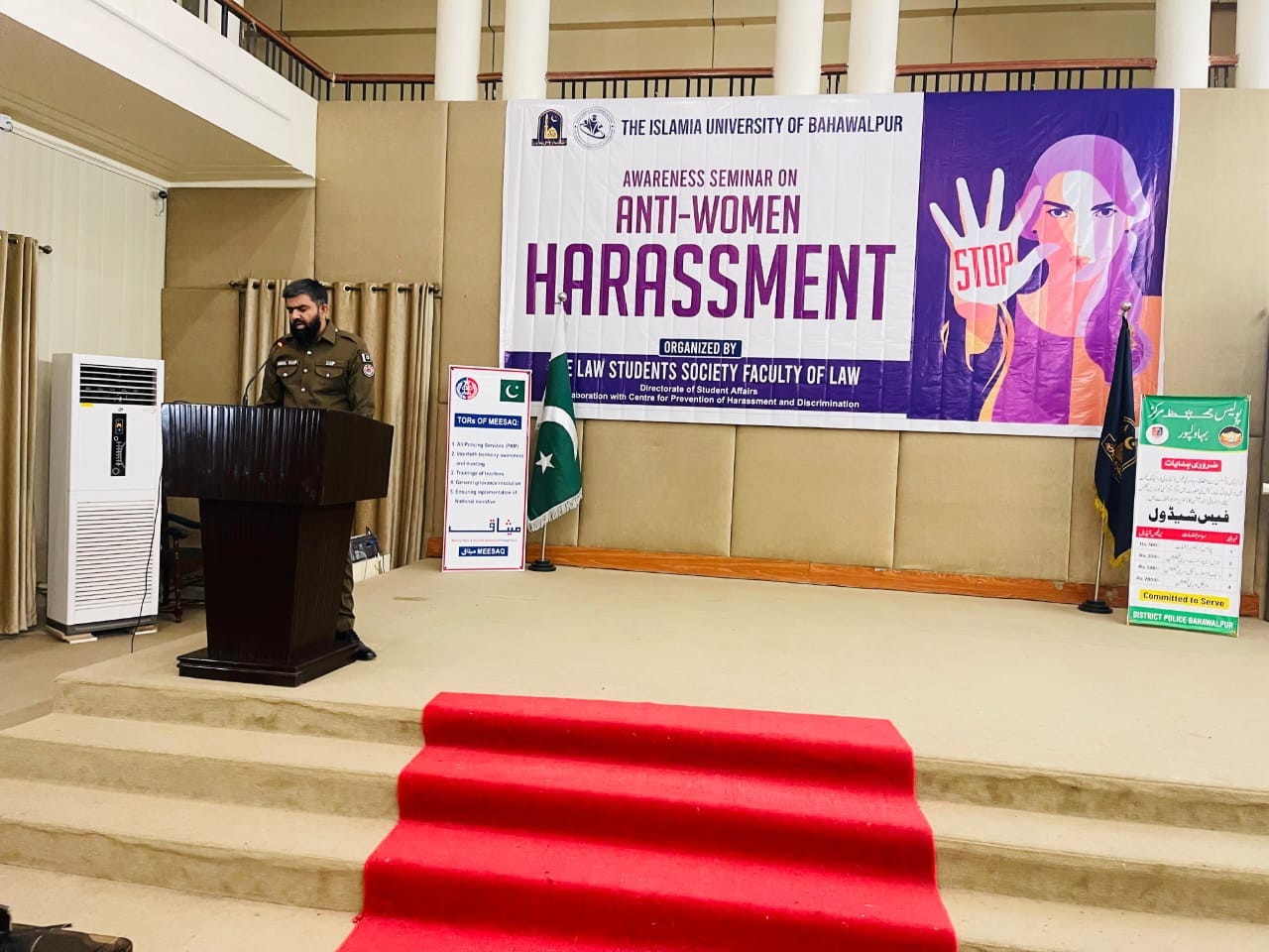 The Law Students Society-Faculty of Law, The Islamia University of Bahawalpur arranged an session on Awareness on Anti-Women Harassment on 23rd Oct, 2023, in Ghulam Muhammad Ghotvi Hall, Abbasia Campus, IUB.