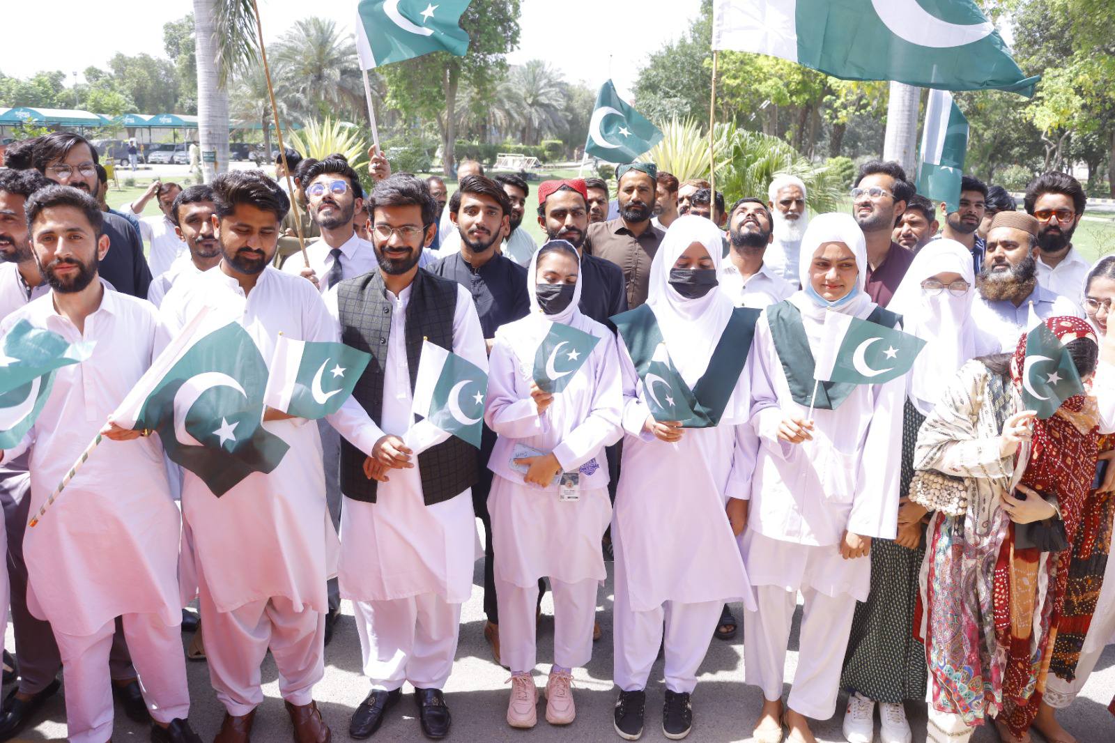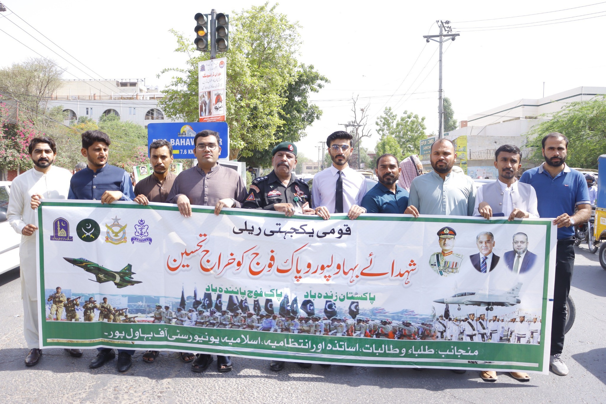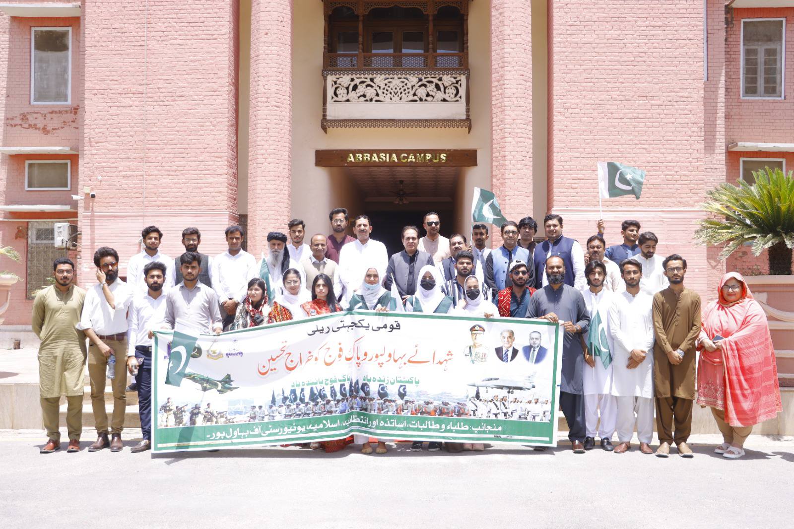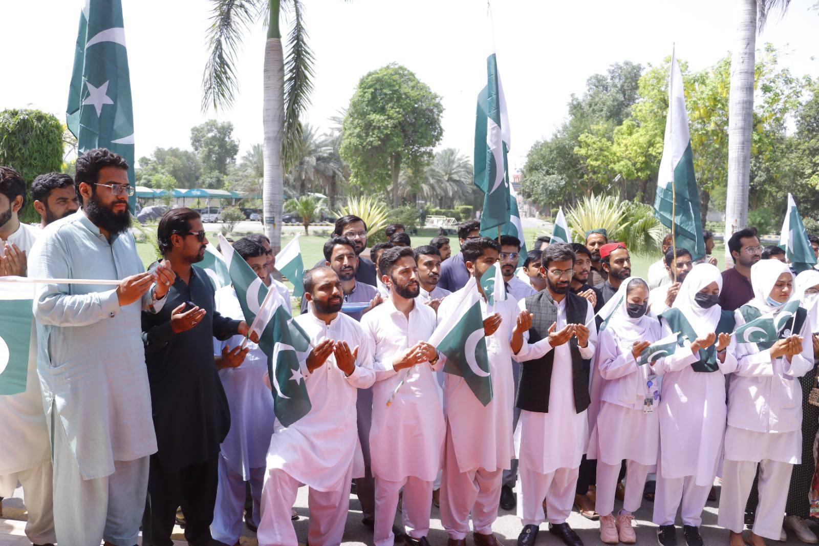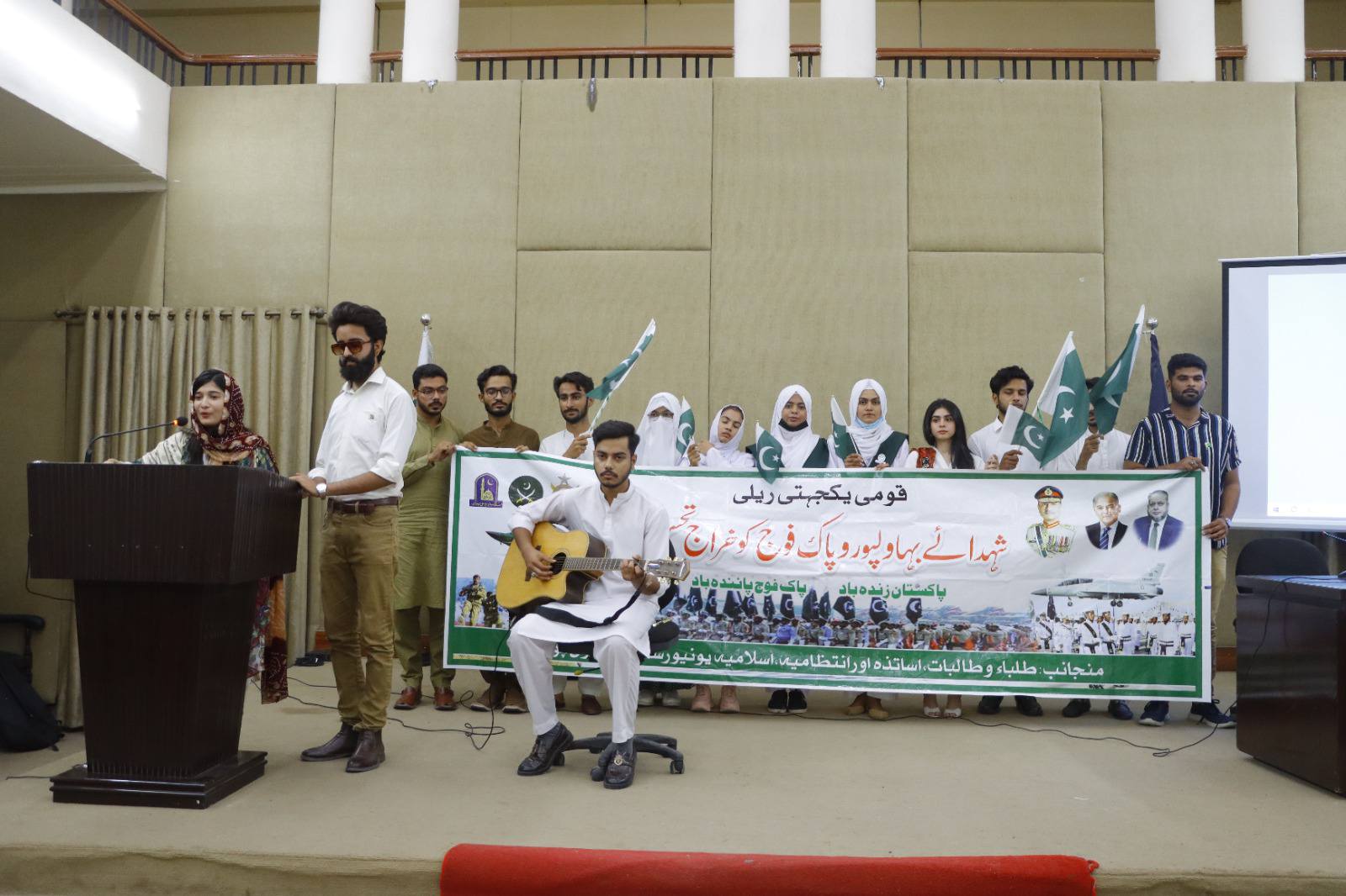 16 May 2025: Yum e tashakur celebrations were held at the Islamia University of Bahawalpur like across the country. In this regard, teachers and students participated in competitions, including national flag salute, special walk and national songs, and speech competitions.