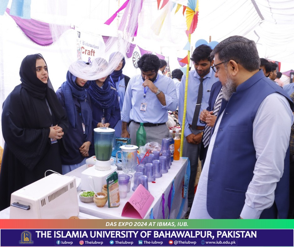 The Department of Administrative Sciences, Islamia University of Bahawalpur organized a two-day event entitled "DAS Business Expo 2024" to enhance the administrative and entrepreneurial talents of its students. The Dean, FMS&C, Prof. Dr. Jawad Iqbal, Chairman DAS, Dr. Shahid Mehmood, and other esteemed faculty members, honored the event with their presence.