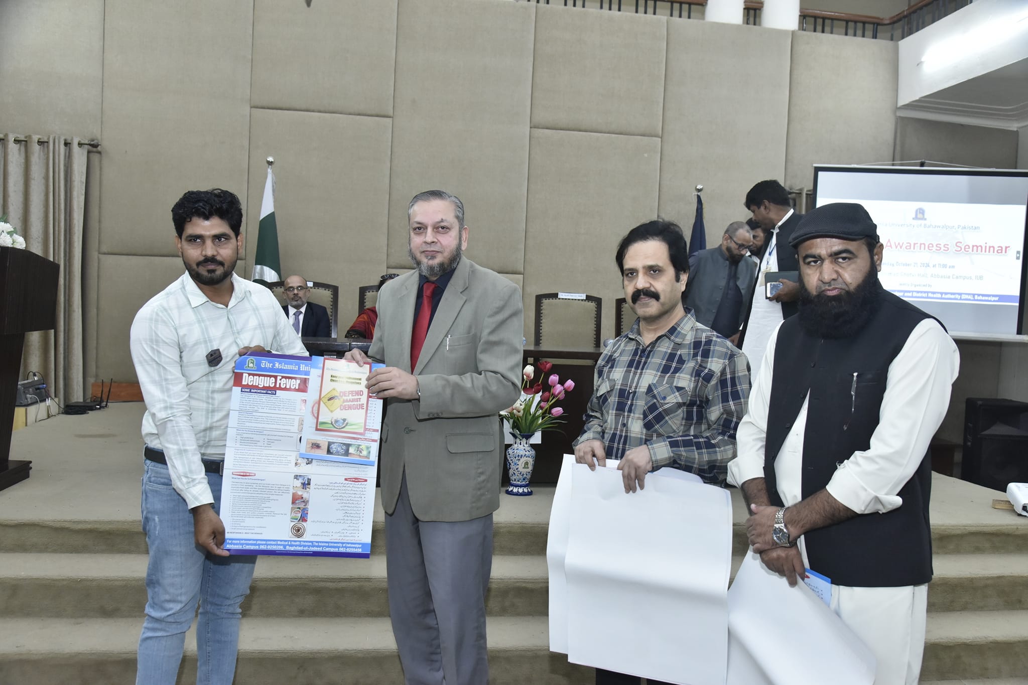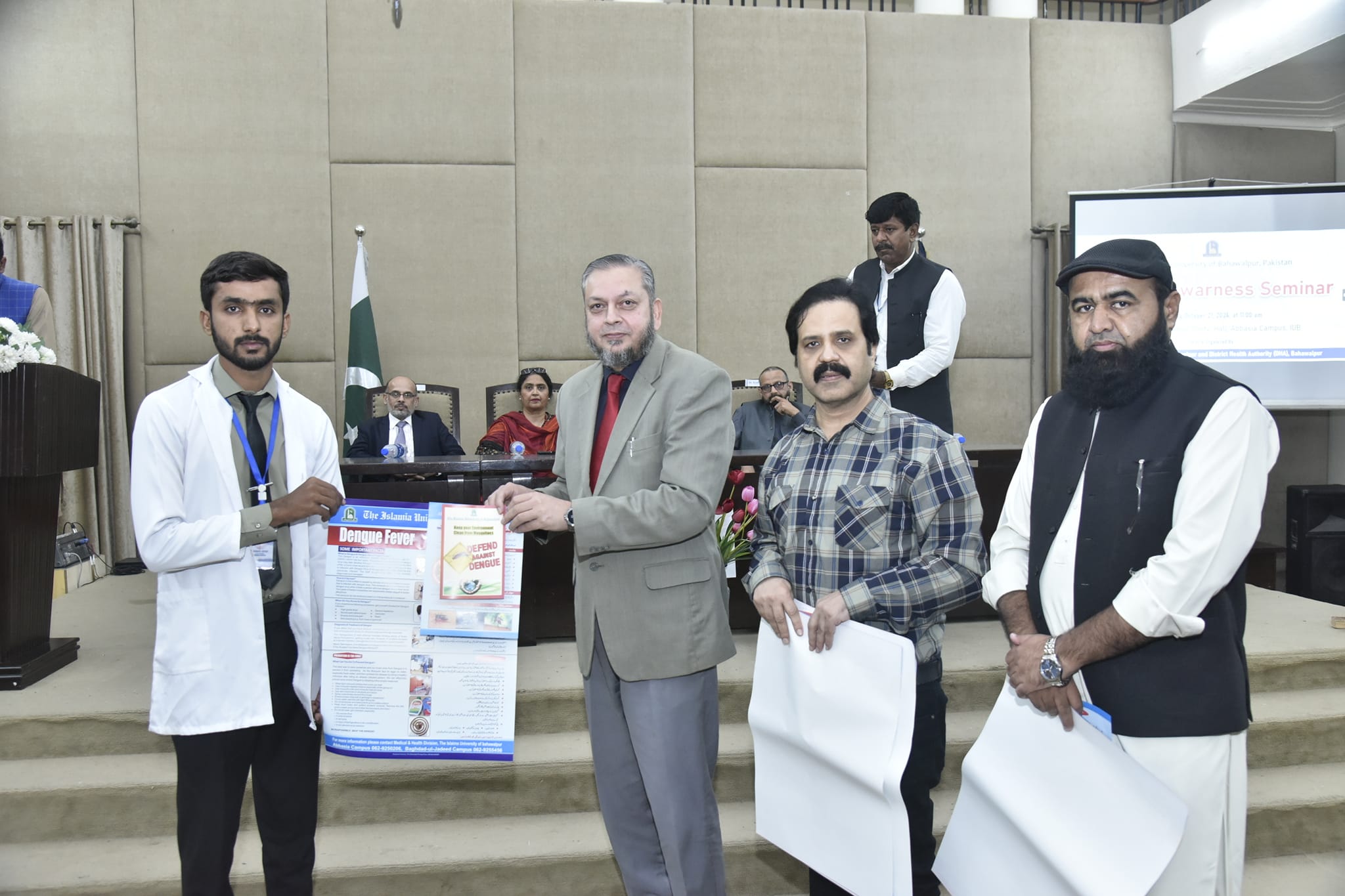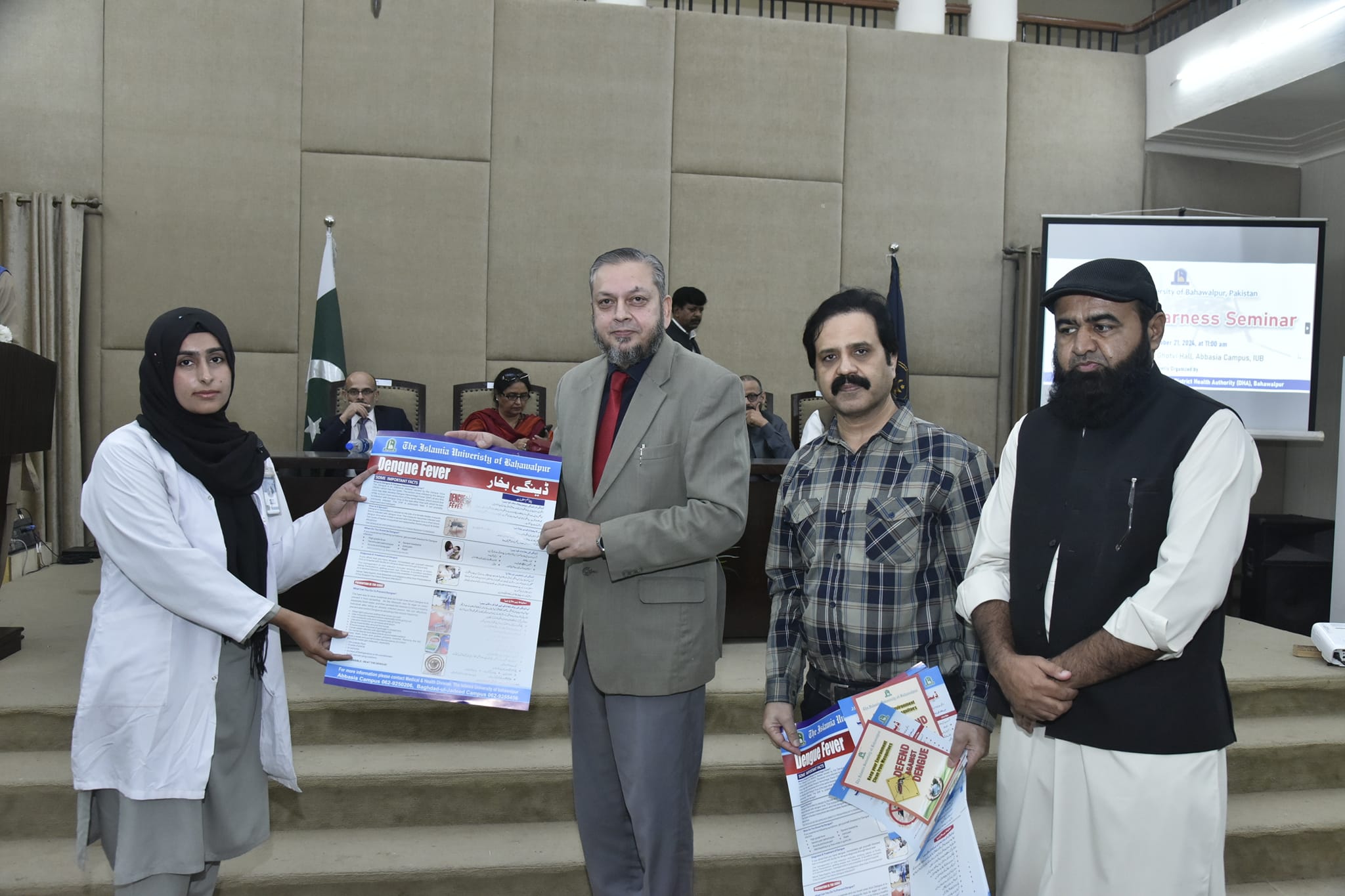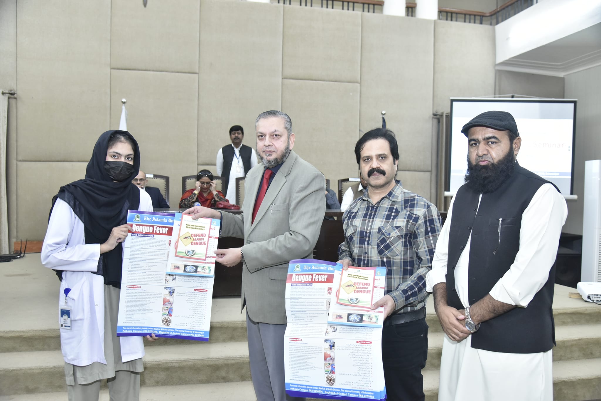 IUB Medical and Health Division, Office of the Estate Care, IUB Anti-Narcotics and Health Care Society, Directorate of Students Affairs, the Islamia University of Bahawalpur organized a special seminar in connection with the Anti-Dengue campaign in Ghulam Muhammad Ghotvi Hall Abbasia Campus on Oct 21, 2024. The seminar was presided over by Vice Chancellor Prof. Dr. Muhammad Kamran.