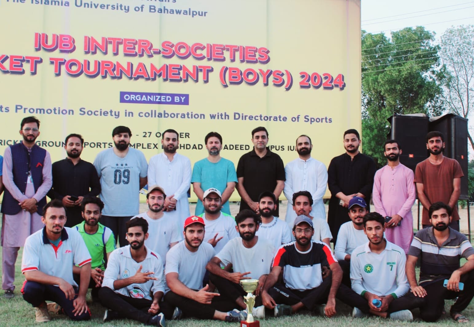 The IUB Sports Promotion Society, Directorate of Students Affairs has successfully organized the IUB Inter-Societies Cricket Tournament (Boys) 2024. The tournament was held on October 26, 2024 at Cricket Ground, Baghdad-ul-Jadeed Campus, IUB. We congratulate the champion team IUB Social Welfare Society and Better luck for next runner up team IUB Scouts Group as both teams played very well.