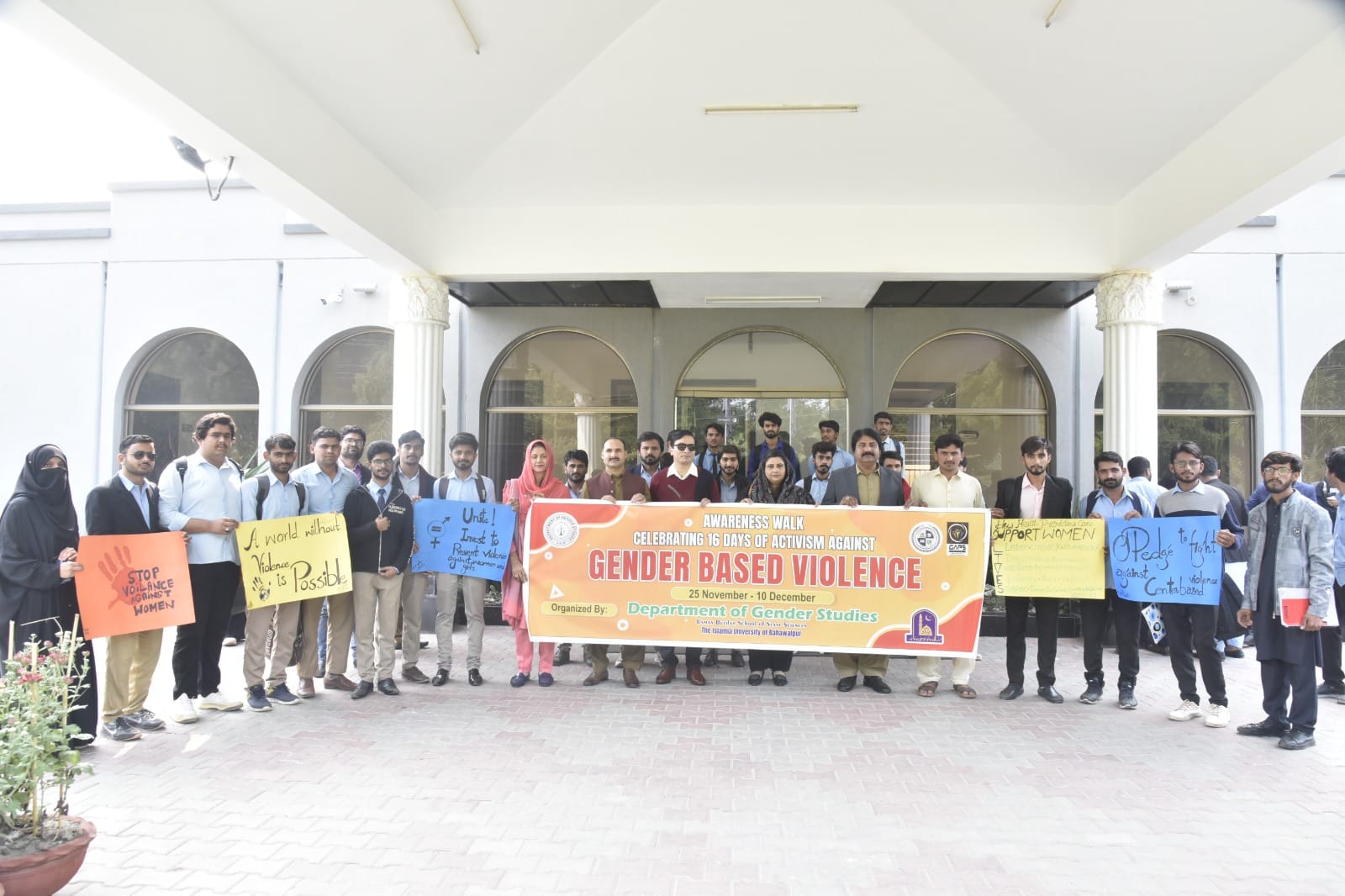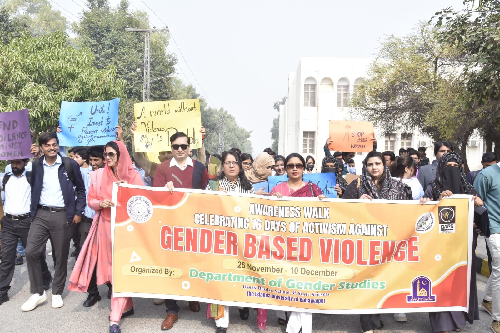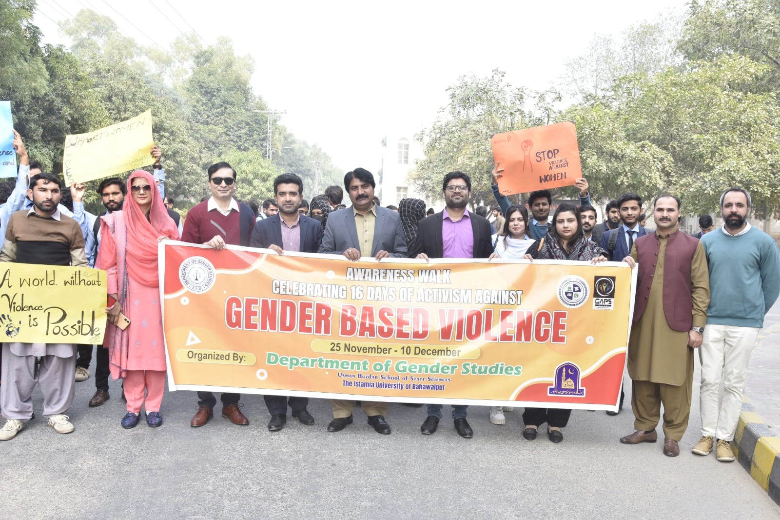 Usman Buzdar School of State Sciences, Department of Gender Studies and Women Development Center The Islamia University of Bahawalpur with the Collaboration of Department of Political Science arranged an Awareness walk Against Gender-Based Violence on Wednesday 29 November 2023 from Sir Sadiq Muhammad Khan Library to Vice Chancellor's Secretariat.