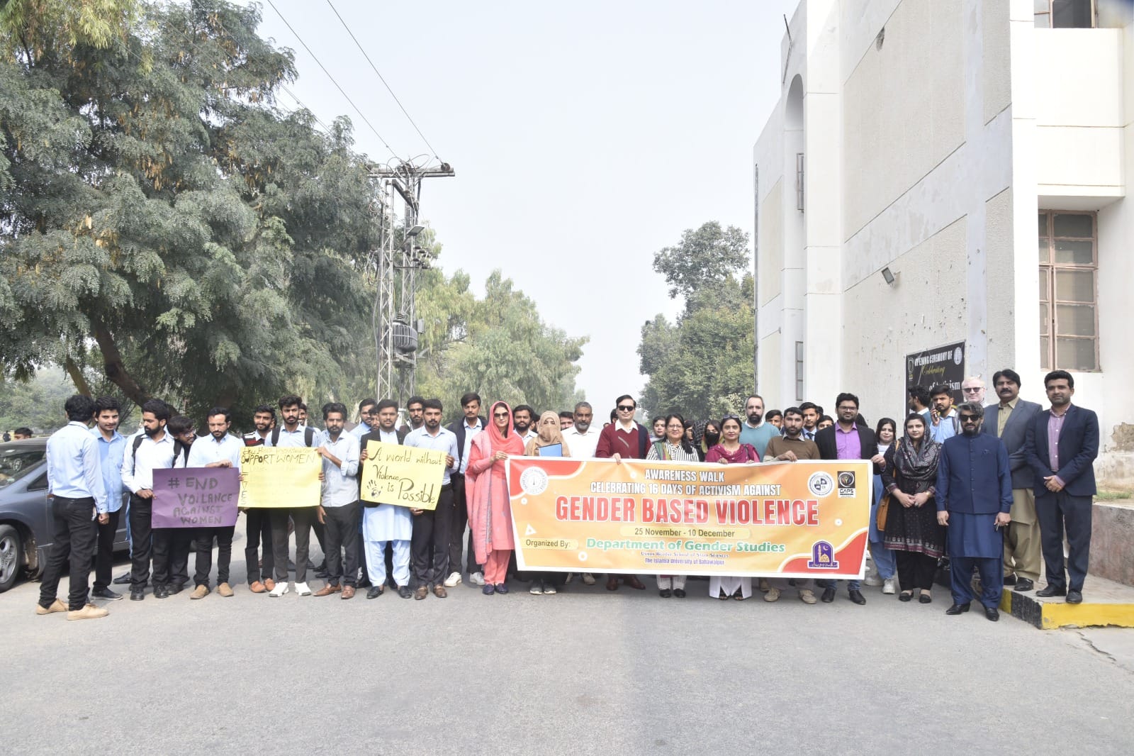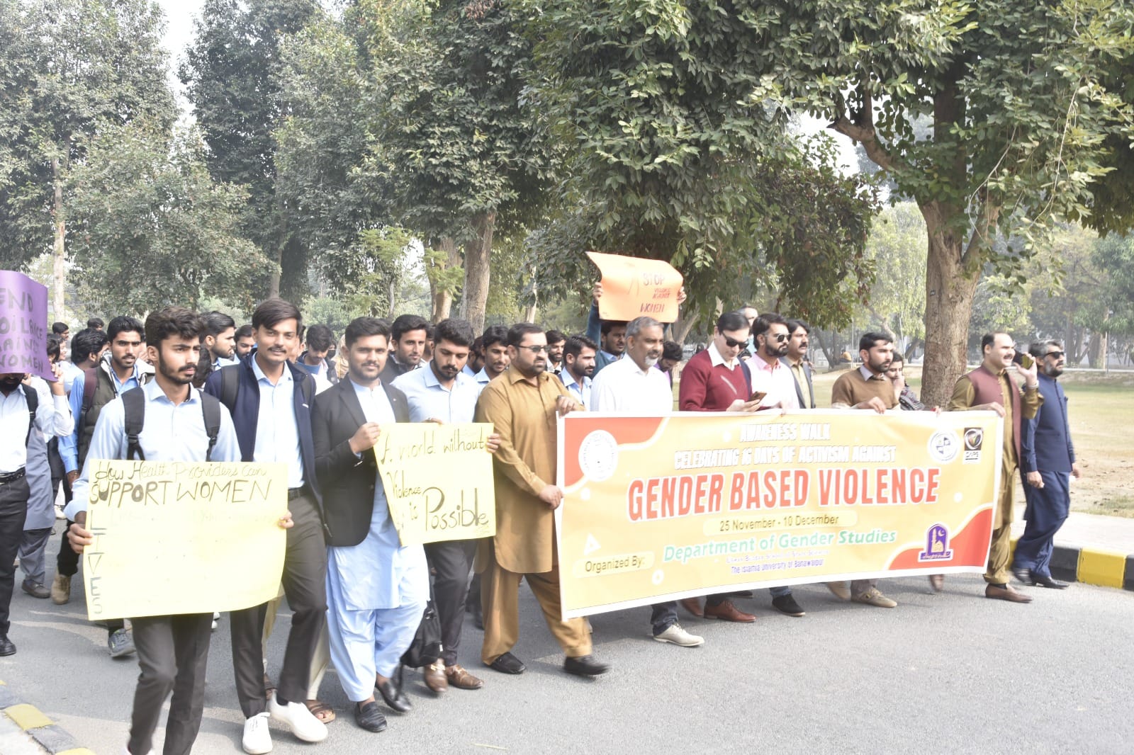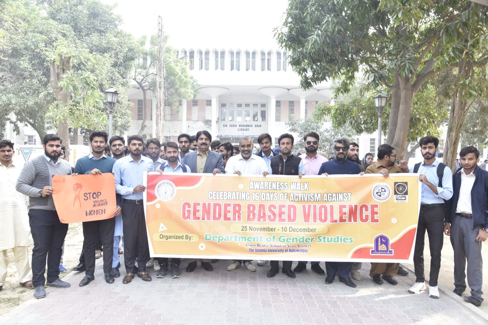 Usman Buzdar School of State Sciences, Department of Gender Studies and Women Development Center The Islamia University of Bahawalpur with the Collaboration of Department of Political Science arranged an Awareness walk Against Gender-Based Violence on Wednesday 29 November 2023 from Sir Sadiq Muhammad Khan Library to Vice Chancellor's Secretariat.