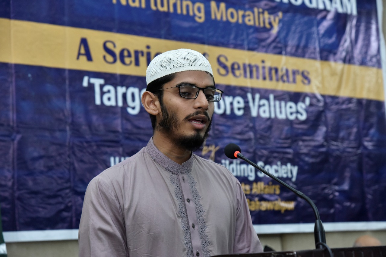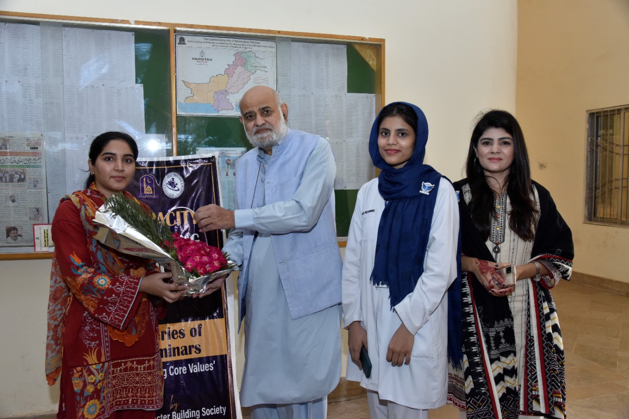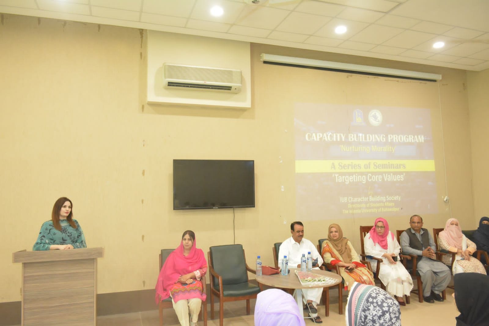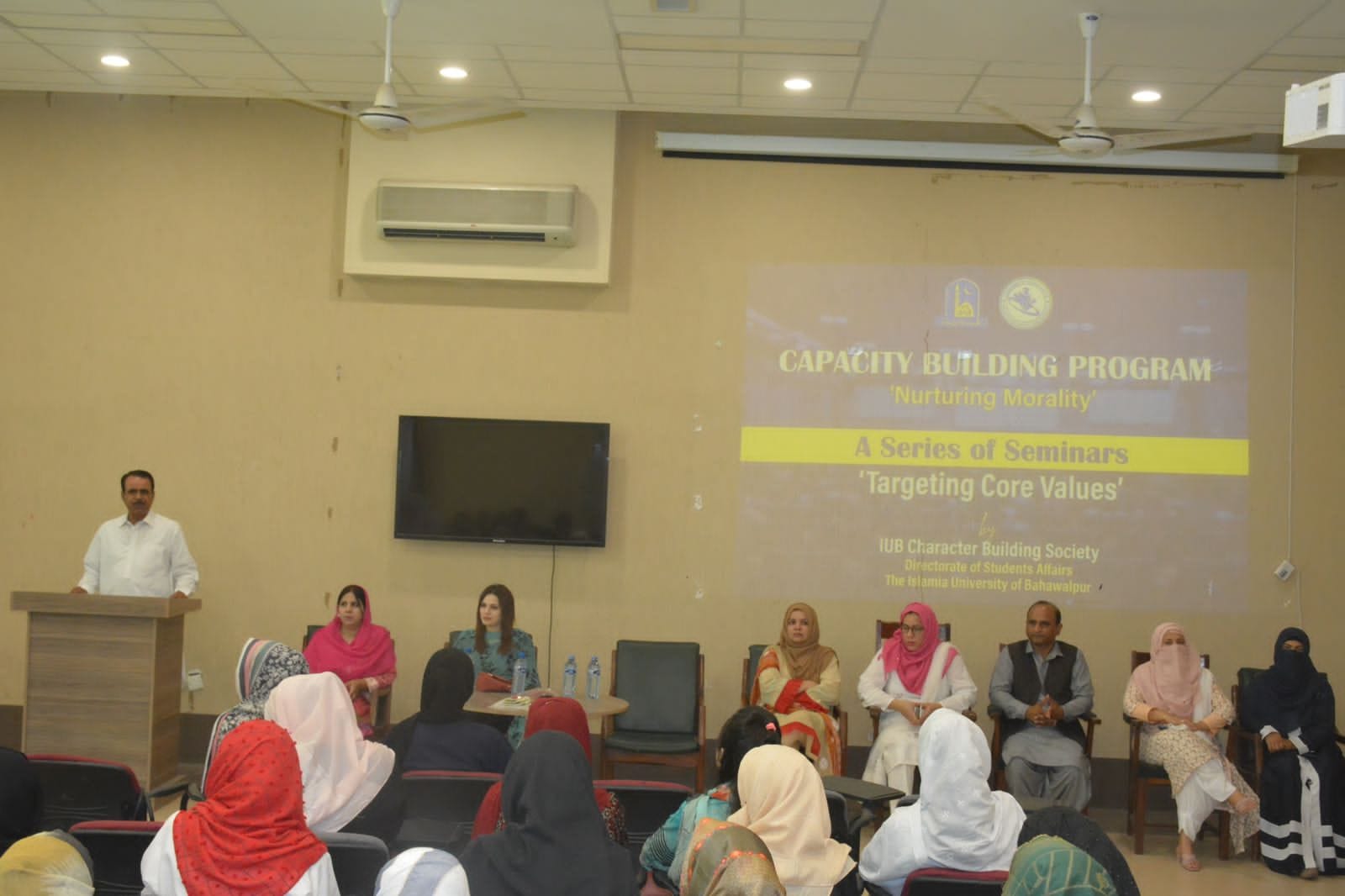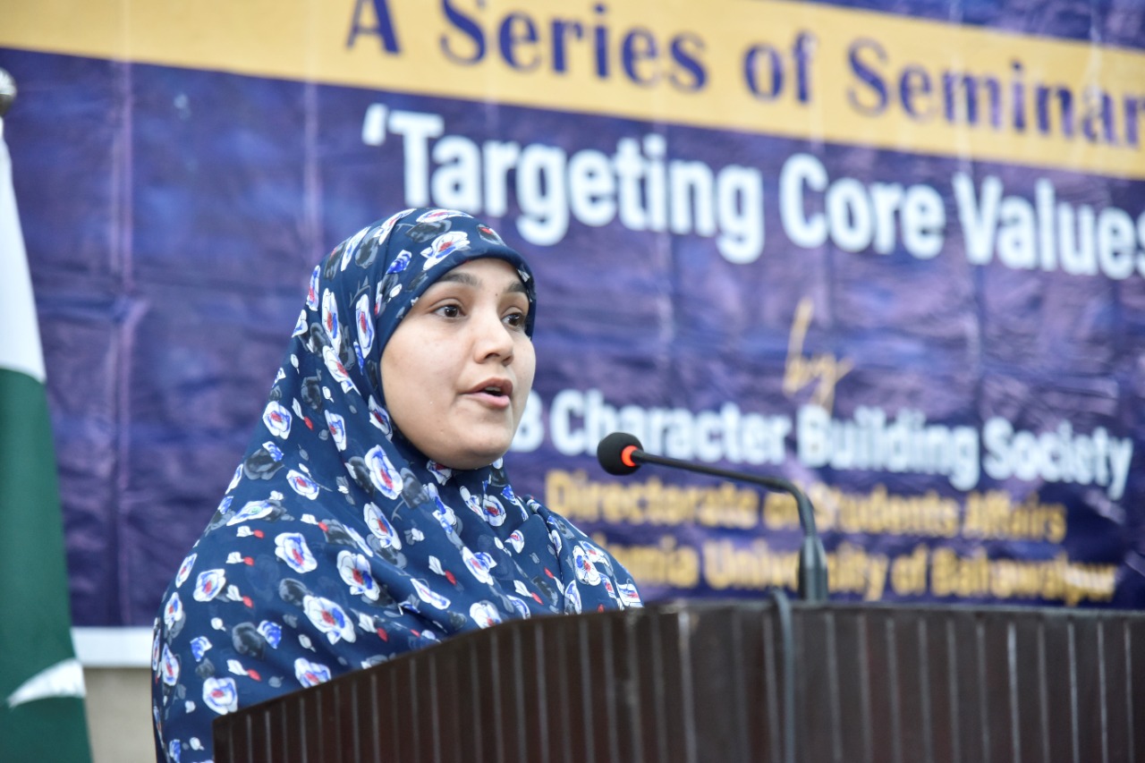 The IUB Character Building Society organizes a series of seminars on "Targeting Core Values". It is organized by the Directorate of Student Affairs of the Islamia University of Bahawalpur. This series of seminars is still going on.