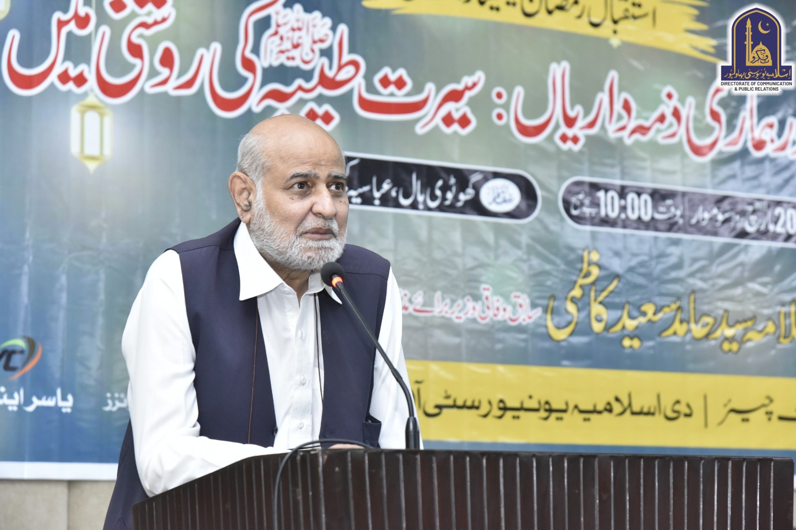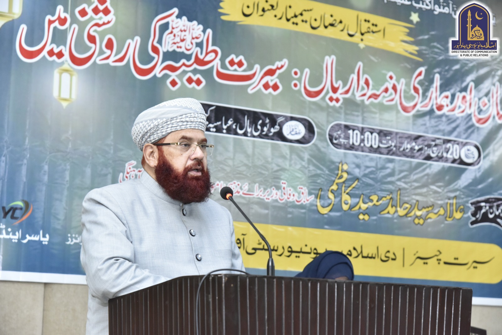The Islamia University of Bahawalpur Conducted a seminar on the subject of "Istaqbal Ramzan". Well-known Islamic scholar and formal federal minister Syed Hamid Saeed Kazmi participated in this seminar as a special guest.