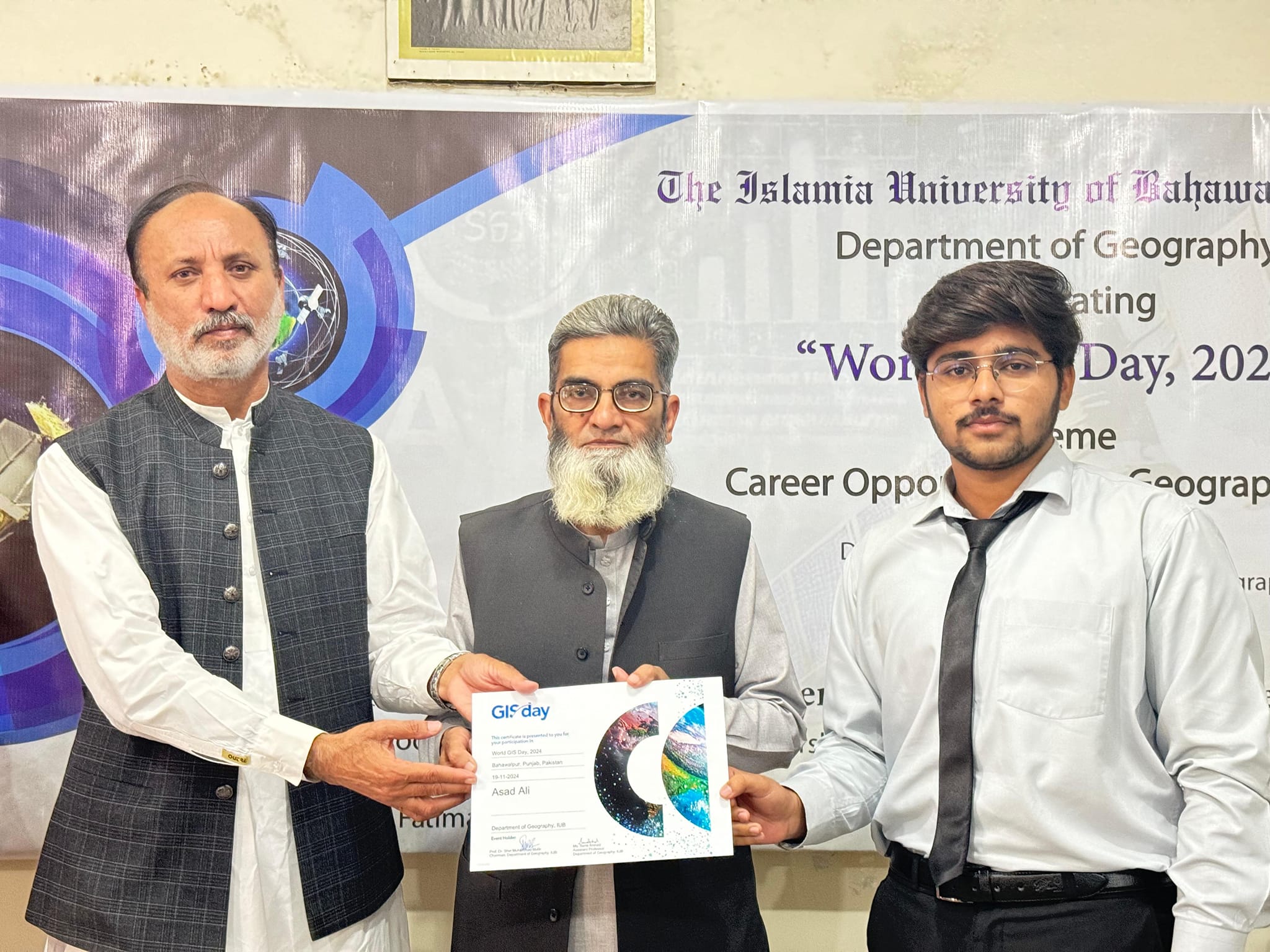 Department of Geography, the Islamia University of Bahawalpur, celebrated the 25th anniversary of "World GIS Day" on November 19, 2024, conducting an international seminar on "Career Opportunities in Geography/GIS."