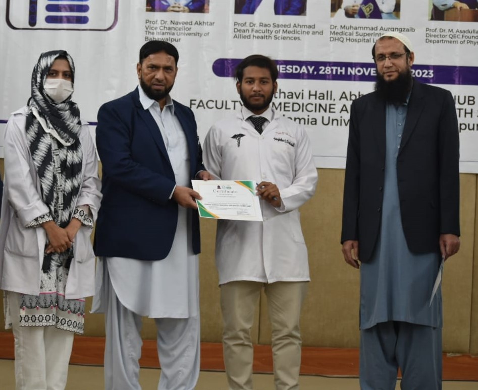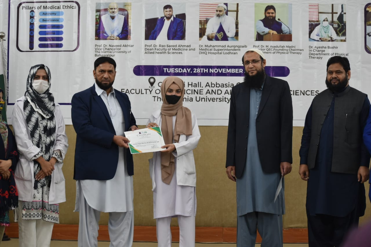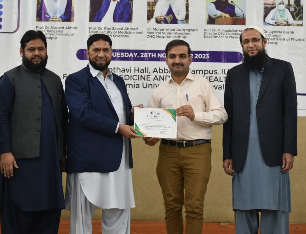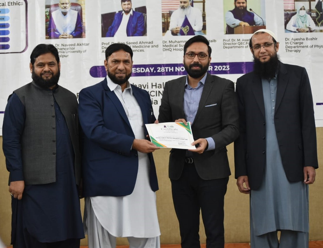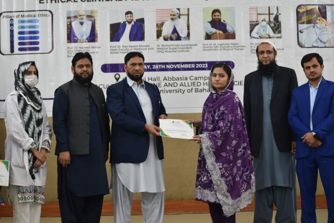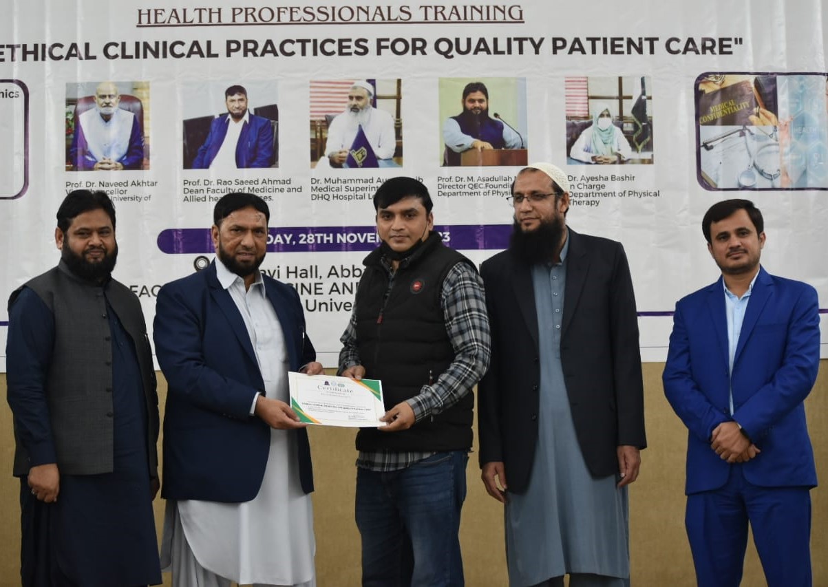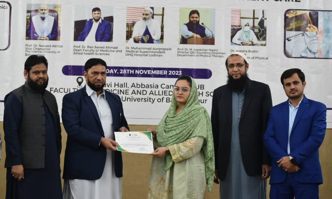 The Department of Physical Therapy, Faculty of Medicine and Allied Health Sciences, The Islamia University of Bahawalpur in collaboration with DHQ Hospital Lodhran organized a one day Health Professionals training program on "Ethical Clinical Practices for Enhancing Quality Patient Care".
