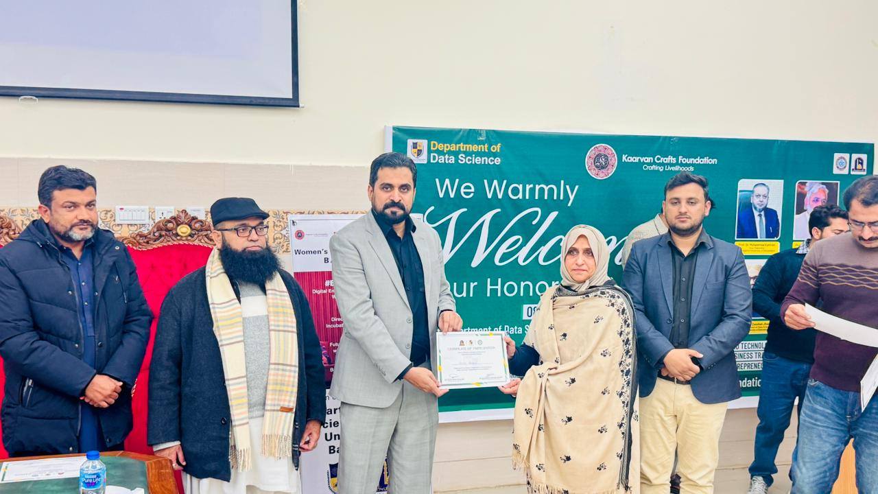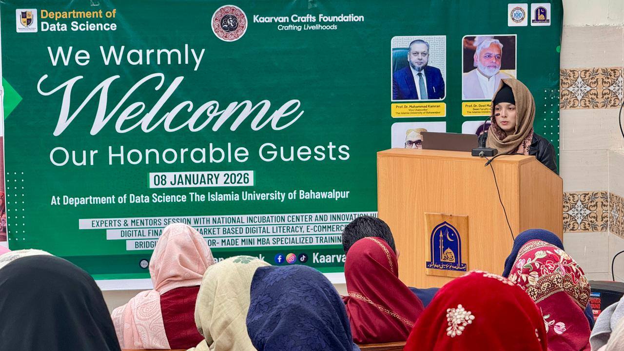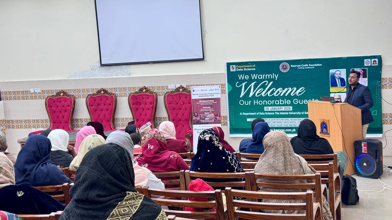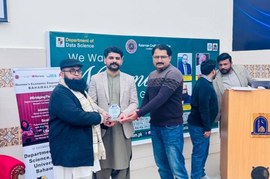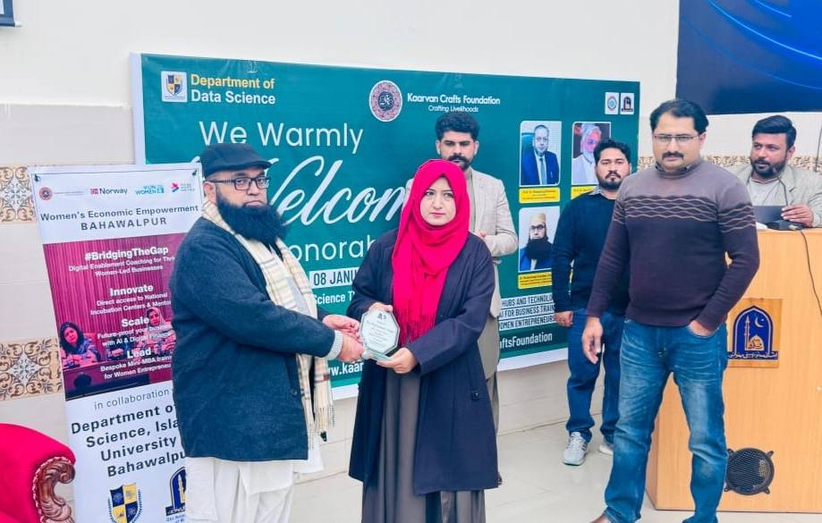 08 January 2026: Department of Data Science, The Islamia University of Bahawalpur successfully delivered #BridgingTheGap – Digital Enablement Coaching for Thriving Women-Led Businesses at Youth Development Center, Baghdad-ul-Jadeed Campus, IUB, in collaboration with Kaarvan Crafts Foundation and UN Women Pakistan.