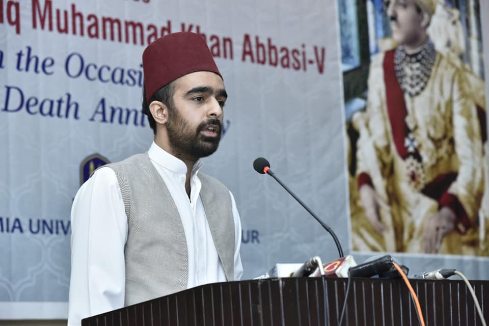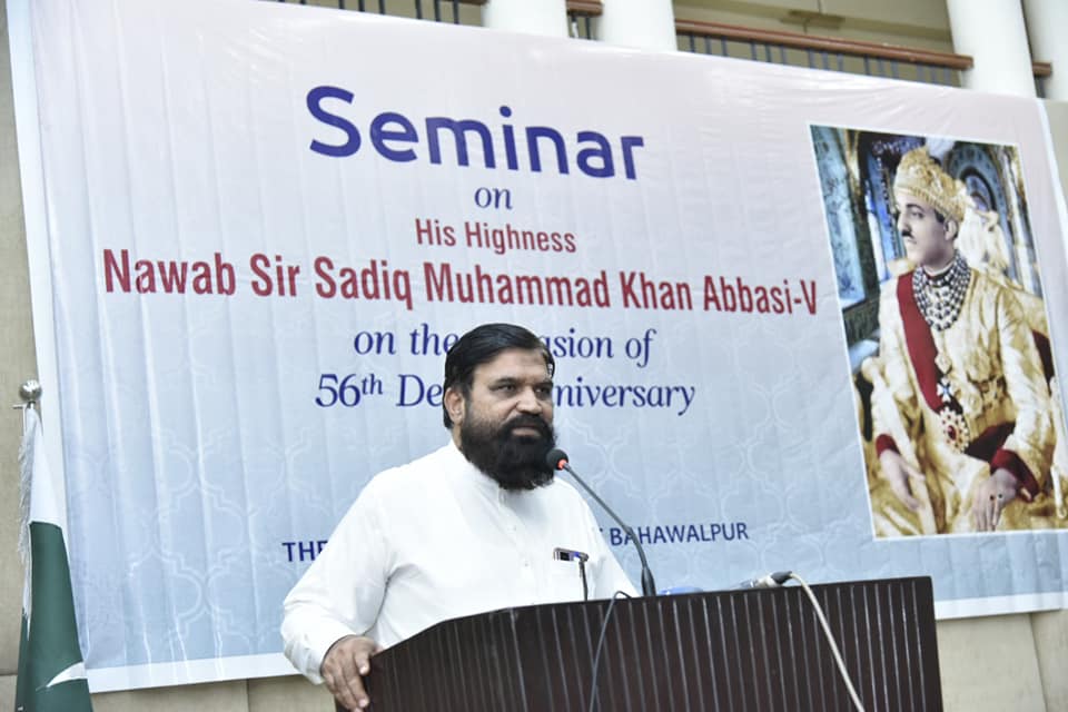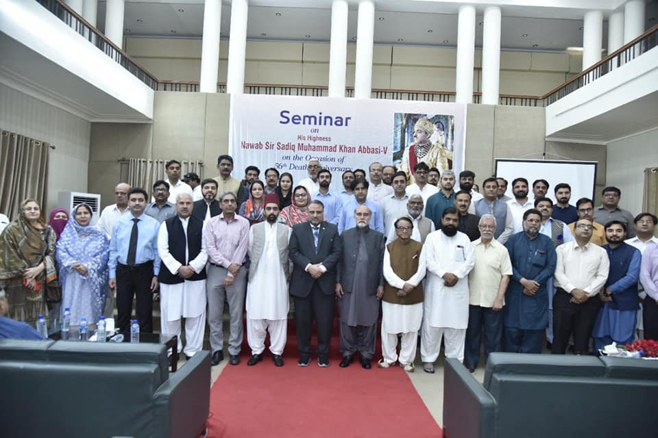 Seminar on His Highness Nawab Sir Sadiq Muhammad Khan Abbasi - V at Ghulam Muhammad Ghotvi Hall, Abbasia Campus, the Islamia University of Bahawalpur. His Highness Crown Prince Bahawal Abbas Khan Abbasi and Sahibzada Usman Mian Abbasi were the special guests.