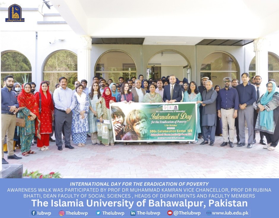 International Day for the Eradication of Poverty 2024 Theme: Let's get together for Ending Social and Institutional Maltreatment Acting together for just, peaceful and inclusive societies.Awareness Walk was participated by Prof. Dr. Muhammad Kamran Vice Chancellor, Prof. Dr. Rubina Bhatti, Dean Faculty of Social Sciences, heads of departments and faculty members.