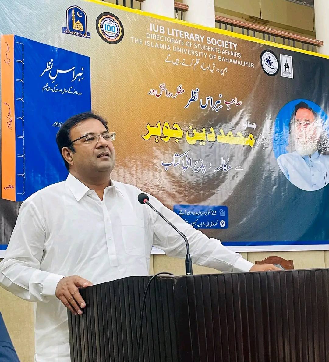 22 October 2025: IUB Literary Society, Directorate of Student Affairs organized a reception and discussion for the book "Nibras-e-Nazar" by renowned thinker and intellectual Mr. Muhammad Din Johar. The chief guest was the author of the book, Mr. Muhammad Din Johar.
