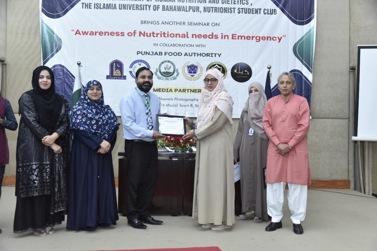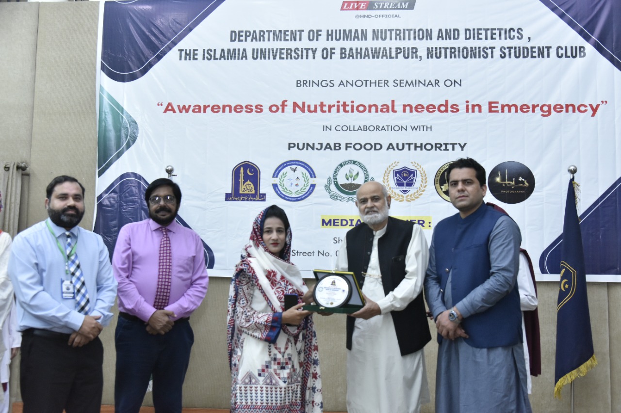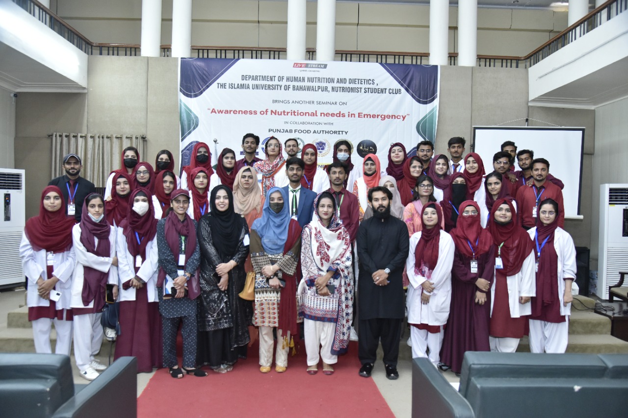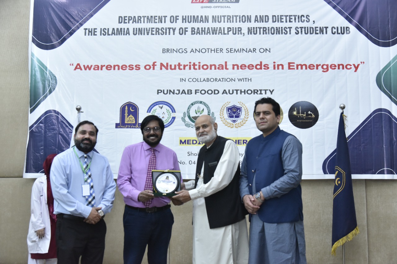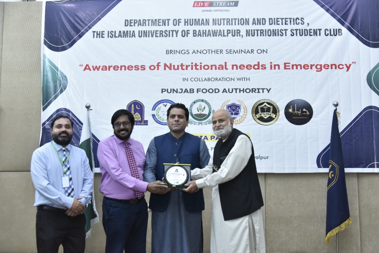 The Islamia University of Bahawalpur in collaboration with Punjab Food Authority organized a seminar on "Awareness of Nutritional Needs in Emergency" at Ghulam Muhammad Ghotvi Hall, Abbasia Campus, IUB