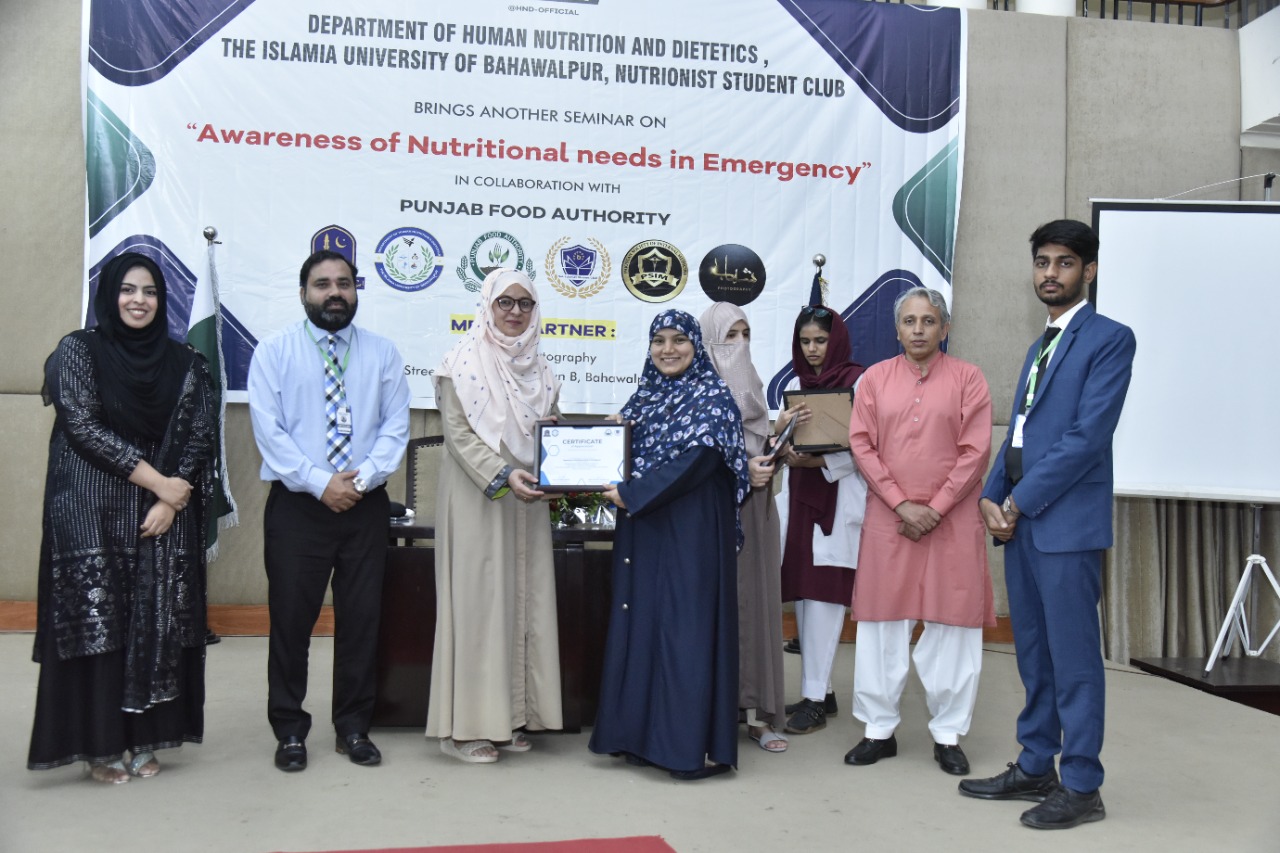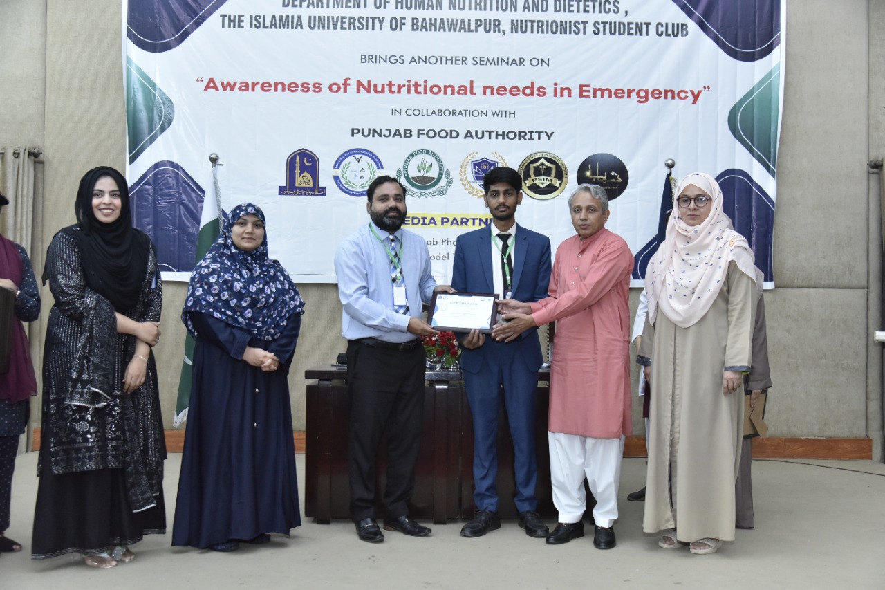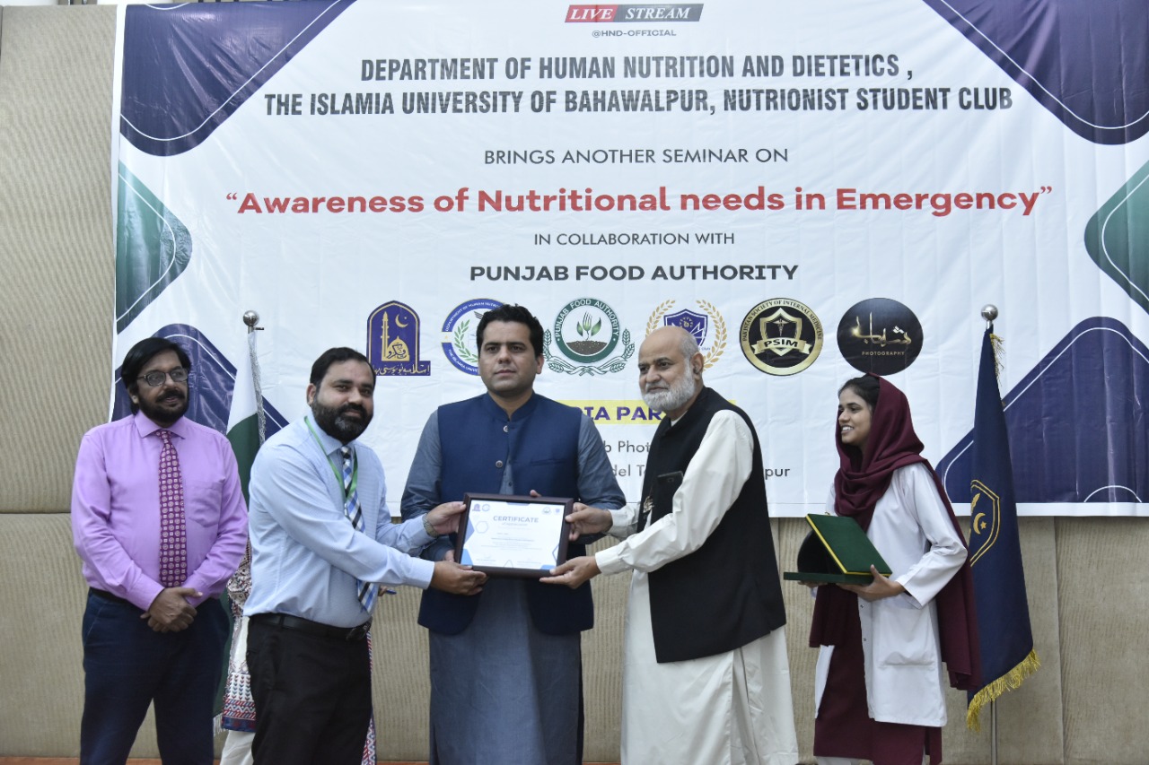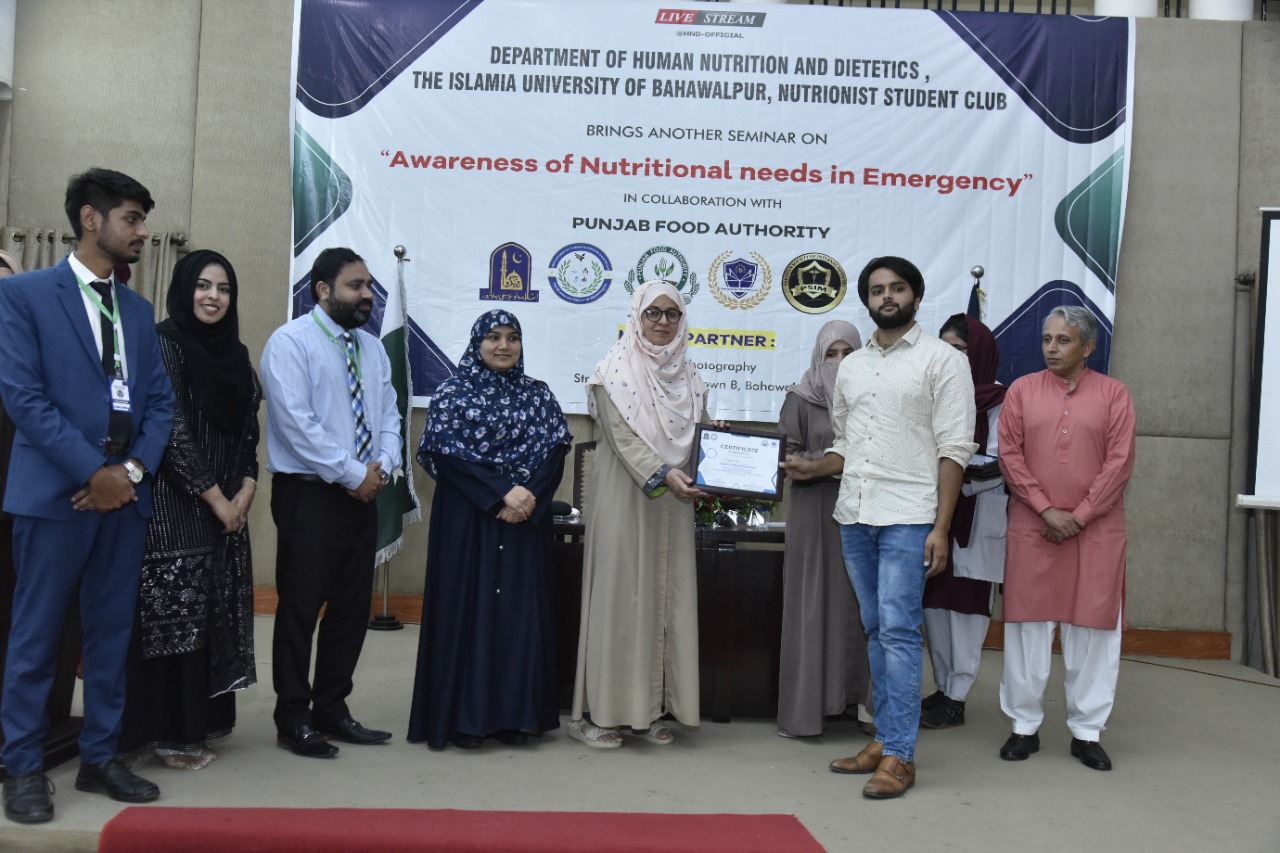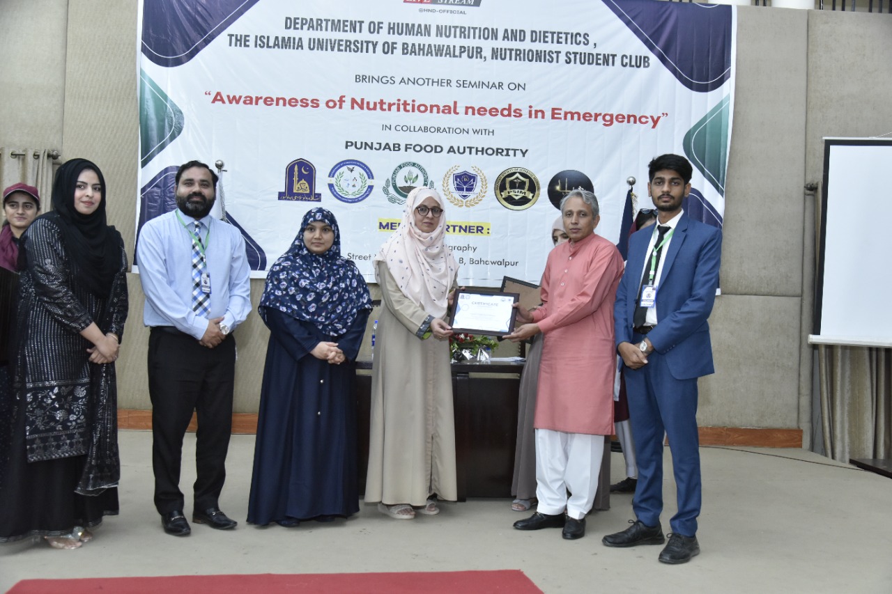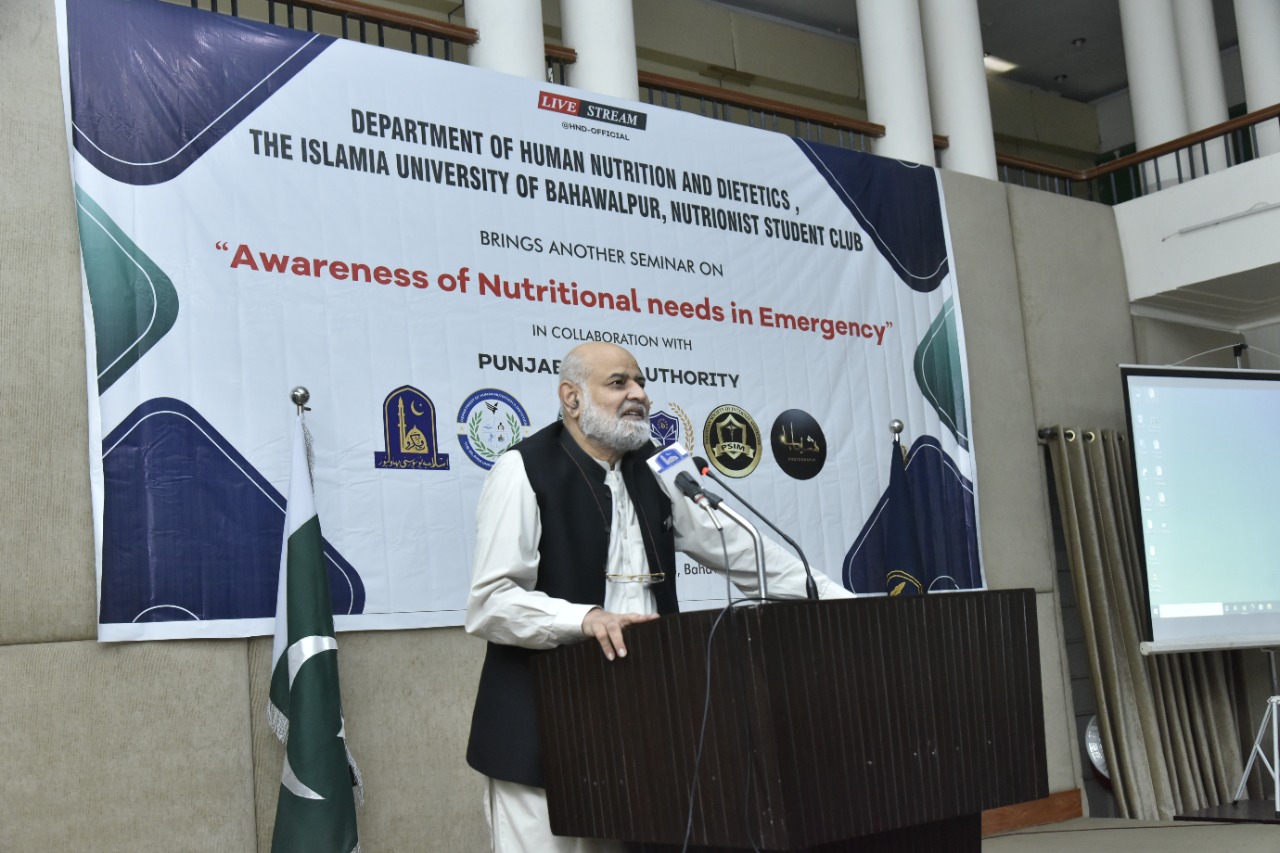 The Islamia University of Bahawalpur in collaboration with Punjab Food Authority organized a seminar on "Awareness of Nutritional Needs in Emergency" at Ghulam Muhammad Ghotvi Hall, Abbasia Campus, IUB