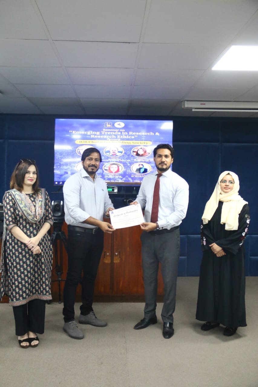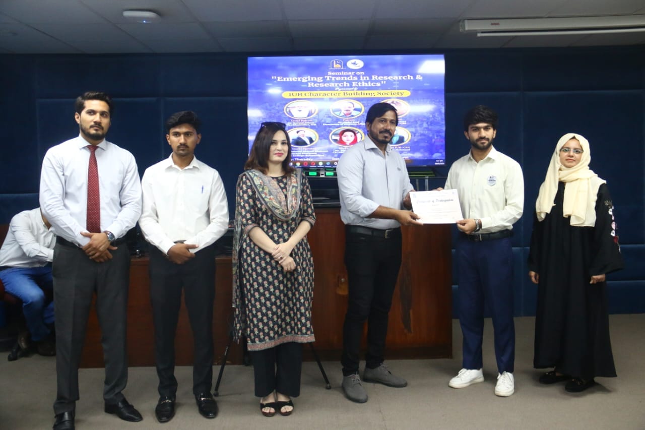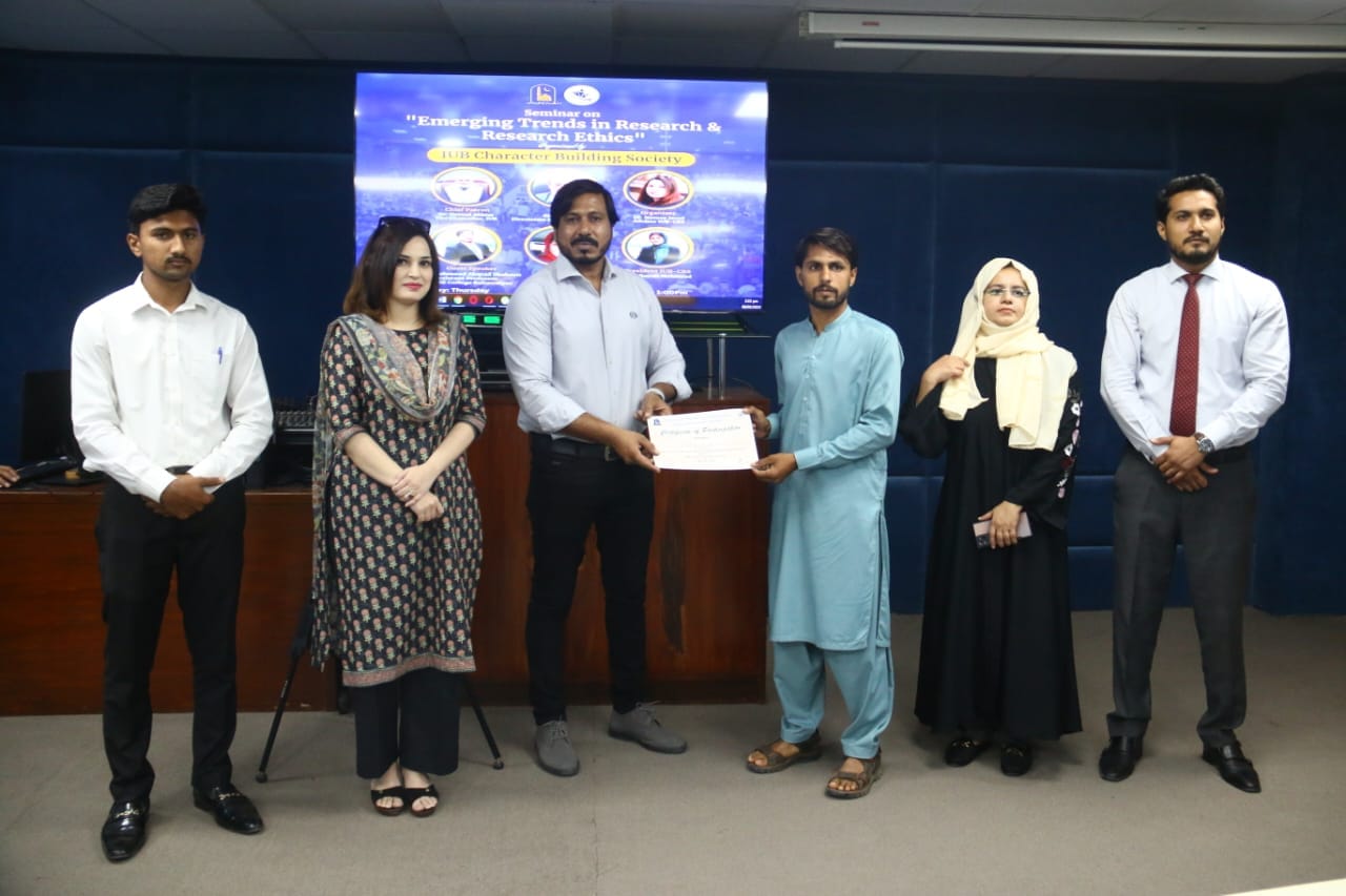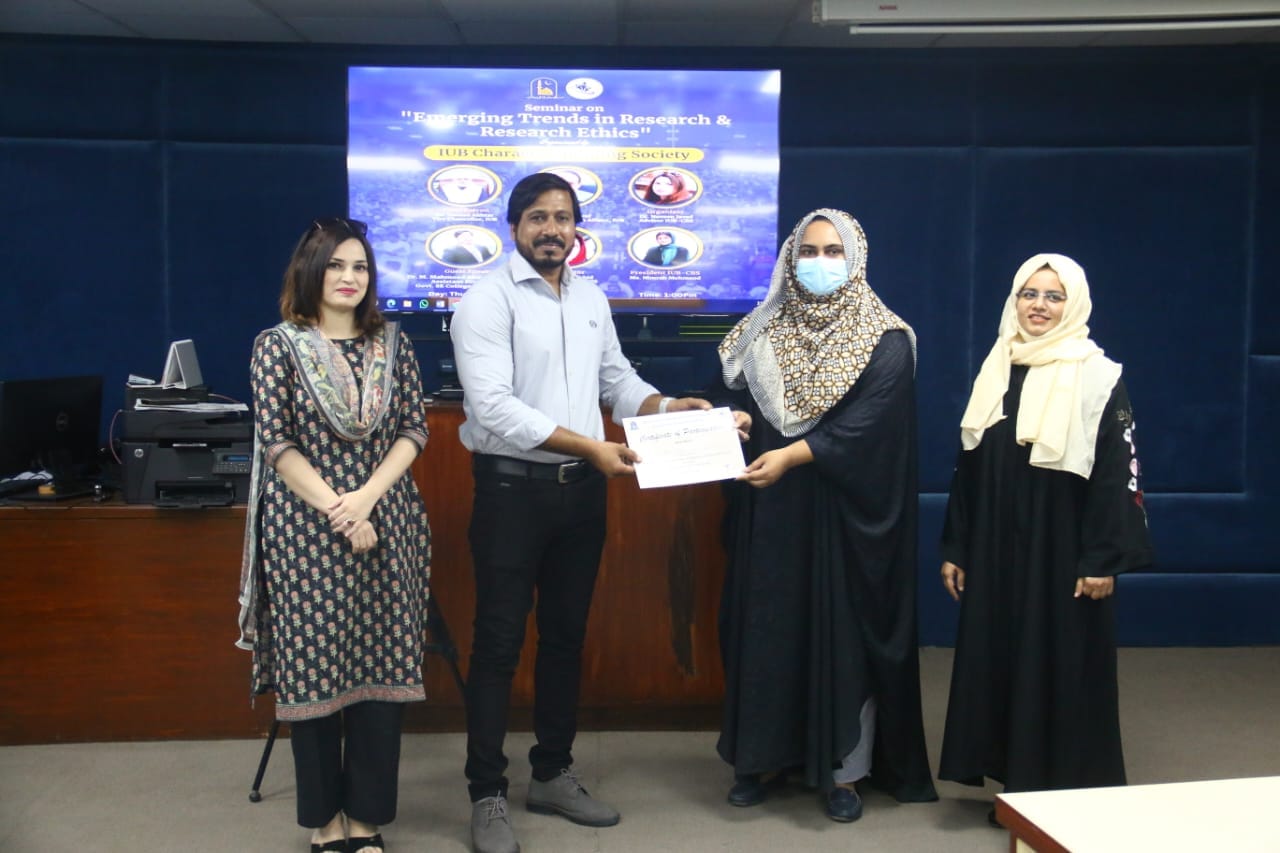 The IUB Character Building Society organized a seminar on Emerging Trends in Research and Research Ethics. The guest speaker was Dr Mahmood Shaheen. The whole session was loaded with fascinating ideas about literature, captivating and thought-provoking discussion on modern trends and interdisciplinary research. Overall the session was a great opportunity for learning and it concluded successfully.