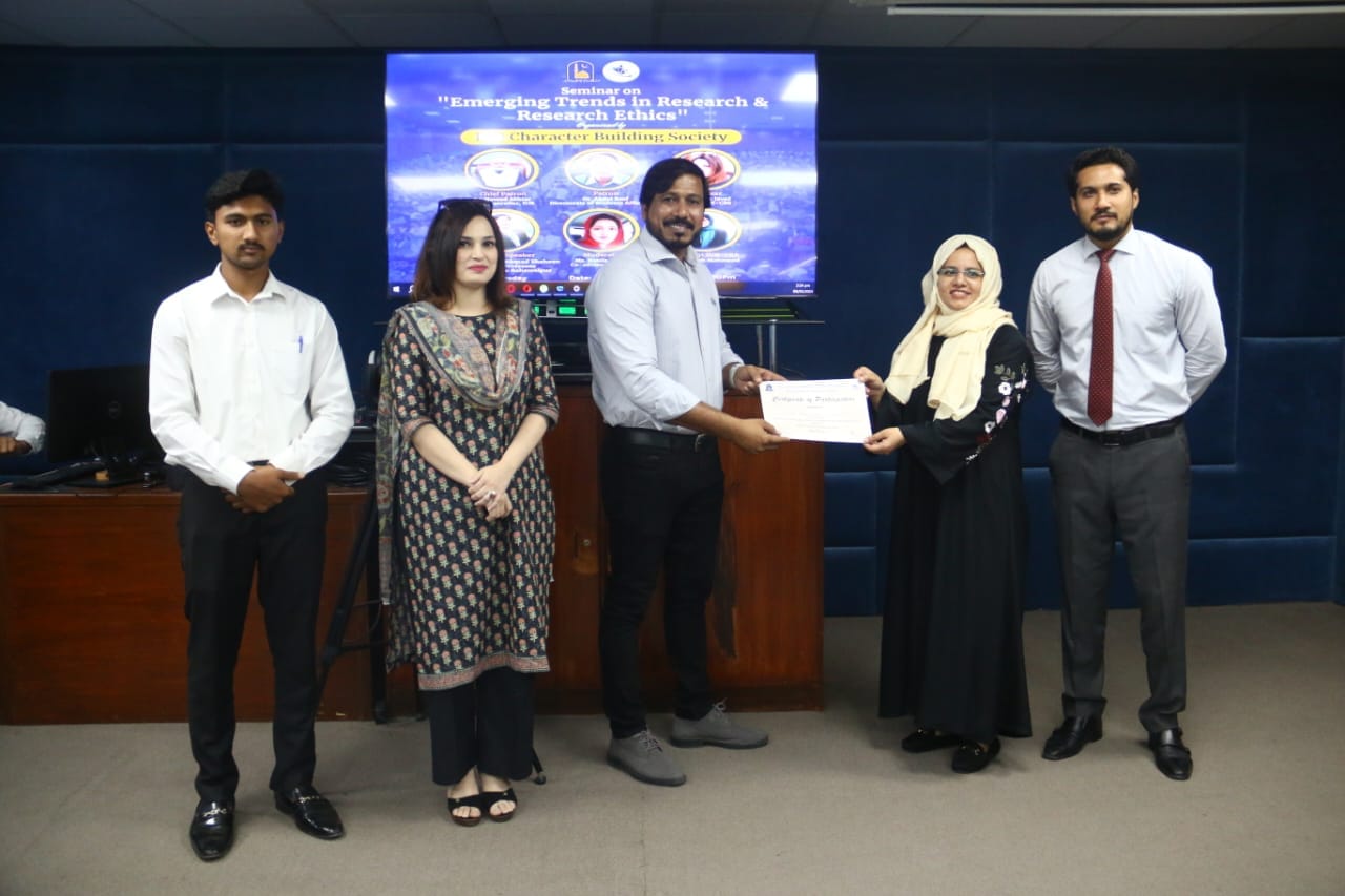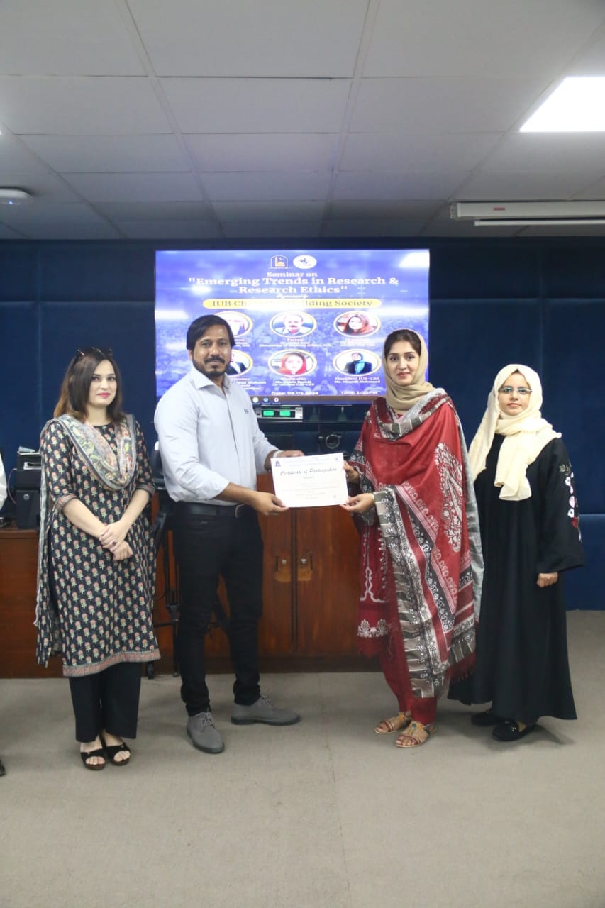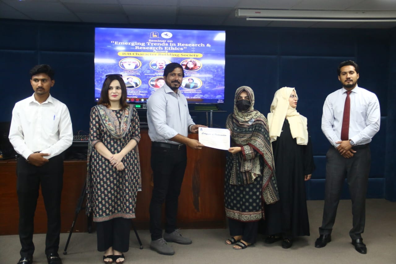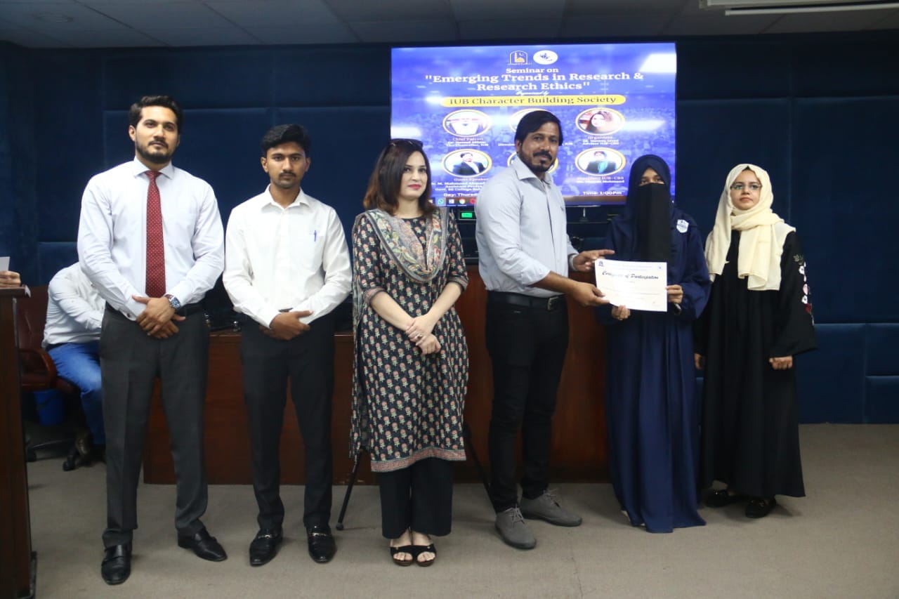 The IUB Character Building Society organized a seminar on Emerging Trends in Research and Research Ethics. The guest speaker was Dr Mahmood Shaheen. The whole session was loaded with fascinating ideas about literature, captivating and thought-provoking discussion on modern trends and interdisciplinary research. Overall the session was a great opportunity for learning and it concluded successfully.