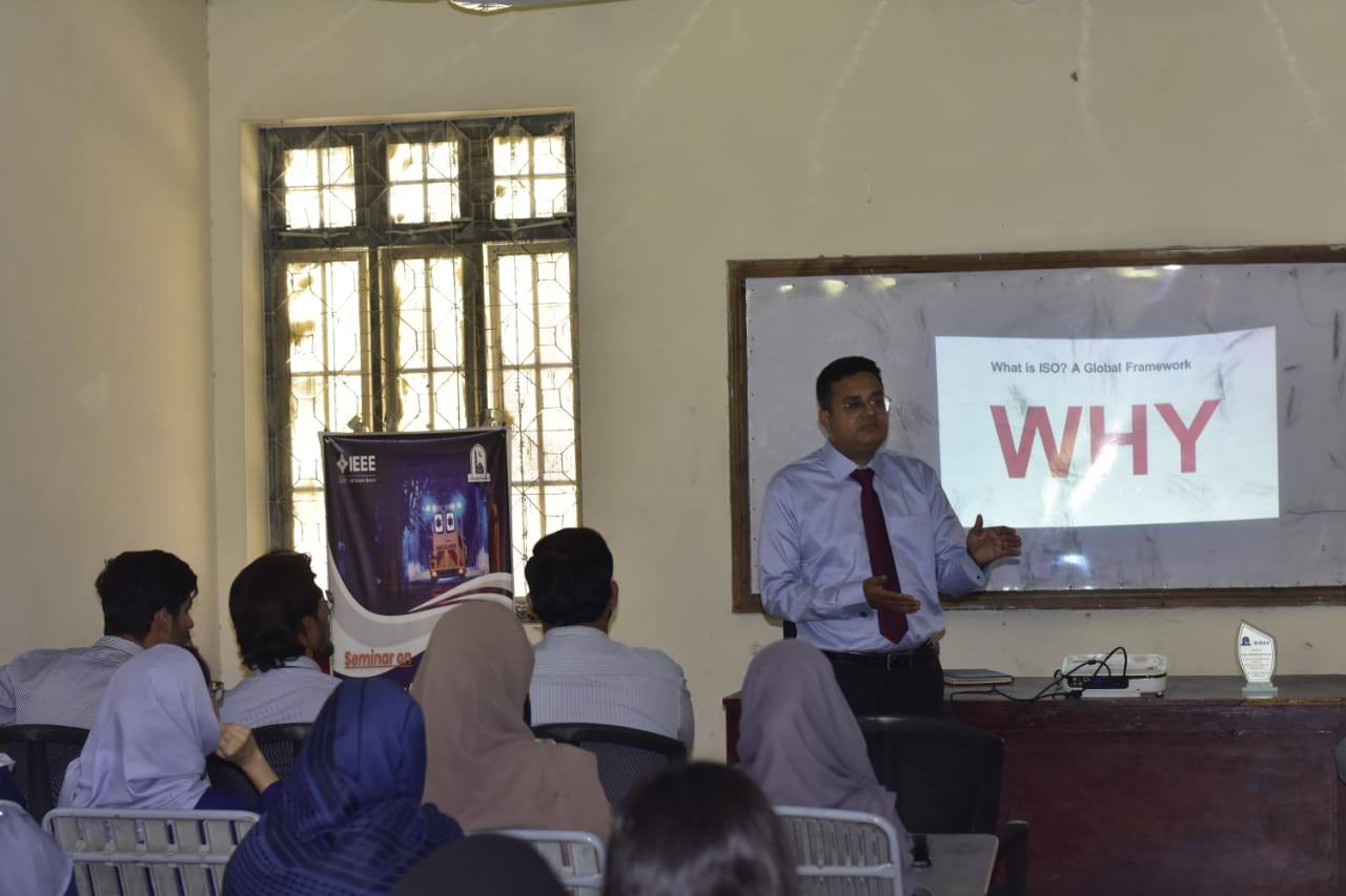 Bahawalpur, April 29, 2025 – In a significant initiative to promote workplace safety and occupational health awareness, the IEEE Student Branch of The Islamia University of Bahawalpur (IUB), in collaboration with the Quality Enhancement Cell (QEC), organized a specialized seminar on ISO 45001: Occupational Health & Safety Management System to mark the World Day for Safety and Health at Work.