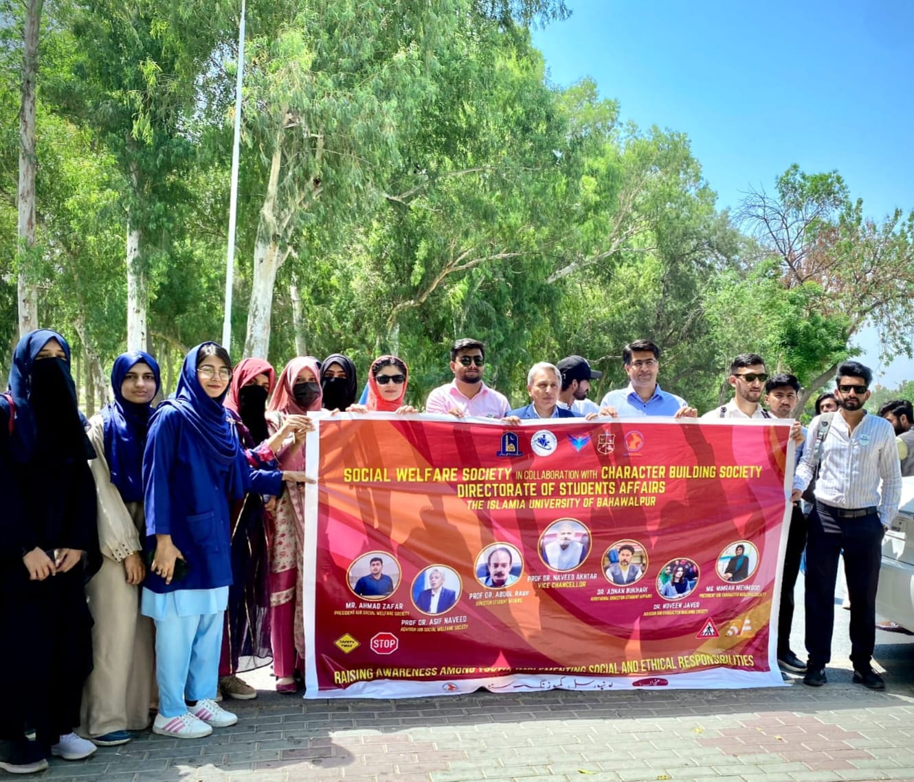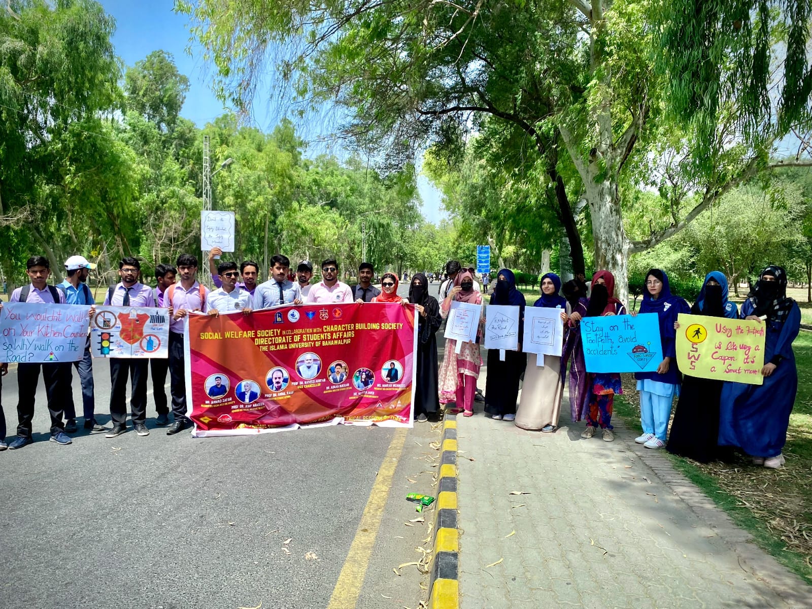 The IUB Social Welfare Society, in collaboration with the IUB Character Building Society, organized a walk to raise awareness among youth about implementing social and ethical rules. The aim was to educate students who use roads instead of footpaths, highlighting the increased risk of accidents.