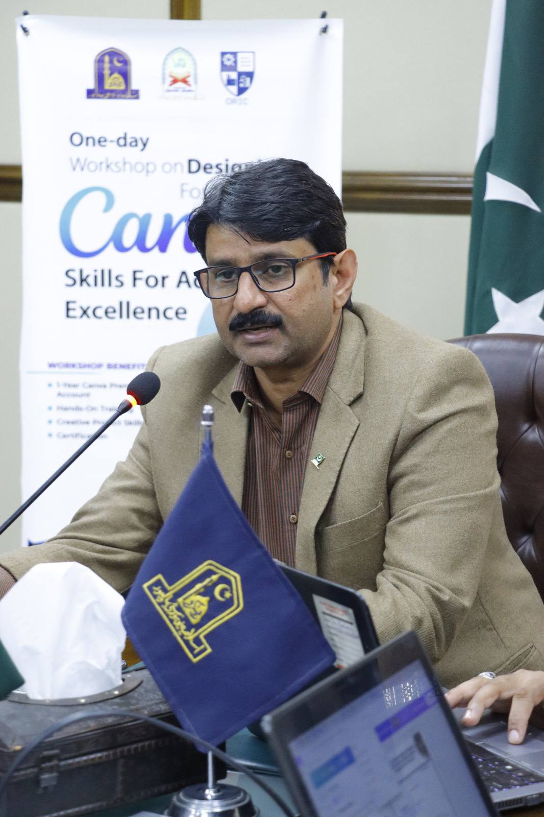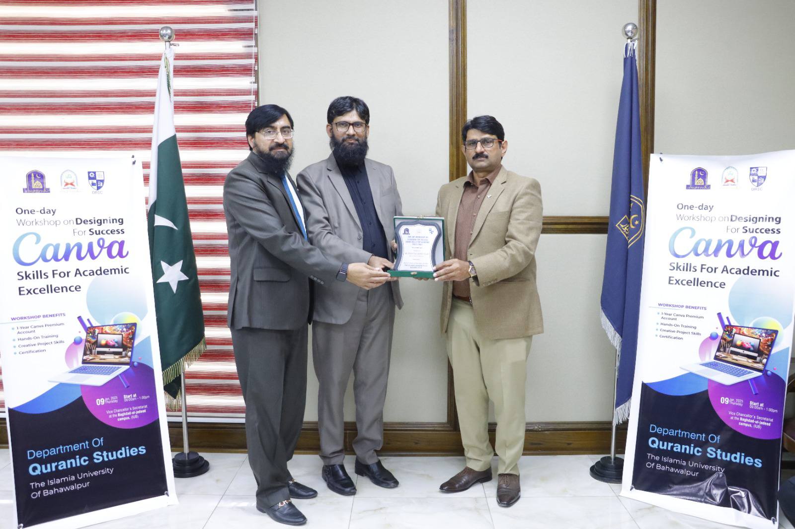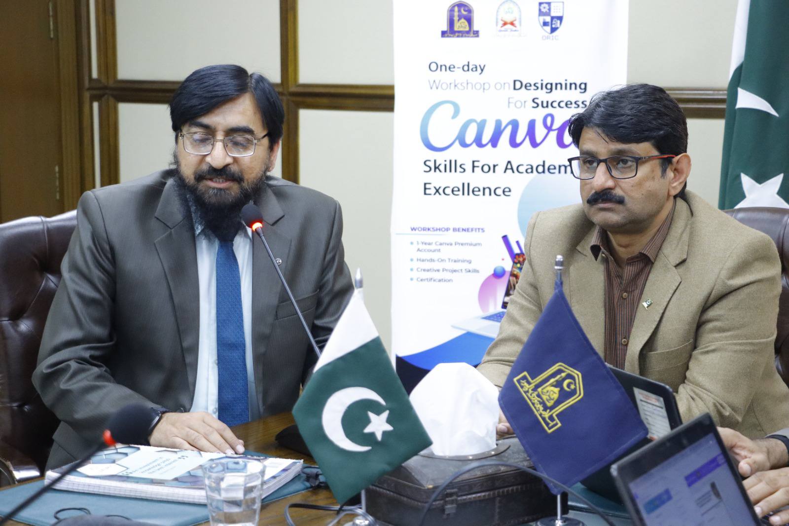 09 Jan 2025: The Department of Qur'ānic Studies, in collaboration with ORIC, organized an engaging one-day workshop on CANVA at the Conference Room, VC Secretariat, Baghdad ul Jaeed Campus. This workshop aimed to enhance participants' creative design skills for academic and professional purposes.
