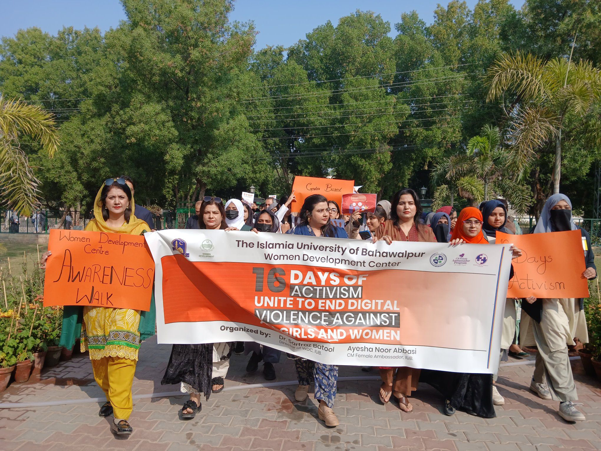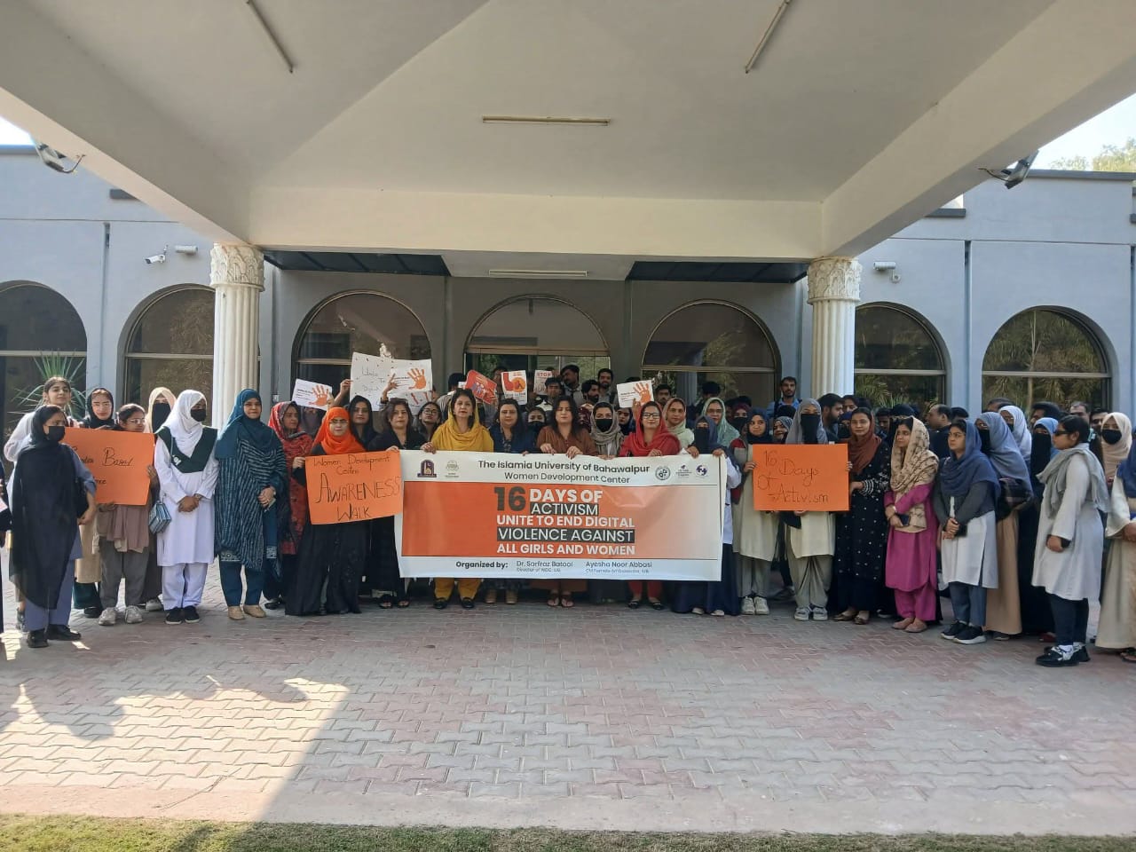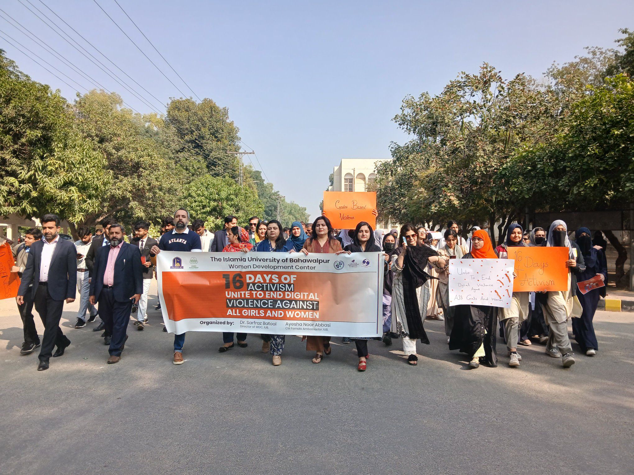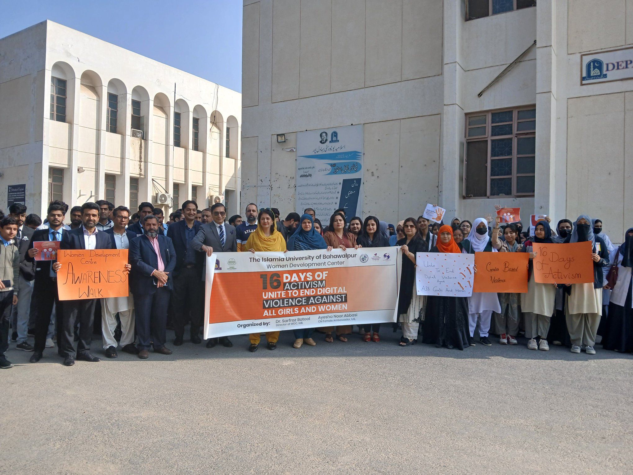 Women Development Center, IUB organized an impactful Awareness Walk on Gender-Based Violence (Unite to end digital violence against all girls and women), starting from Sir Sadiq Muhammad Khan Library and concluding at the Vice Chancellor Secretariat, Baghdad ul Jadeed Campus.