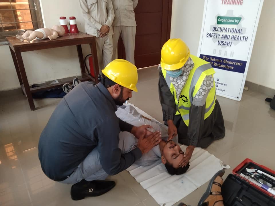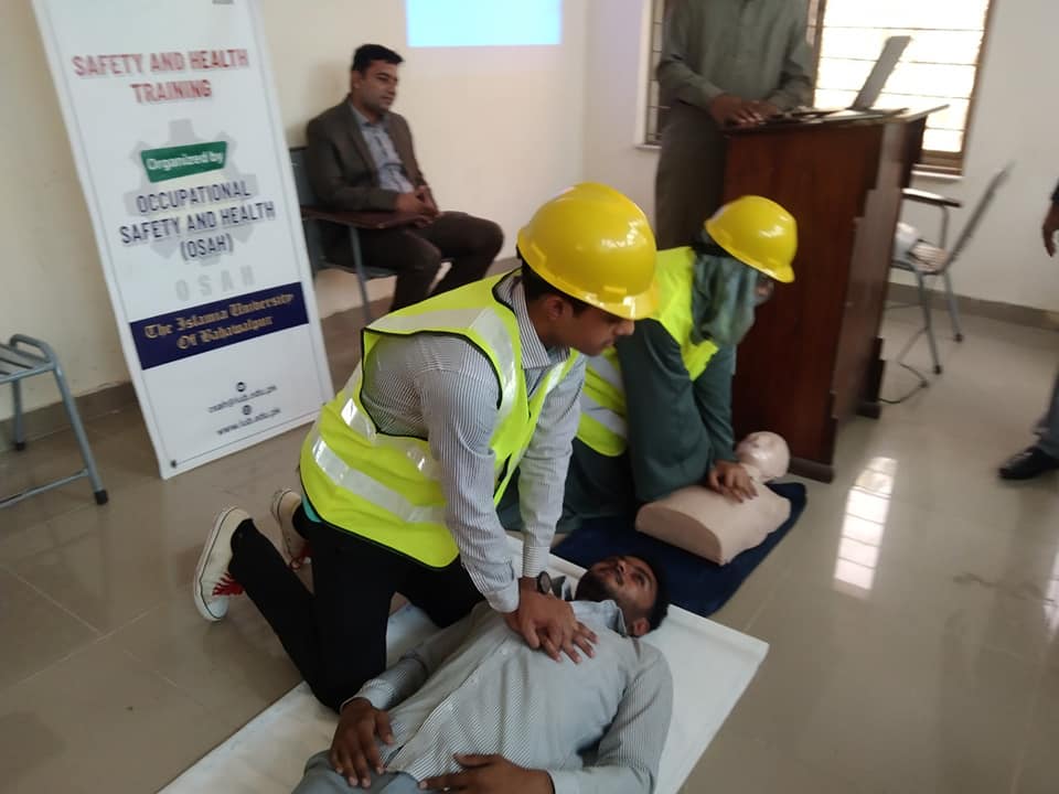 On The Direction of the Worthy Vice Chancellor, Eng. Prof. Dr. Athar Mehboob (T.I), The Islamia University of Bahawalpur. The Office of Occupational Safety and Health(OSAH) manager Dr. Muhammad Ibrahim has Organized Basic Life support (BLS) Training Sessions for the undergraduate 1st Semester students of the ''University College of Arts and Design''.