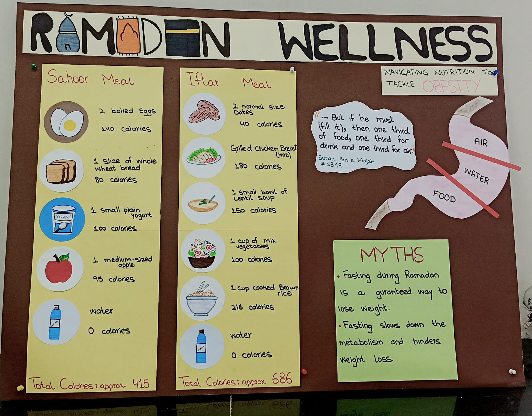 The Department of Human Nutrition and Dietetics, in collaboration with The Nutrition Side and Holistic Nutrition, organized the "Ramadan Nutrition Poster Competition". This event saw active participation from students across various semesters within Department of Human Nutrition and Dietetics.