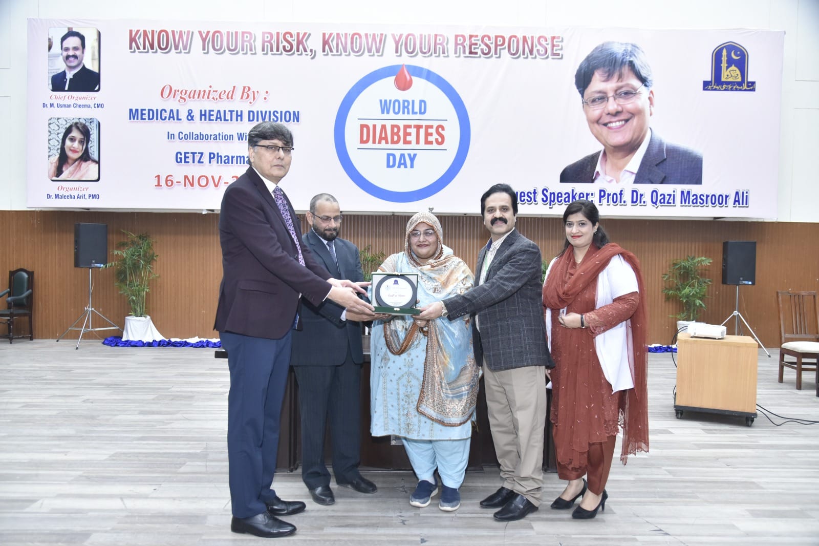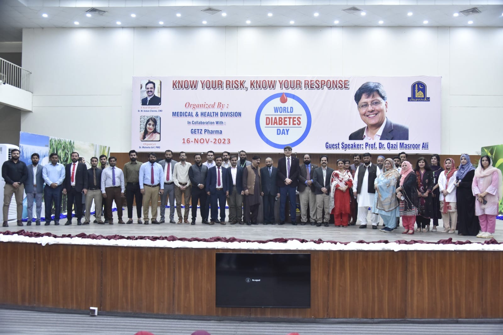 IUB Medical and Health Division organized an awareness seminar regarding World Diabetes Day. The guest speaker was Prof. Dr. Qazi Masroor Ali and the focal person of the program was Dr. Muhammad Usman Cheema Chief Medical Officer of the IUB while the guest of honor was CEO District Health Authority Bahawalpur Dr. Syed Tanveer Hussain Shah. This seminar was held on November 16, 2023