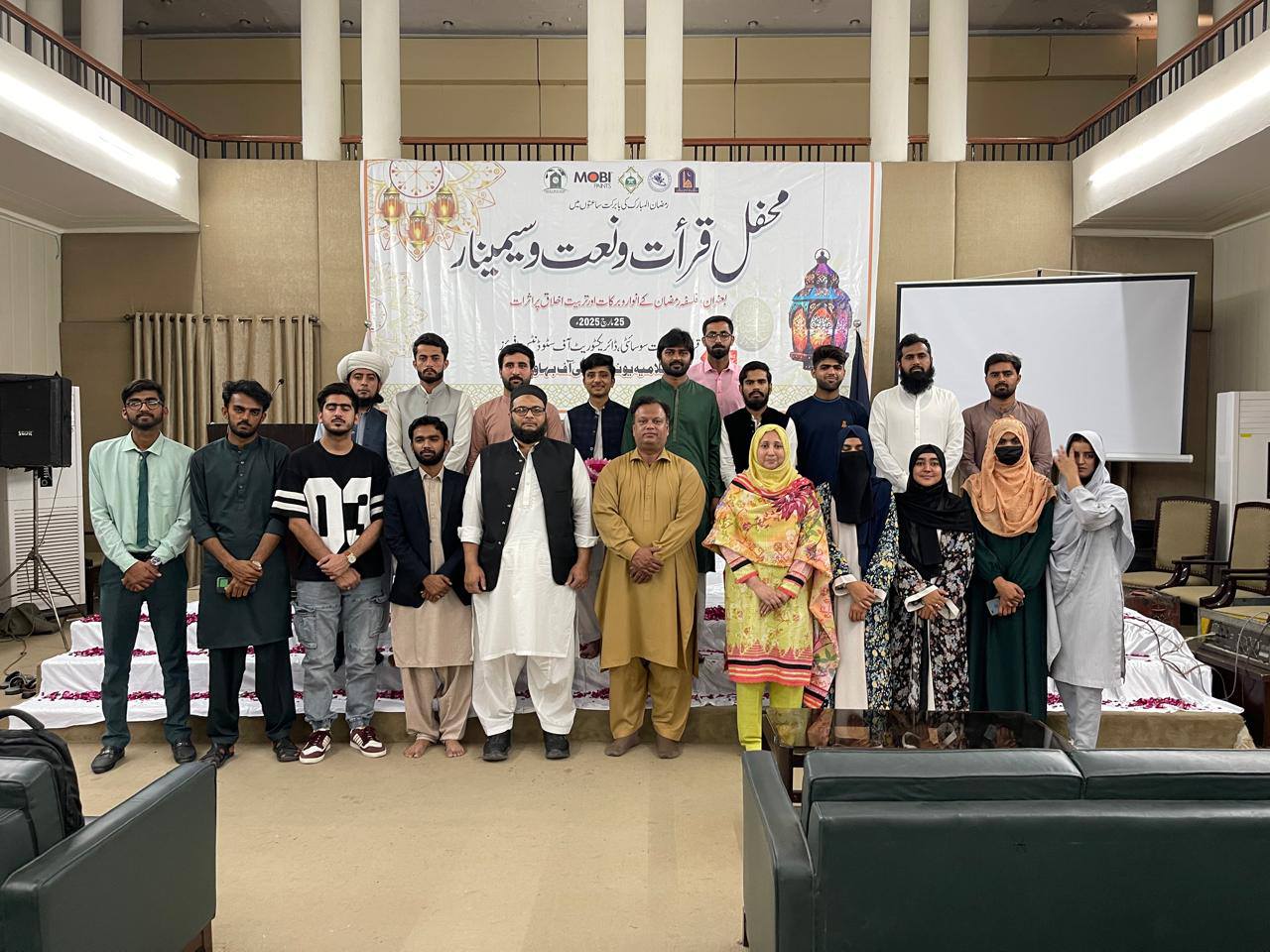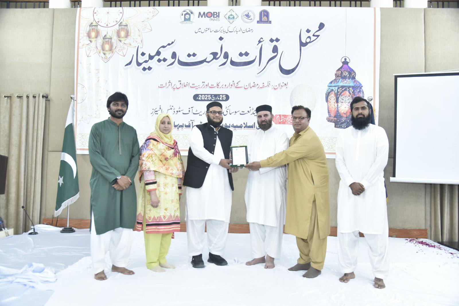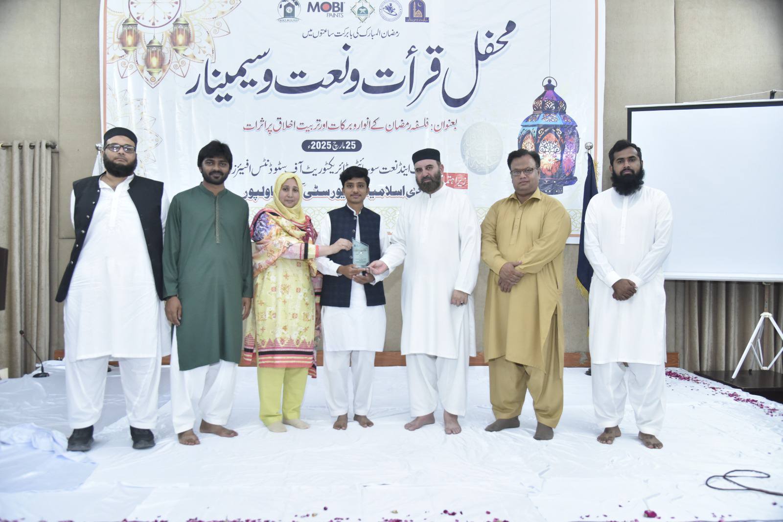 25 March 2025: IUB Qiraat and Naat Society organized the grand mehfil Qiraat & Naat and Seminar at Ghulam Muhammad Gothvi Hall, Abbasia Campus, on the occasion of the Holy Blessed Ramadan. The guest speaker was Syed Zeeshan Akhtar, Chairman of the Al-Khidmat Foundation in South Punjab.