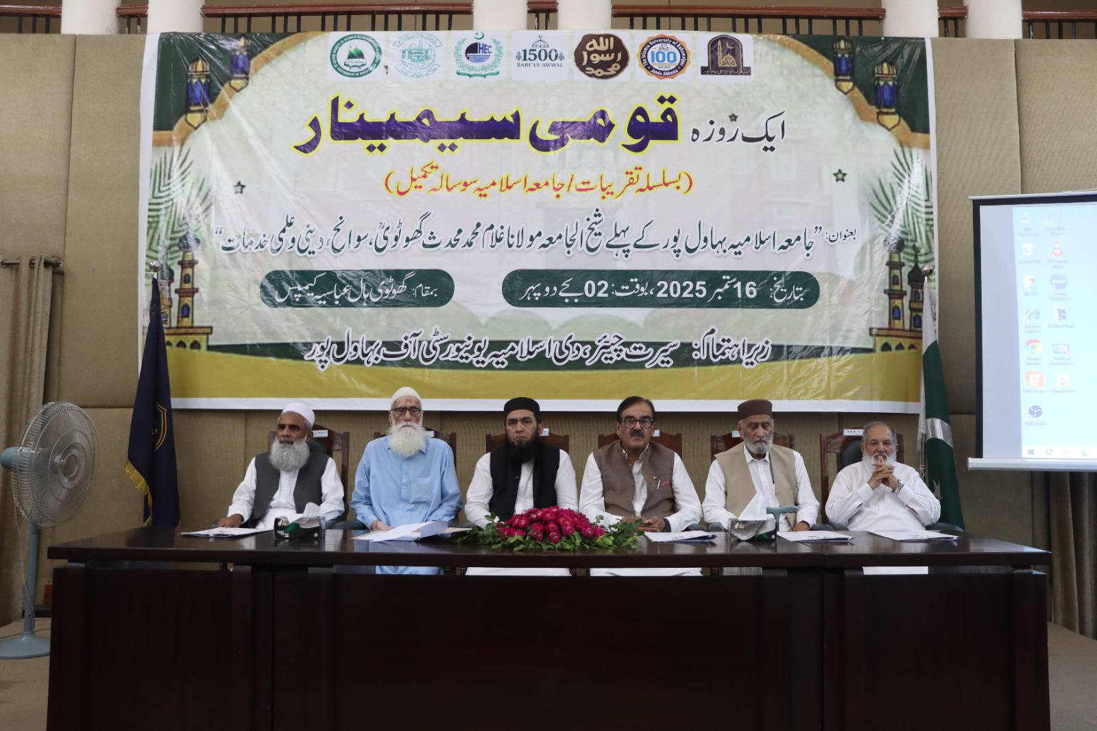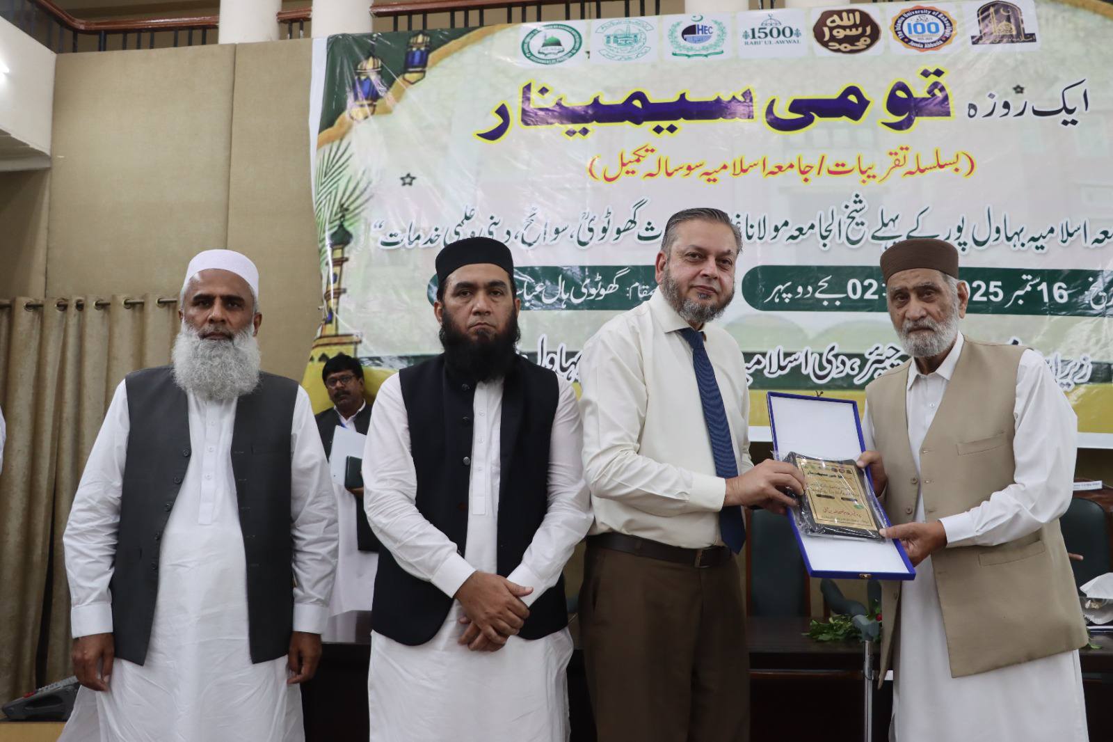 16 September 2025: In connection with the 100th anniversary celebrations of Islamia University of Bahawalpur, a special seminar was organised by the Seerat Chair to pay tribute to the first Sheikh-ul-Jamiah Hazrat Maulana Ghulam Muhammad Ghotvi at Ghulam Muhammad Ghotvi Hall, Abbasia Campus.