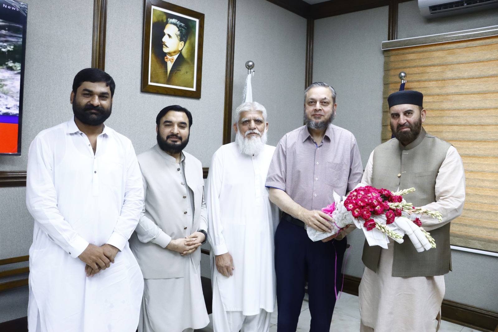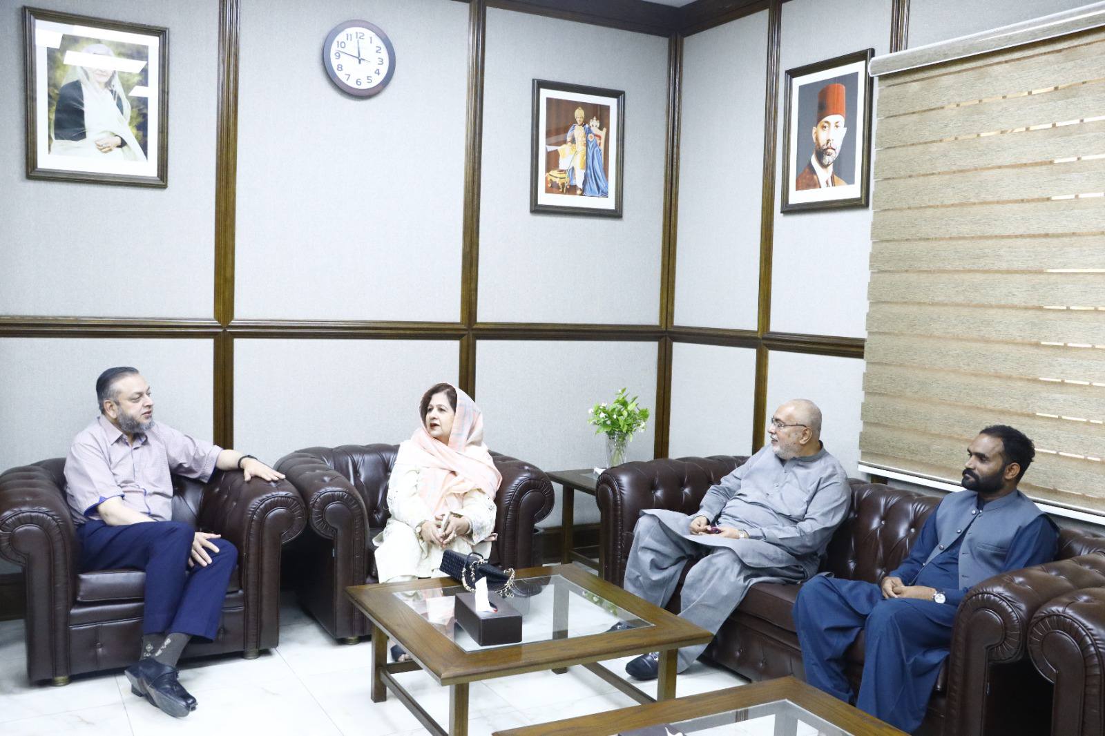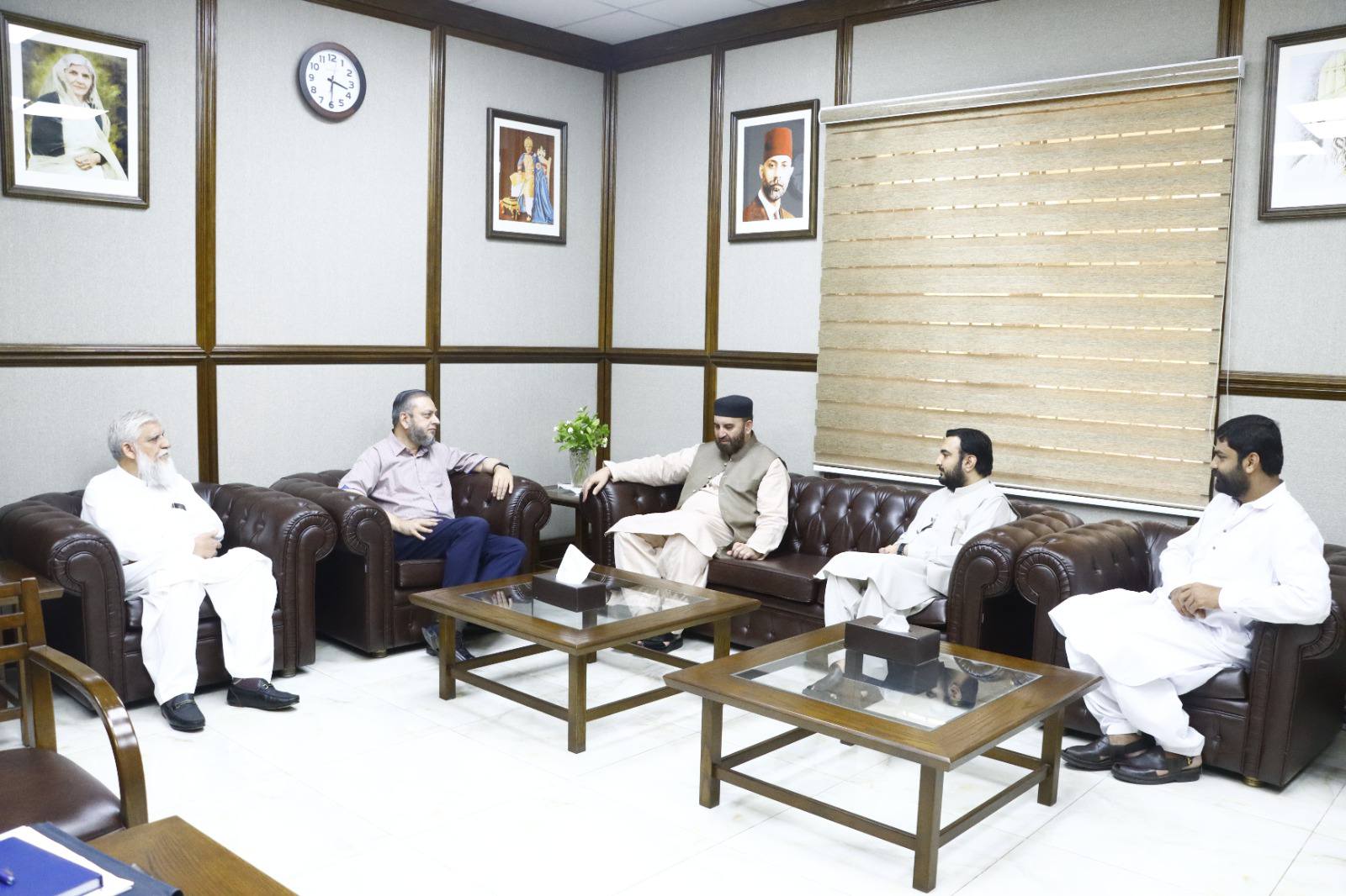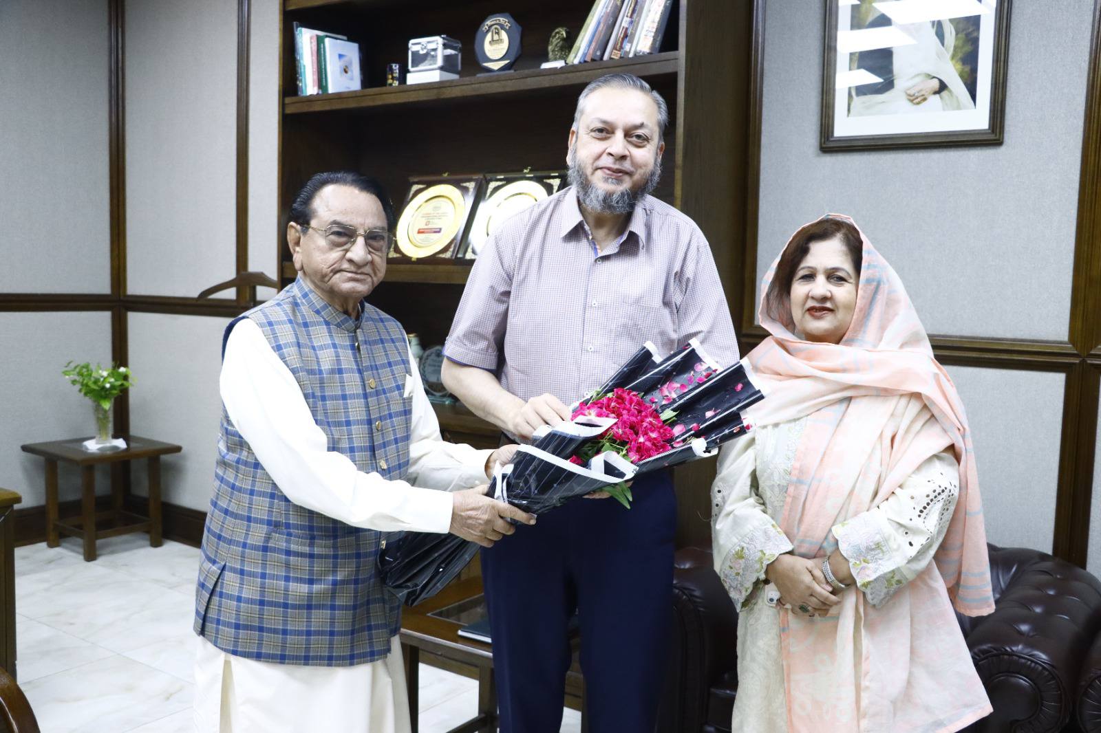 Dignitaries including veteran parliamentarian and literary personality Syed Tabish Alwari, Ms Fozia Ayub Qureshi former member of provincial assembly, Mehmood Majeed industrialist, Syed Zeeshan Akhtar and alumni Masood Sabir, Saeed Ahmad Editor Haqiqat Magazine, Syed Tanseer Tirmizi, FBR, Numan Farooqi and Raja Shafqat Mehmood called on VC Prof. Dr. Muhammad Kamran.