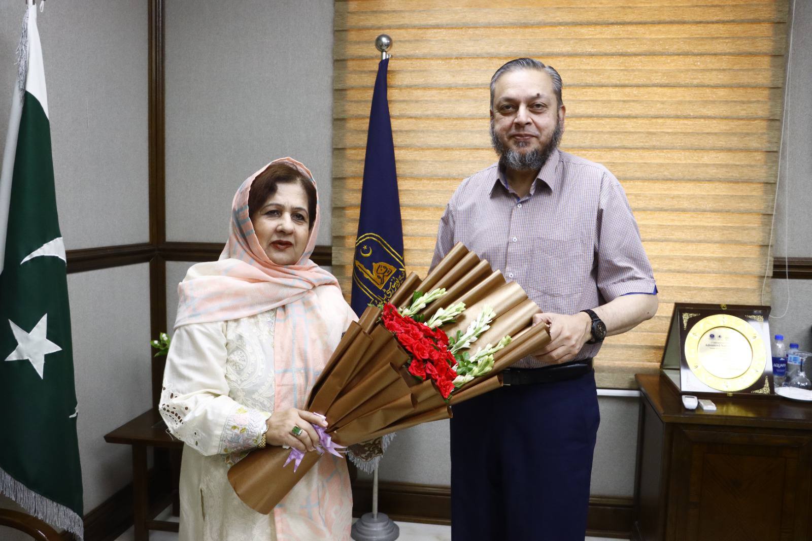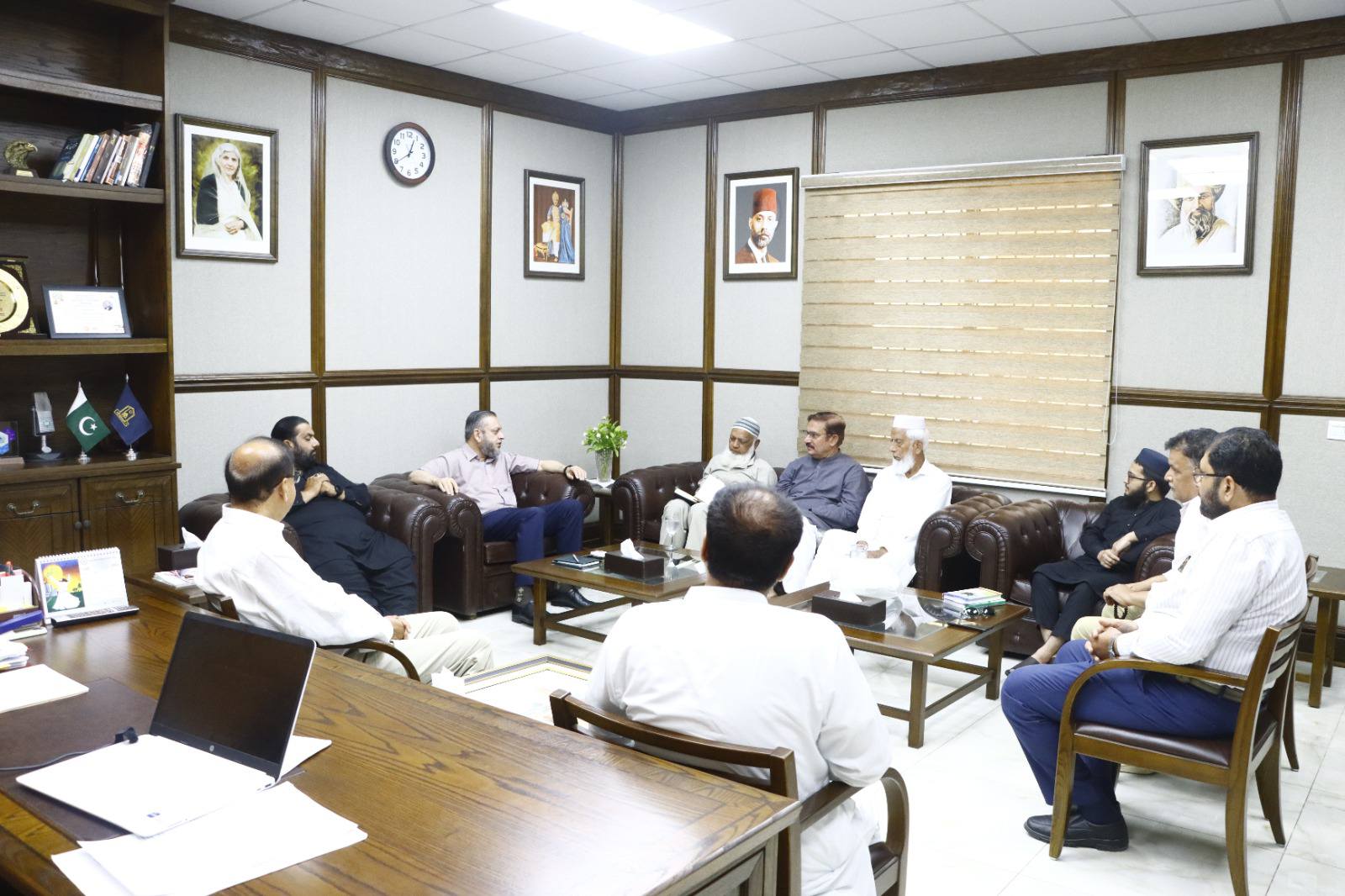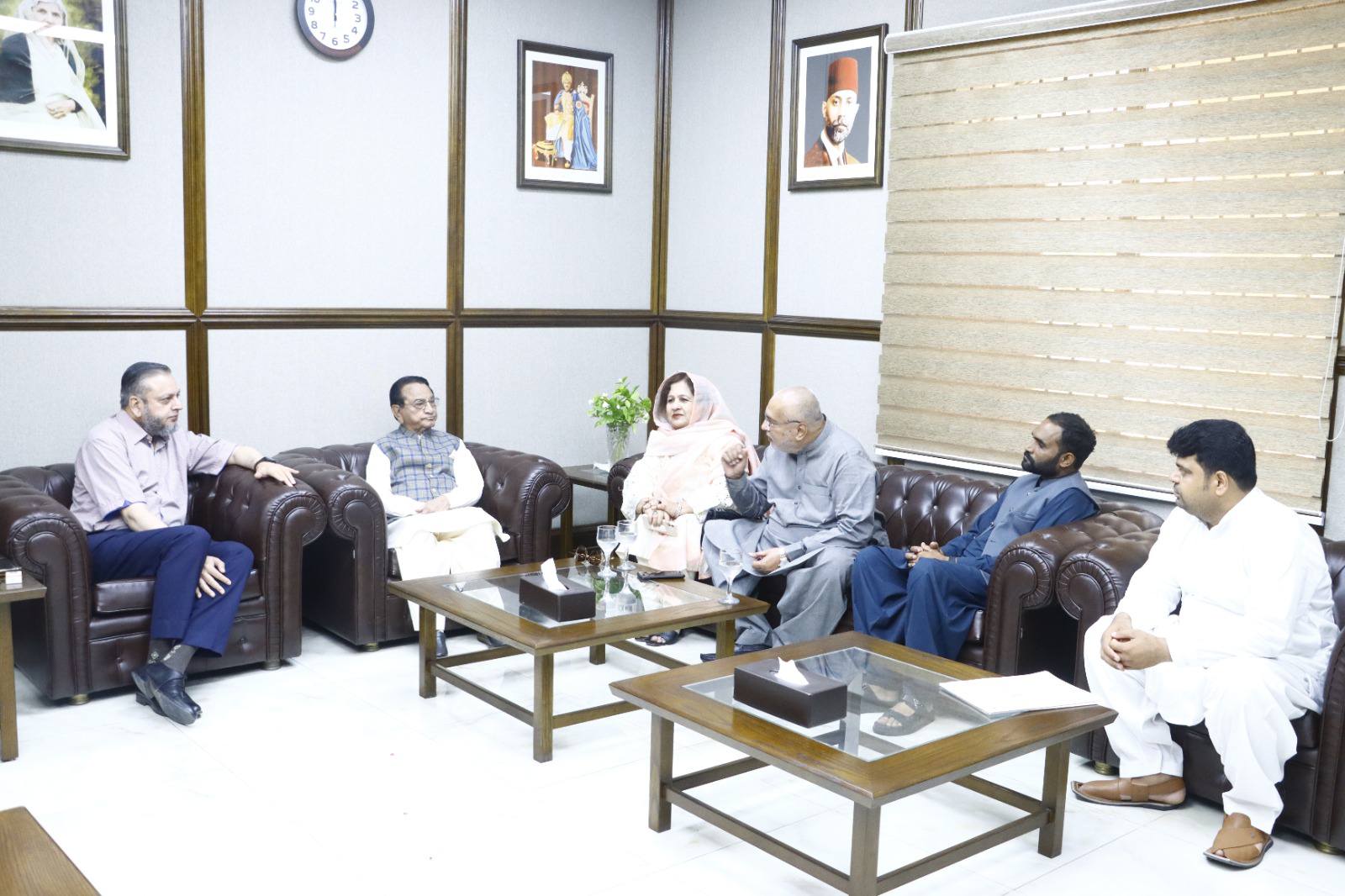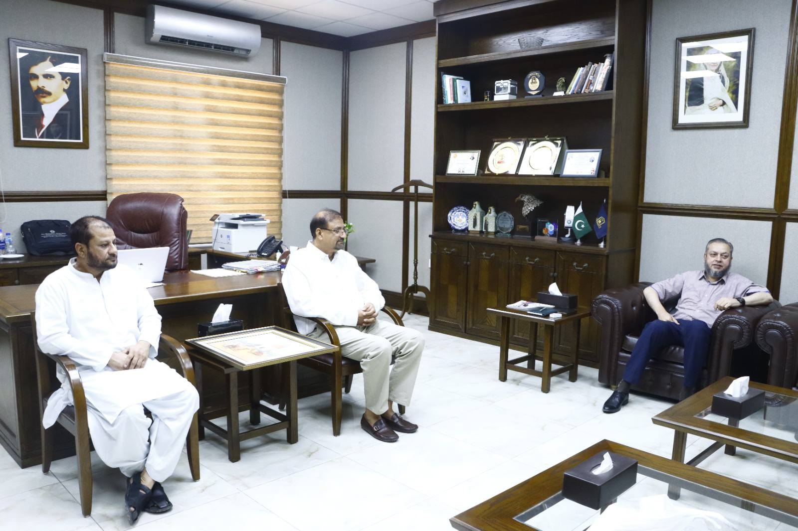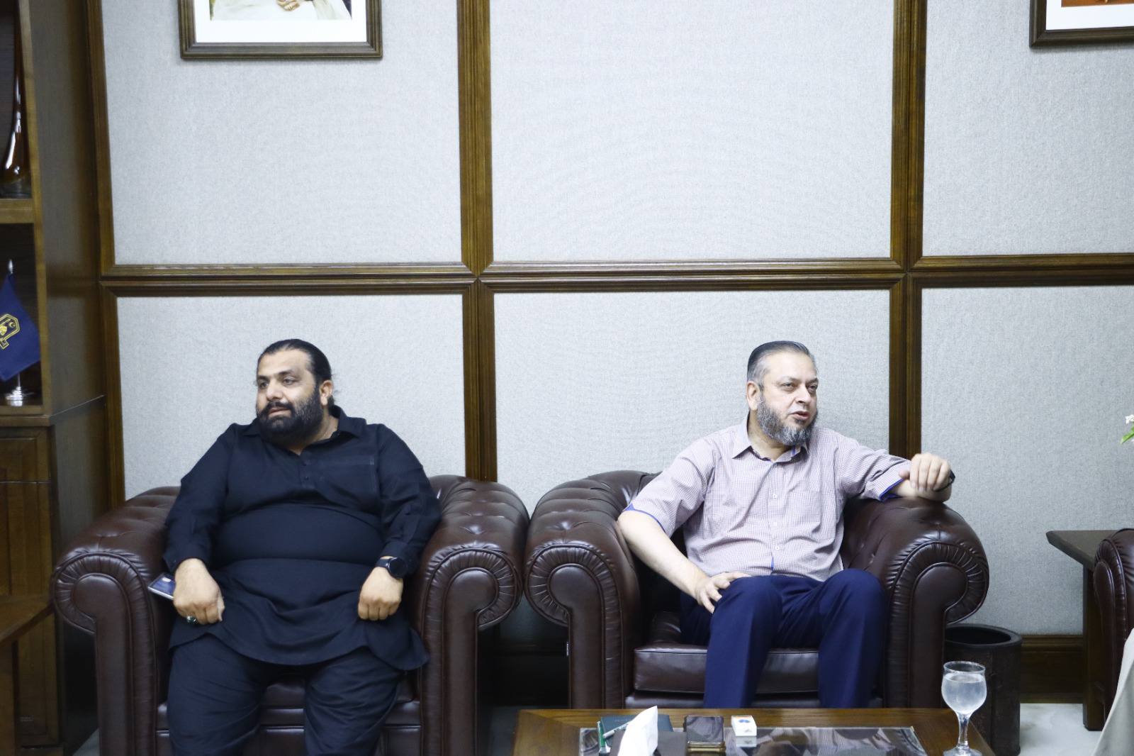 Dignitaries including veteran parliamentarian and literary personality Syed Tabish Alwari, Ms Fozia Ayub Qureshi former member of provincial assembly, Mehmood Majeed industrialist, Syed Zeeshan Akhtar and alumni Masood Sabir, Saeed Ahmad Editor Haqiqat Magazine, Syed Tanseer Tirmizi, FBR, Numan Farooqi and Raja Shafqat Mehmood called on VC Prof. Dr. Muhammad Kamran.