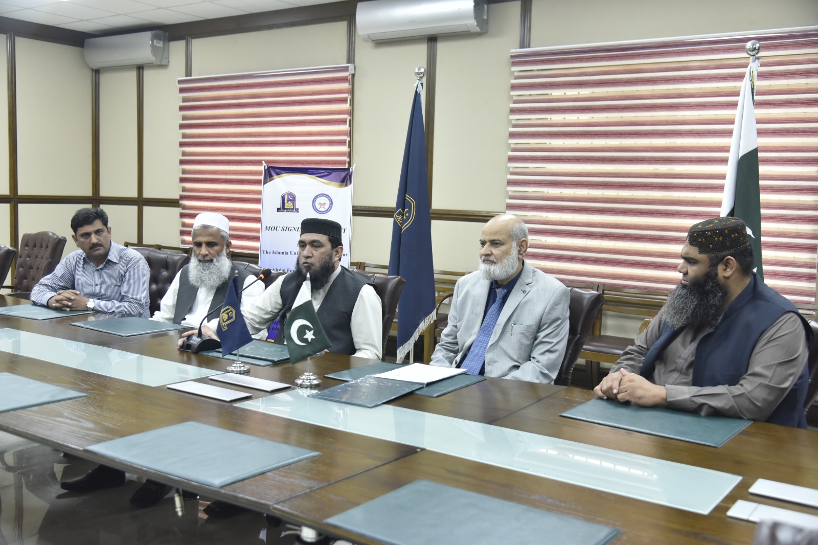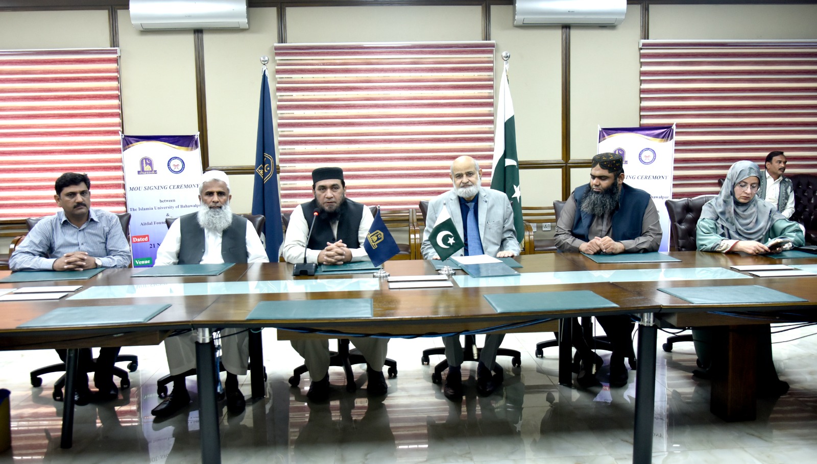 MoU Signing Ceremony between the Islamia University of Bahawalpur and Aitedal Foundation Lodhran held at Vice Chancellor's Secretariat, Baghdad-ul-Jadeed Campus, IUB. The MoU was signed on November 21, 2023.