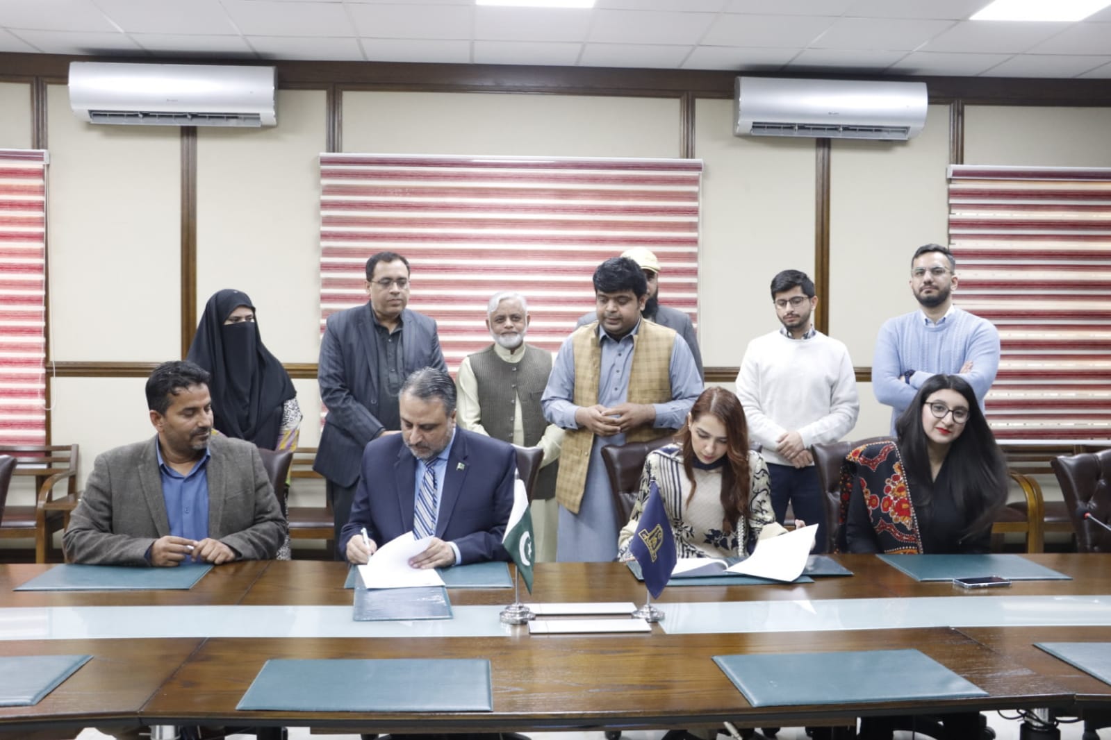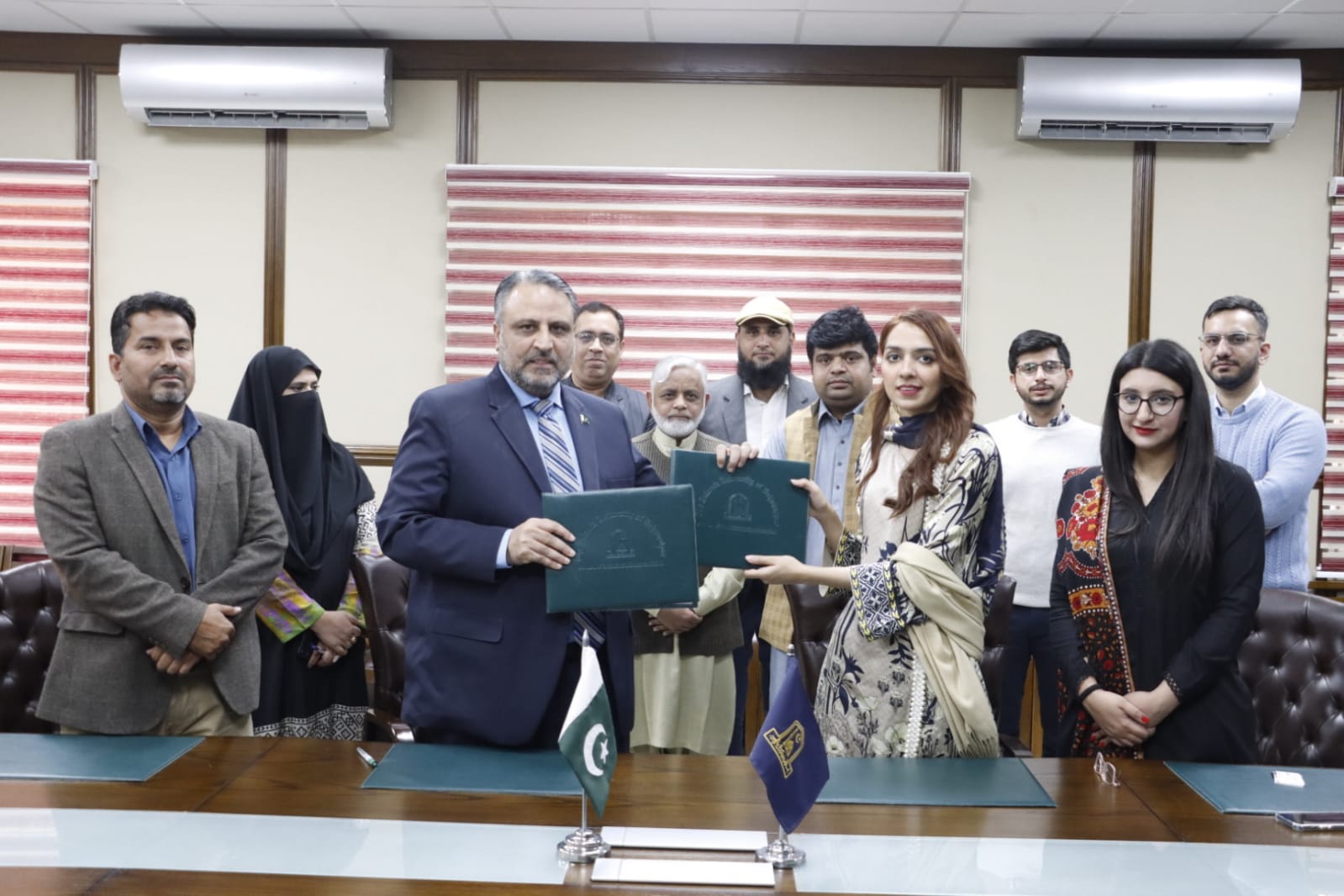 The MoU signing ceremony between the Islamia University of Bahawalpur Cogent Labs Lahore held at Vice Chancellor's Secretariat, Baghdad-ul-Jadeed Campus, IUB. Engr. Prof. Dr. Athar Mahboob, Vice Chancellor IUB and Ms. Haleema Saeed from Cogent Labs signed on agreement while Mr. Shahid Afzal Durrani, Director CC&PC, IUB and Ms. Areej H.R. Generalist, Cogent Labs were also present on the occasion.