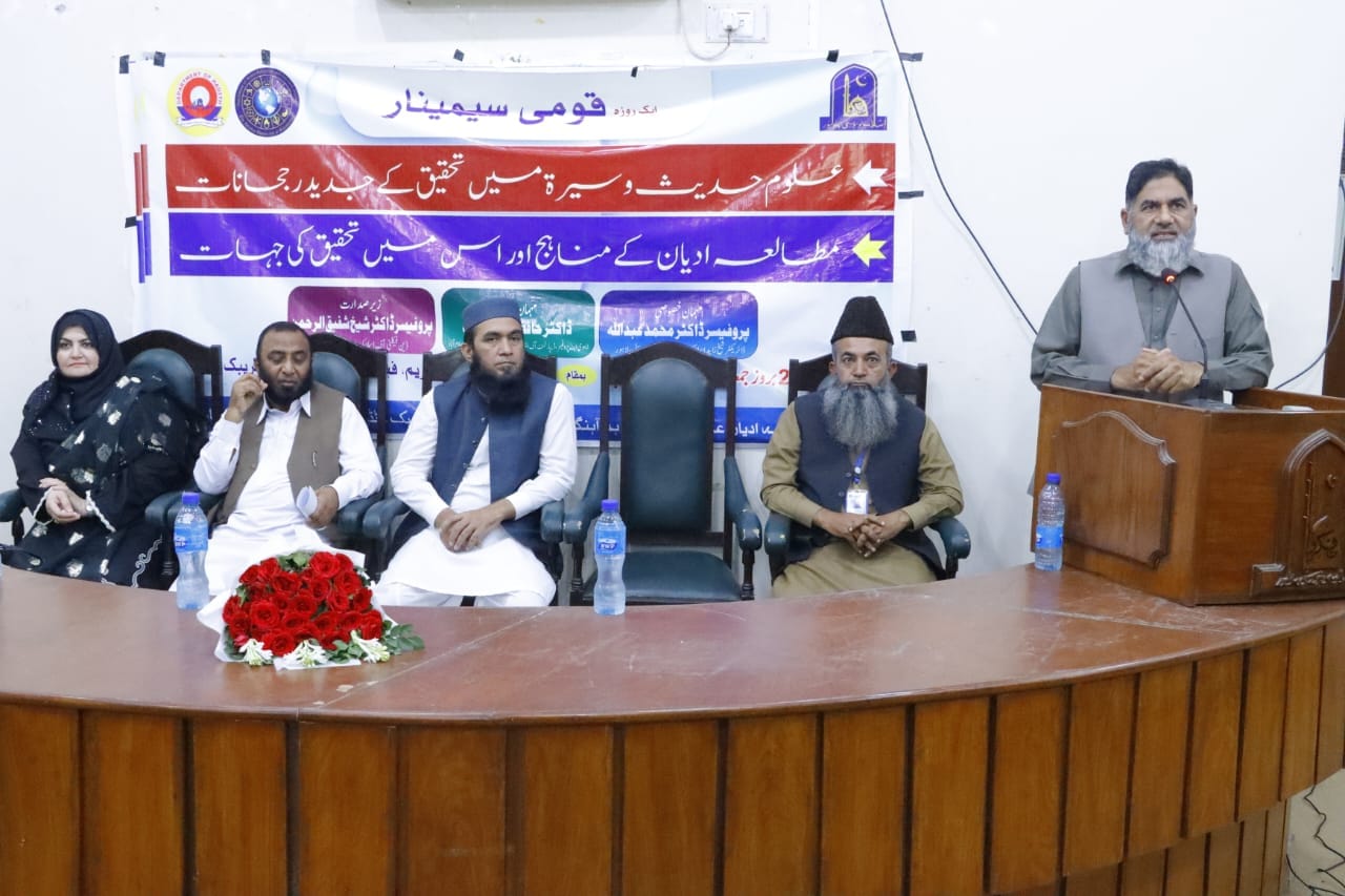 A one-day national seminar was organized at Syed Suleman Nadvi Auditorium, Islamia University of Bahawalpur on Friday, November 1, 2024 at 11:00 AM with the main objective of modern research methods related to the study of Hadith, Sirat and other religions besides Islam.
