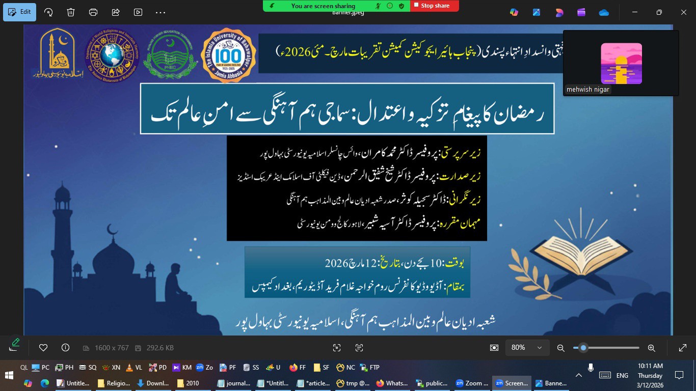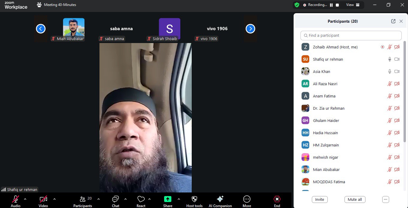 A national webinar titled “Ramadan’s Message of Purification and Moderation: From Social Harmony to World Peace” was held on March 12, 2026 at the Audio Video Conference Room, Khwaja Ghulam Farid Auditorium, Baghdad ul Jadeed Campus, in connection with the “National Unity and Countering Extremism (Punjab Higher Education Events March-May 2026)” organized by the Punjab Higher Education Commission.