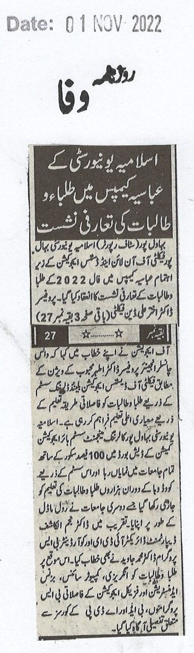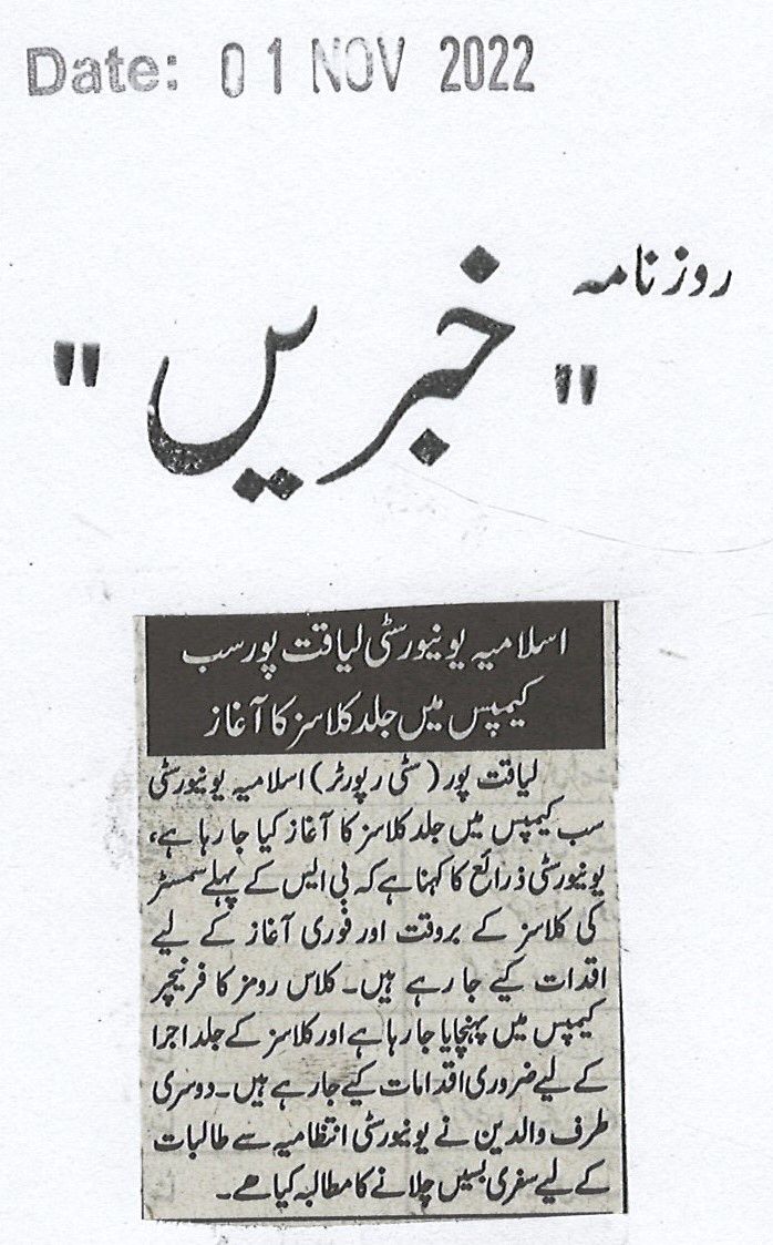 The Islamia University of Bahawalpur was established in the year 1975 by upgrading historical institute of the Jamia Abbasia.
