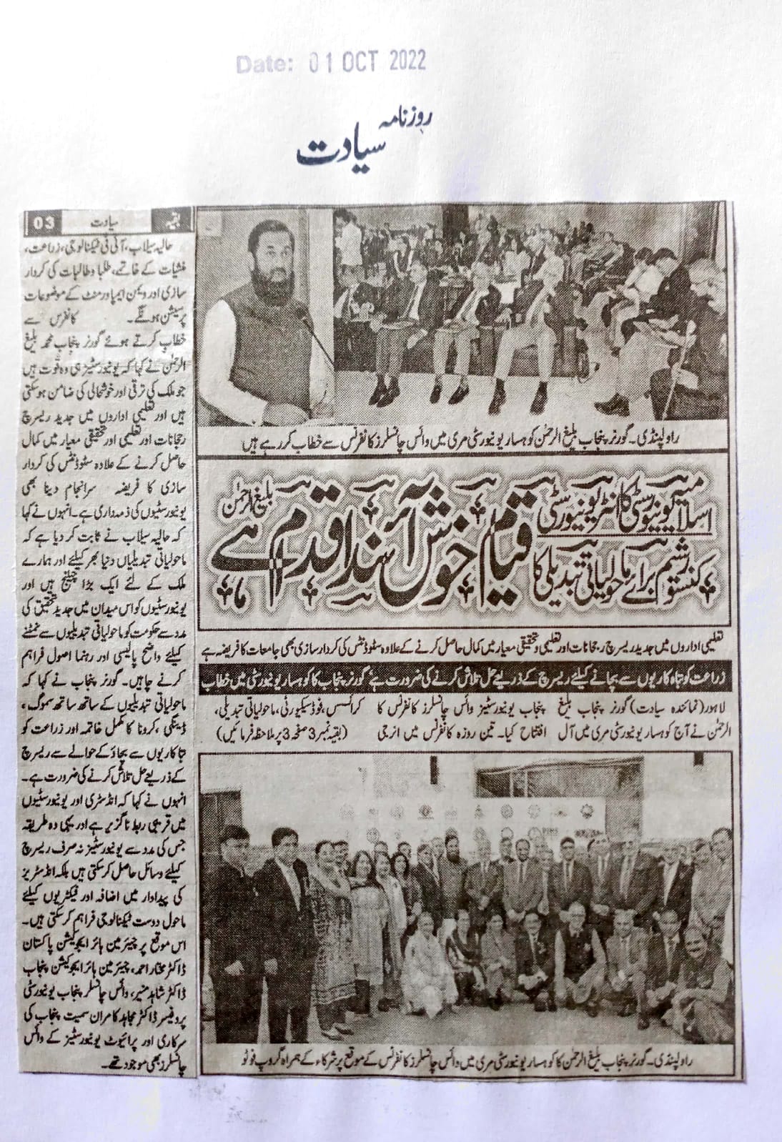The Islamia University of Bahawalpur was established in the year 1975 by upgrading historical institute of the Jamia Abbasia.