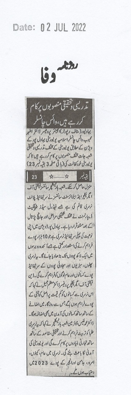 The Islamia University of Bahawalpur was established in the year 1975 by upgrading historical institute of the Jamia Abbasia.