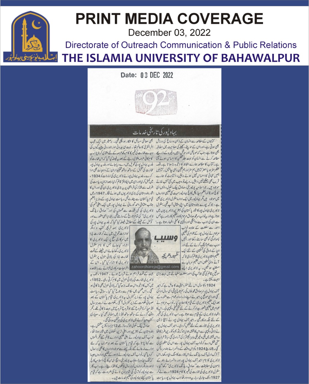 News Cutting 03 December 2022