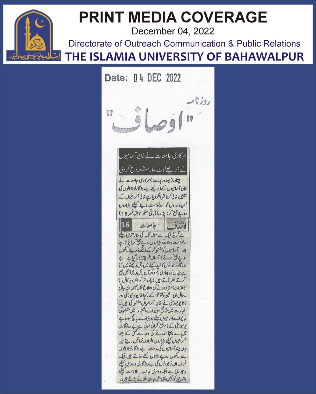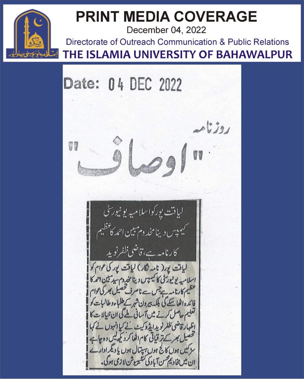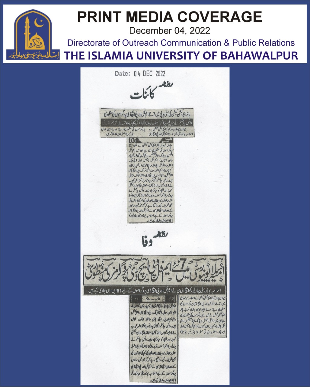News Cutting 04 December 2022