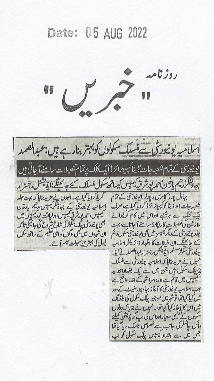 The Islamia University of Bahawalpur was established in the year 1975 by upgrading historical institute of the Jamia Abbasia.