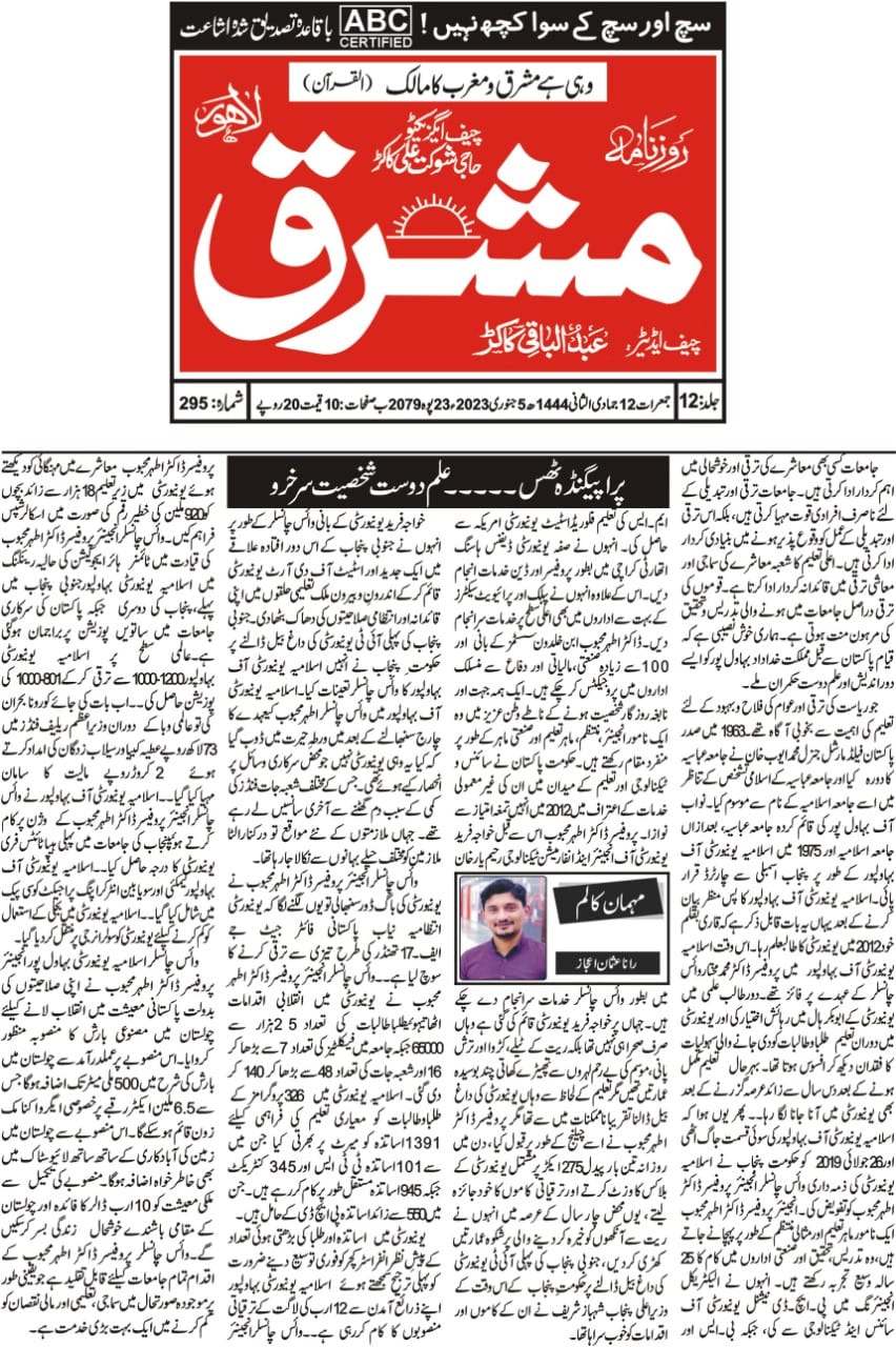 The Islamia University of Bahawalpur was established in the year 1975 by upgrading historical institute of the Jamia Abbasia.