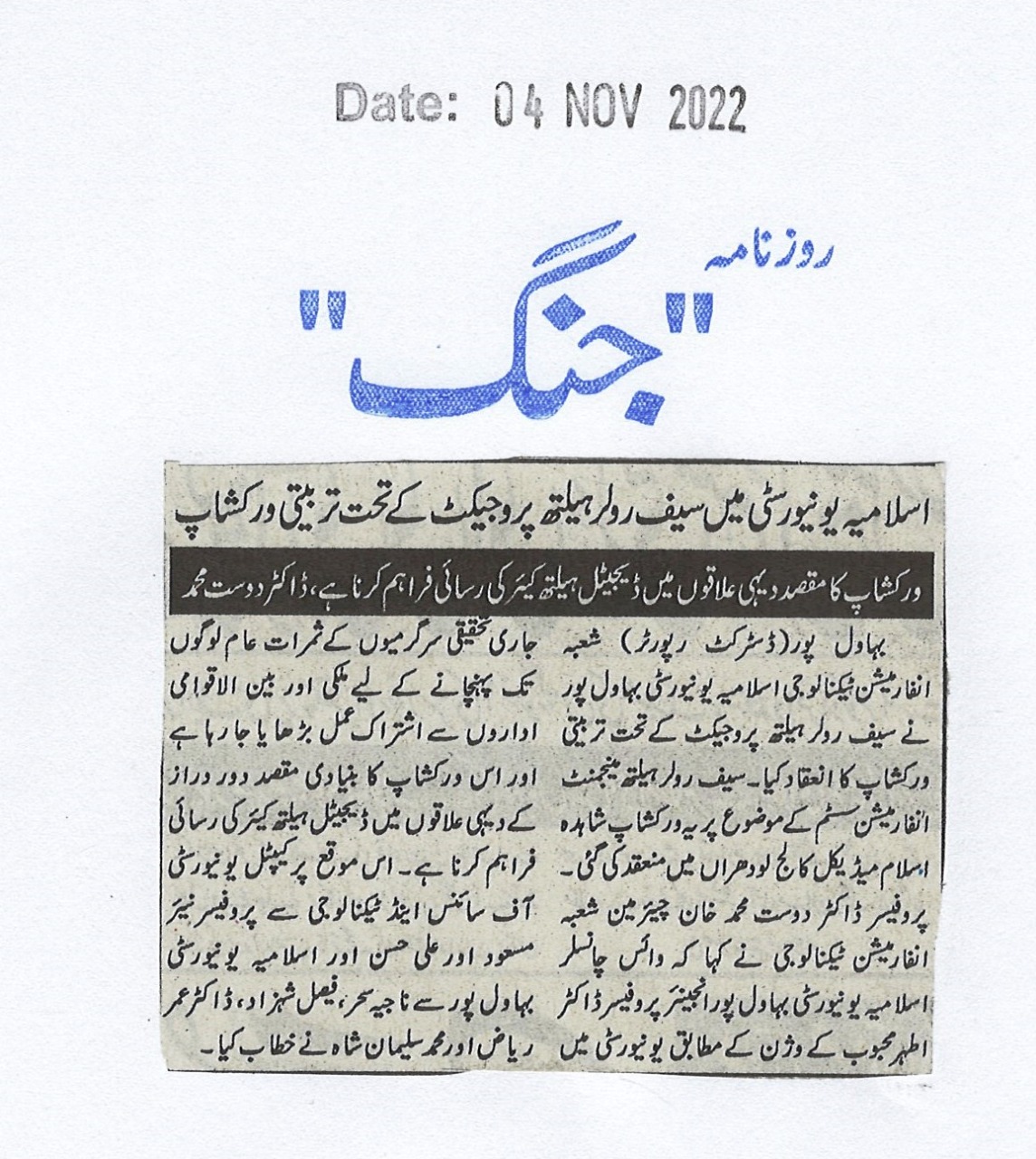 News Cutting 05 November 2022