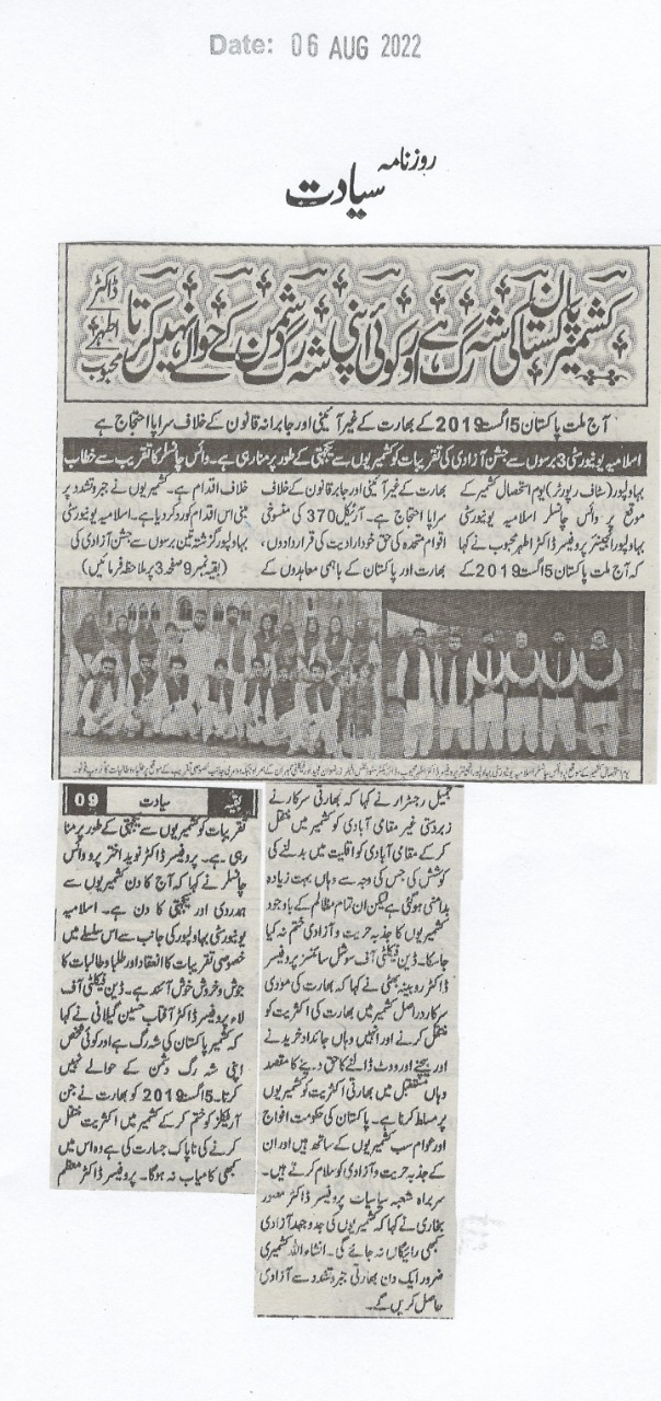 The Islamia University of Bahawalpur was established in the year 1975 by upgrading historical institute of the Jamia Abbasia.