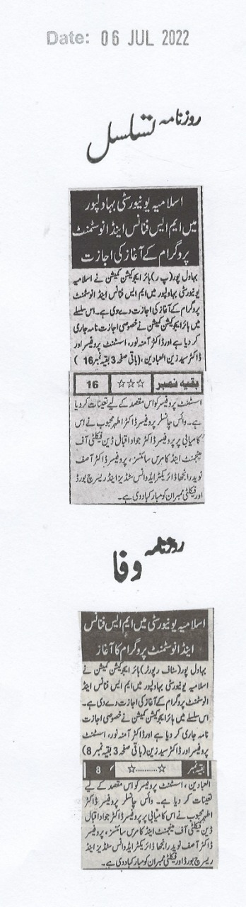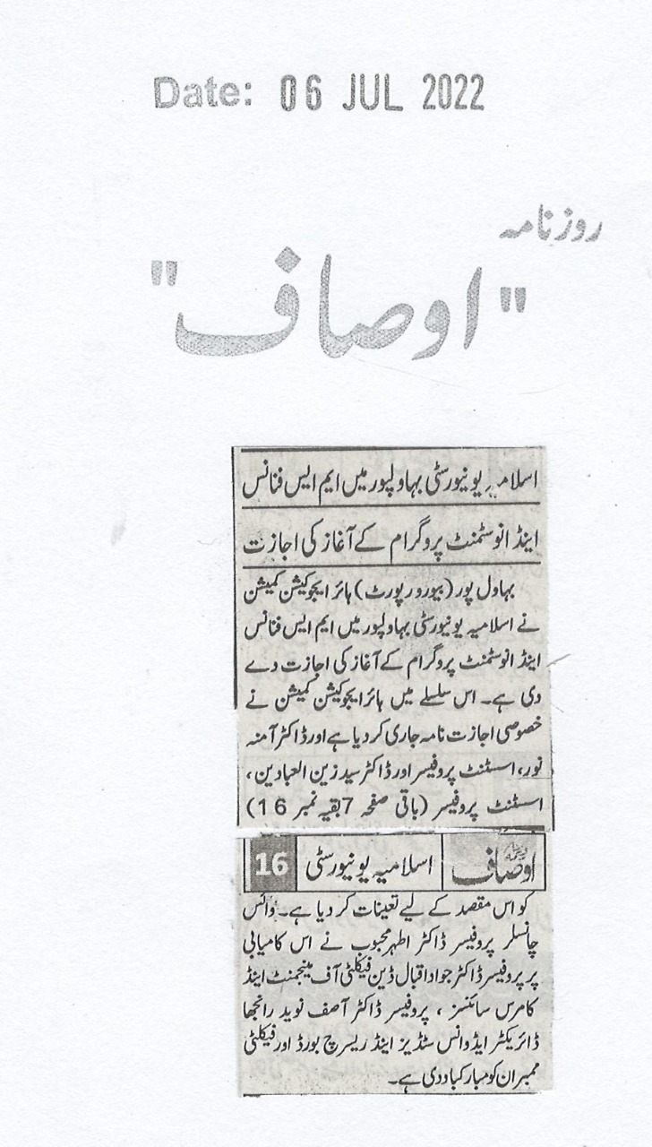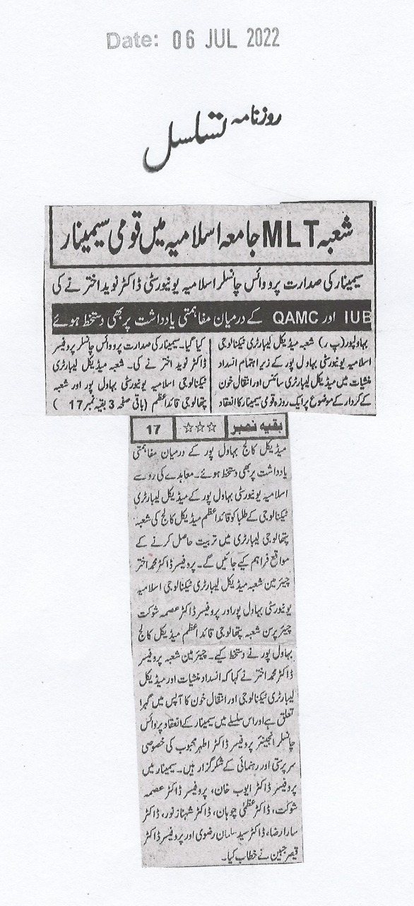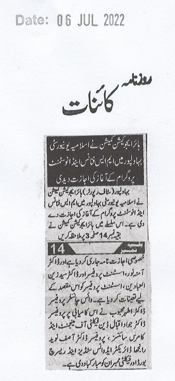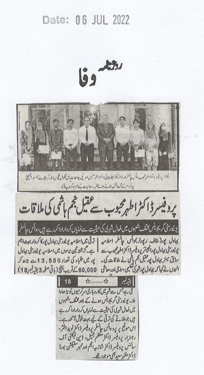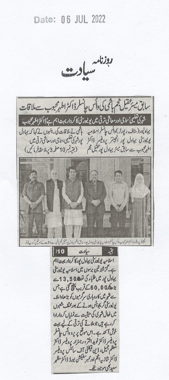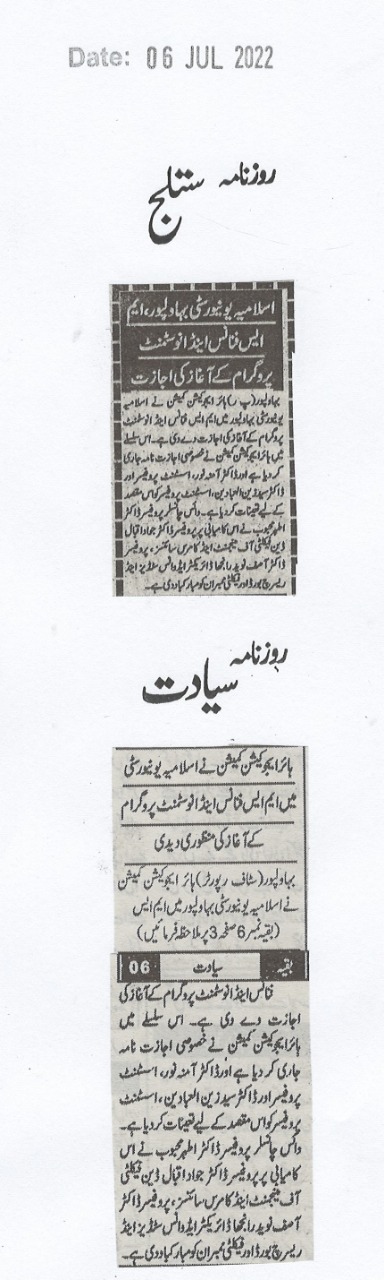 The Islamia University of Bahawalpur was established in the year 1975 by upgrading historical institute of the Jamia Abbasia.