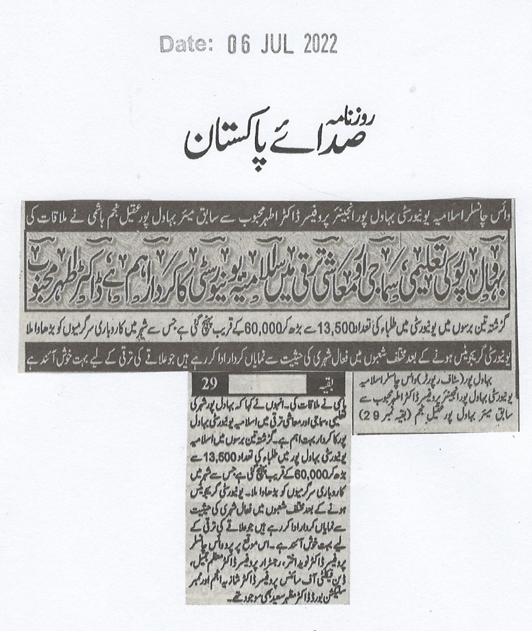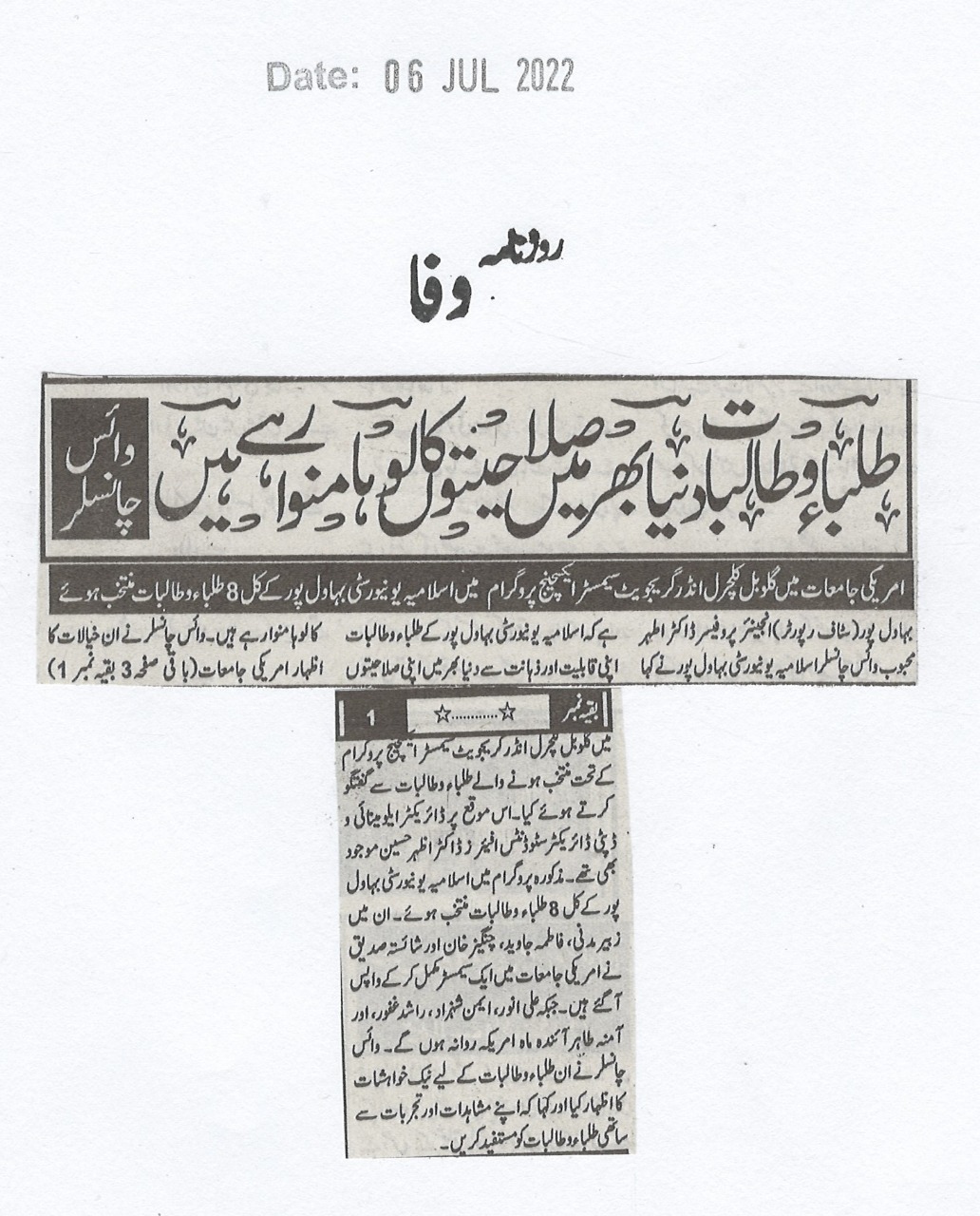 News Cutting 06 July 2022